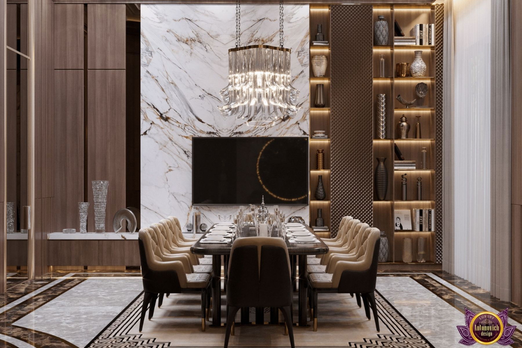 Когда речь о домашнем декоре и дизайне интерьера в Дубае, важны акцентные стены, гармоничная цветовая палитра и продуманная расстановка. Этот стильный проект апартаментов без сомнений выглядит как дом мечты. Элементы роскошного дизайна интерьера — сочетание мрамора и дерева — создают великолепный контраст, который видно со ступеней лестницы. Гостей встречают элегантные синие кресла у входа; акцентная стена привлекает взгляд. Все решения выверены мастерски и передают ощущение утончённой элегантности. Свет играет ключевую роль в создании этой стильной квартиры — он подчёркивает фактуры и форму, делая интерьер одновременно тонким и эффектным.