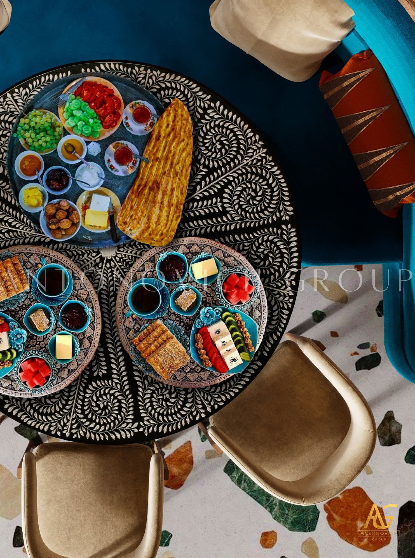 - Разработка концепции и планирование пространства: создание идей, которые соответствуют кухне, фирменному стилю и ожиданиям гостей.