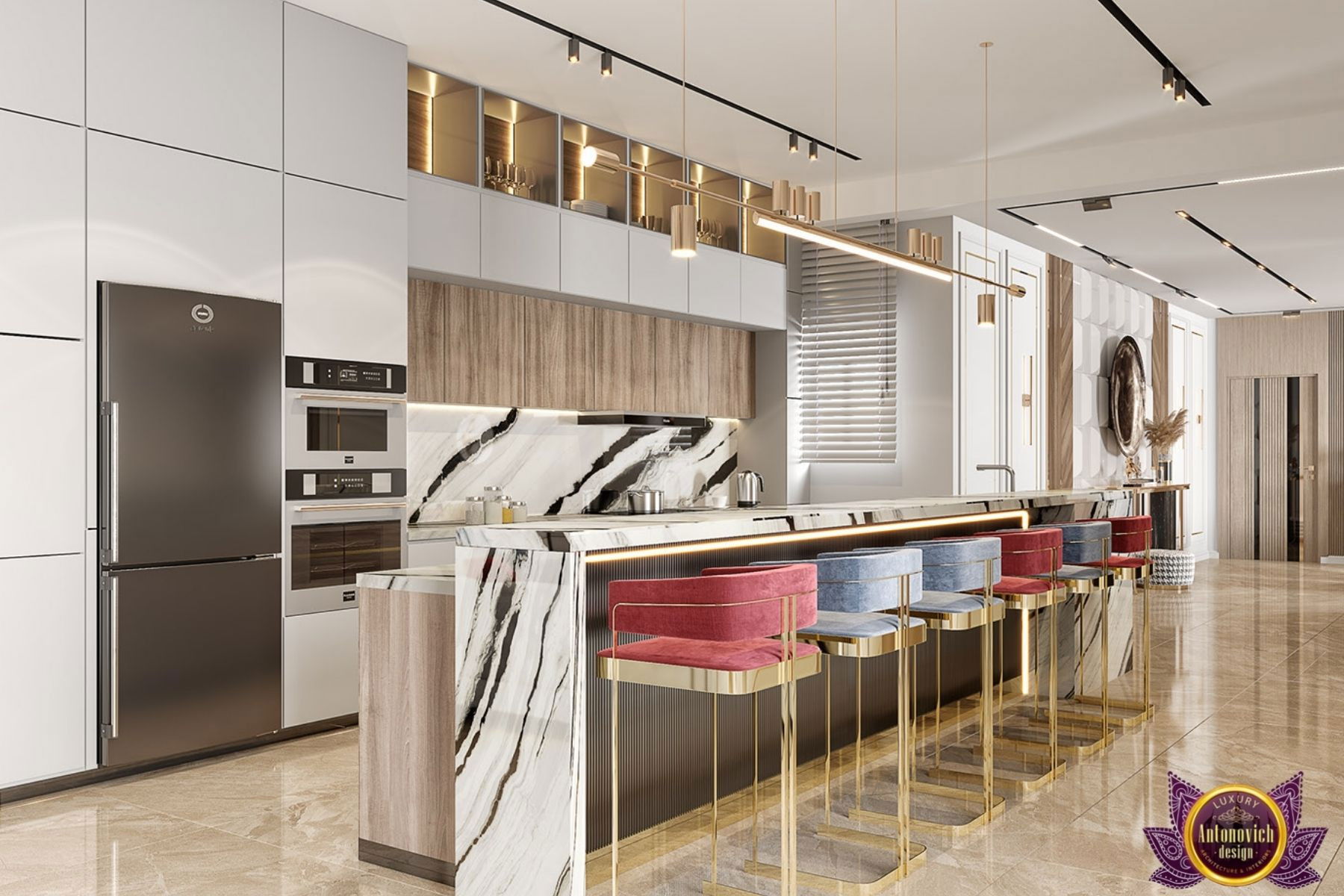 Этот великолепный и пышный современный интерьер пентхауса был разработан лучшей компанией по фит-ауту в Дубае — Антонович Дизайн (Antonovich Design). Дизайн и реализация проекта выполнены с филигранной точностью: при создании интерьера пентхауса в дубае команда фокусируется на просторных решениях и роскошных деталях, поэтому фит-аут пентхауса в дубае проводился с соблюдением высочайших стандартов. Гостиная получилась просторной и элегантной, органично вписываясь в образ жизни элитного Дубая.