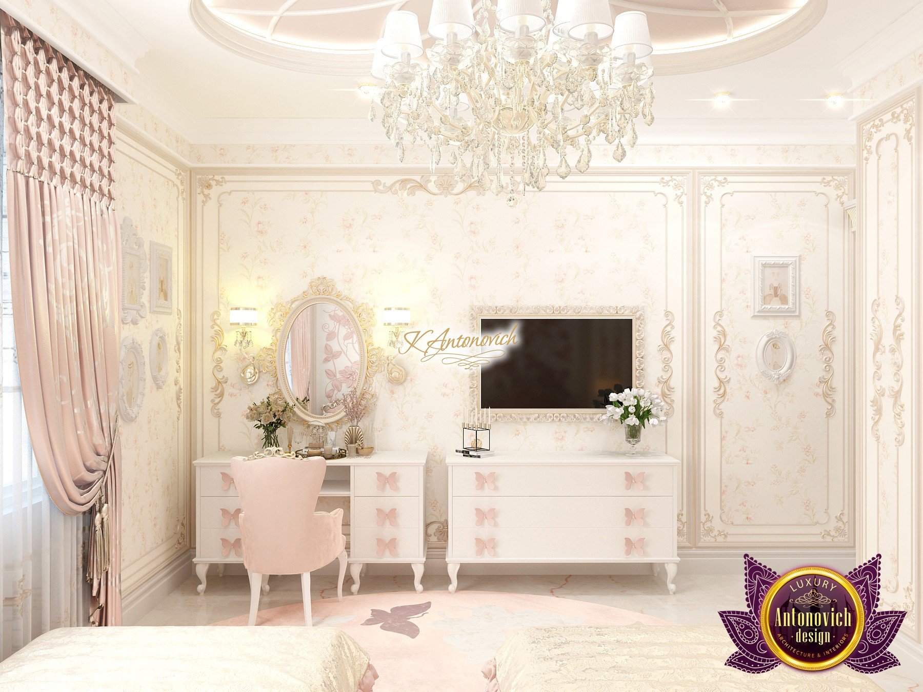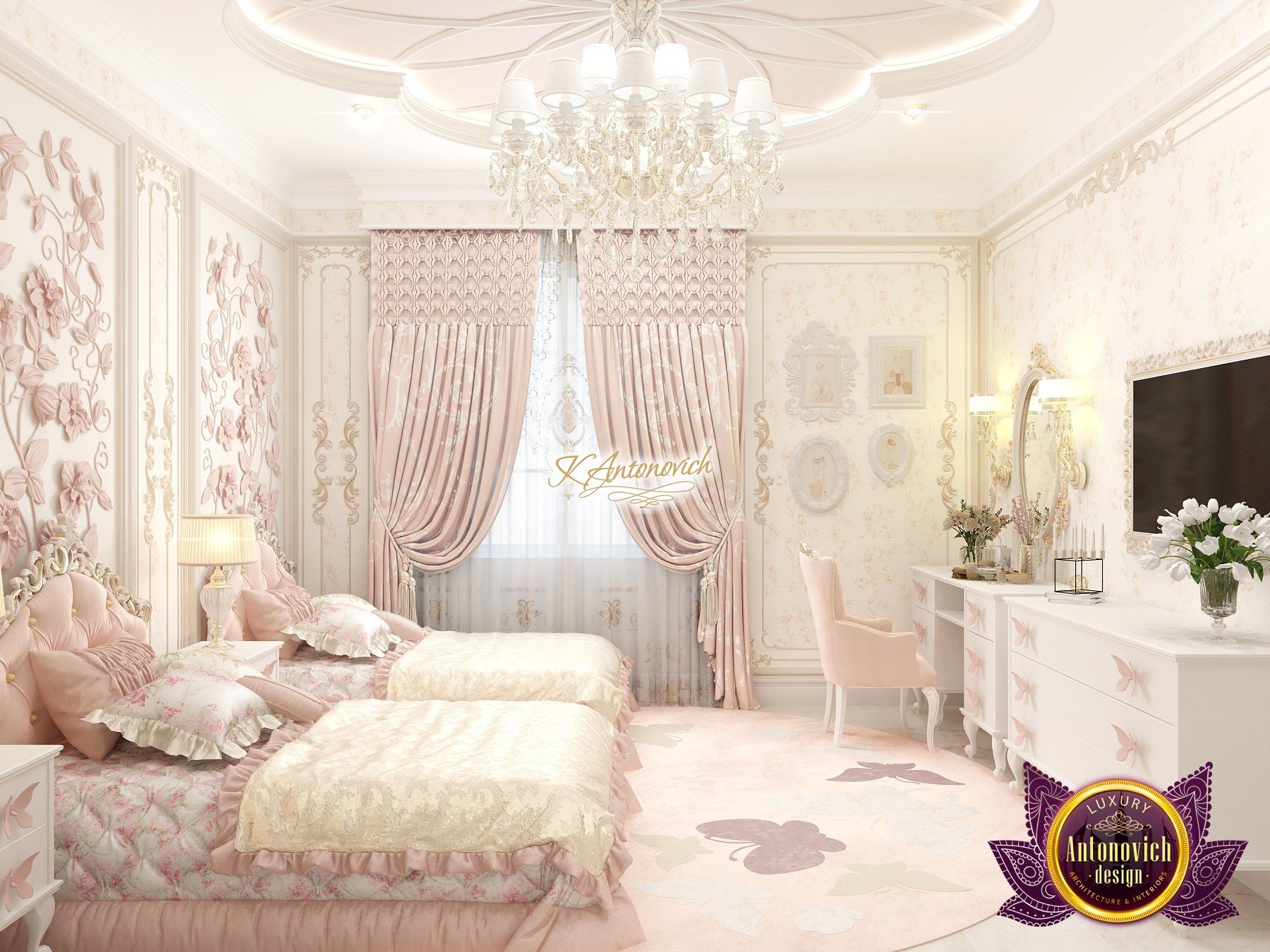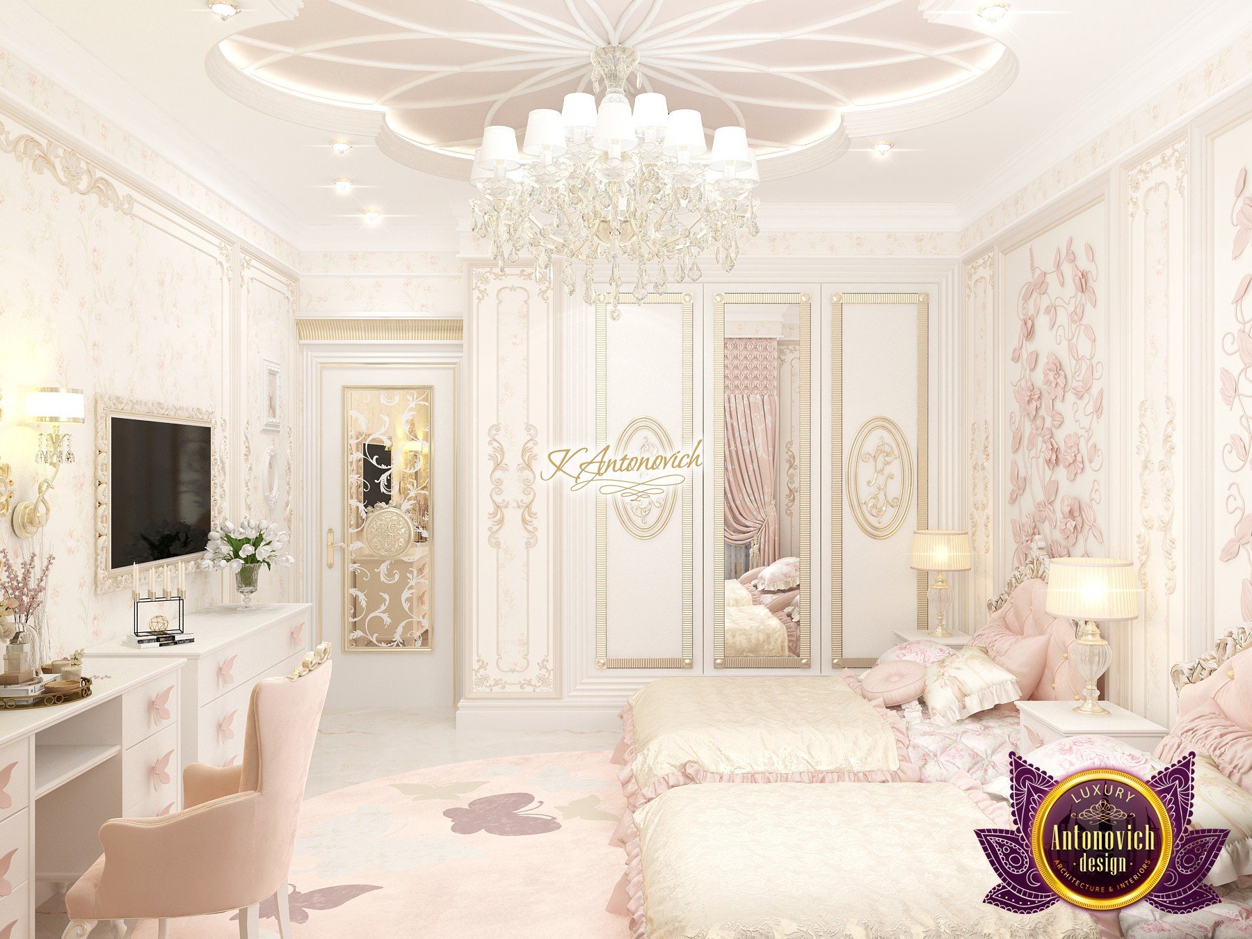 Роскошный интерьер детской комнаты использует натуральные материалы, тщательно подобранные текстуры и индивидуальную мебель — без лишней пышности, с акцентом на качество и долговечность.