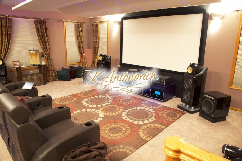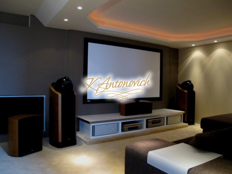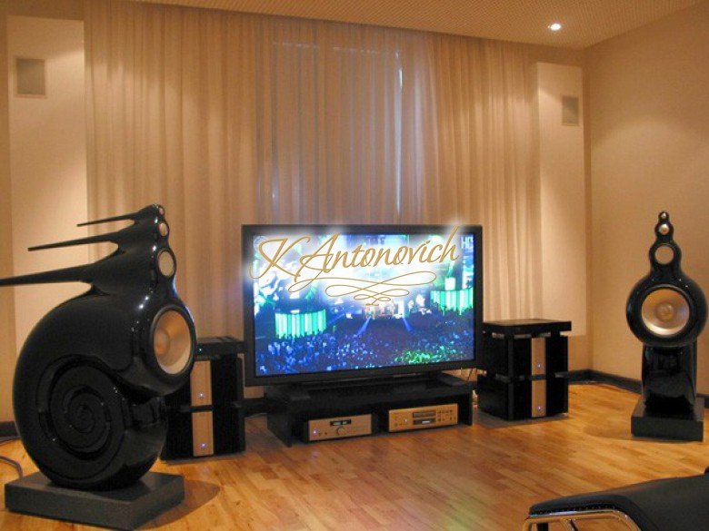 Пара примеров: акустика для домашнего кинотеатра, интегрированная в декоративные панели, и отдельно стоящие системы для прослушивания музыки.