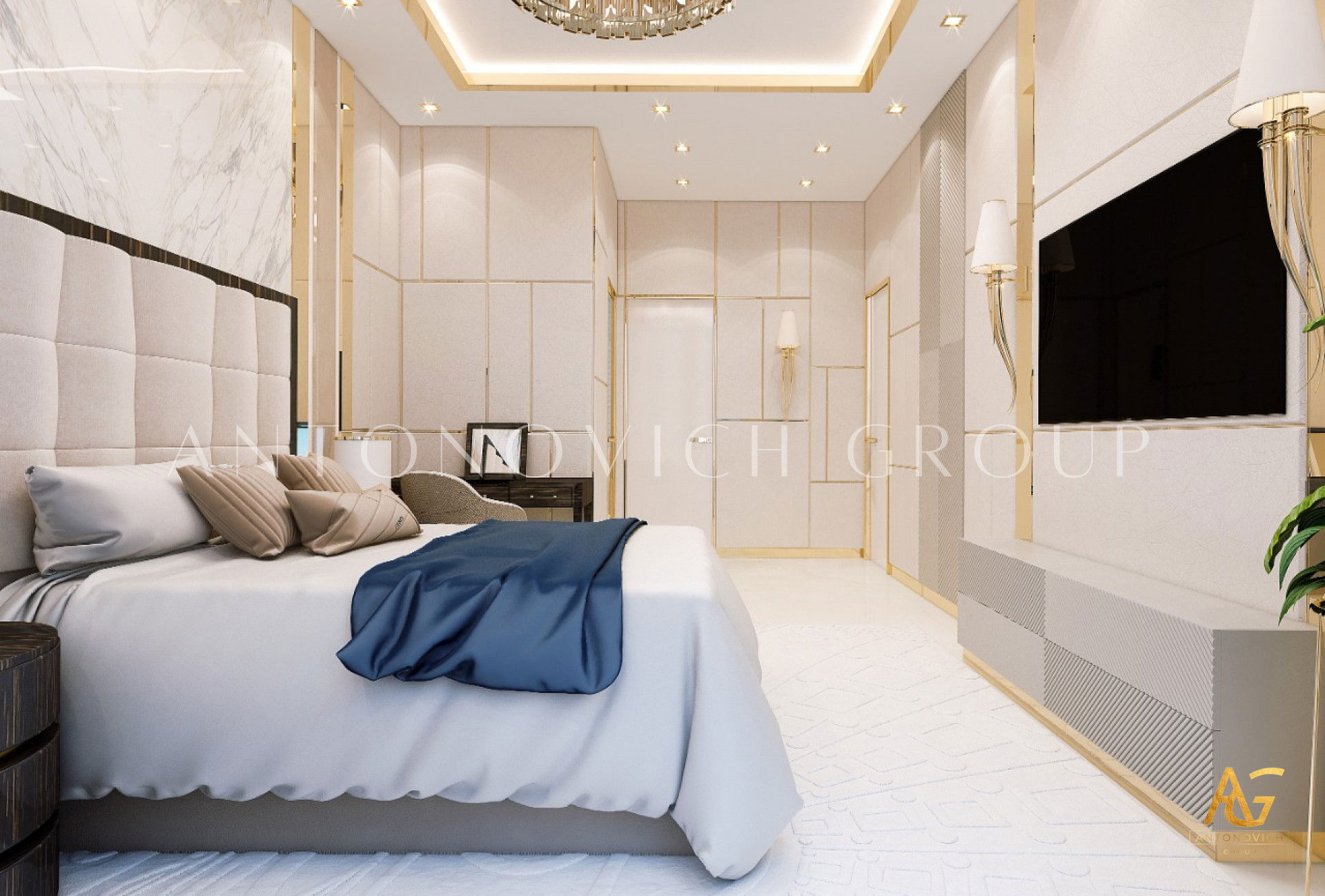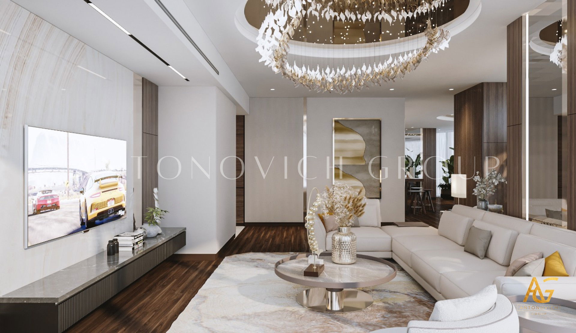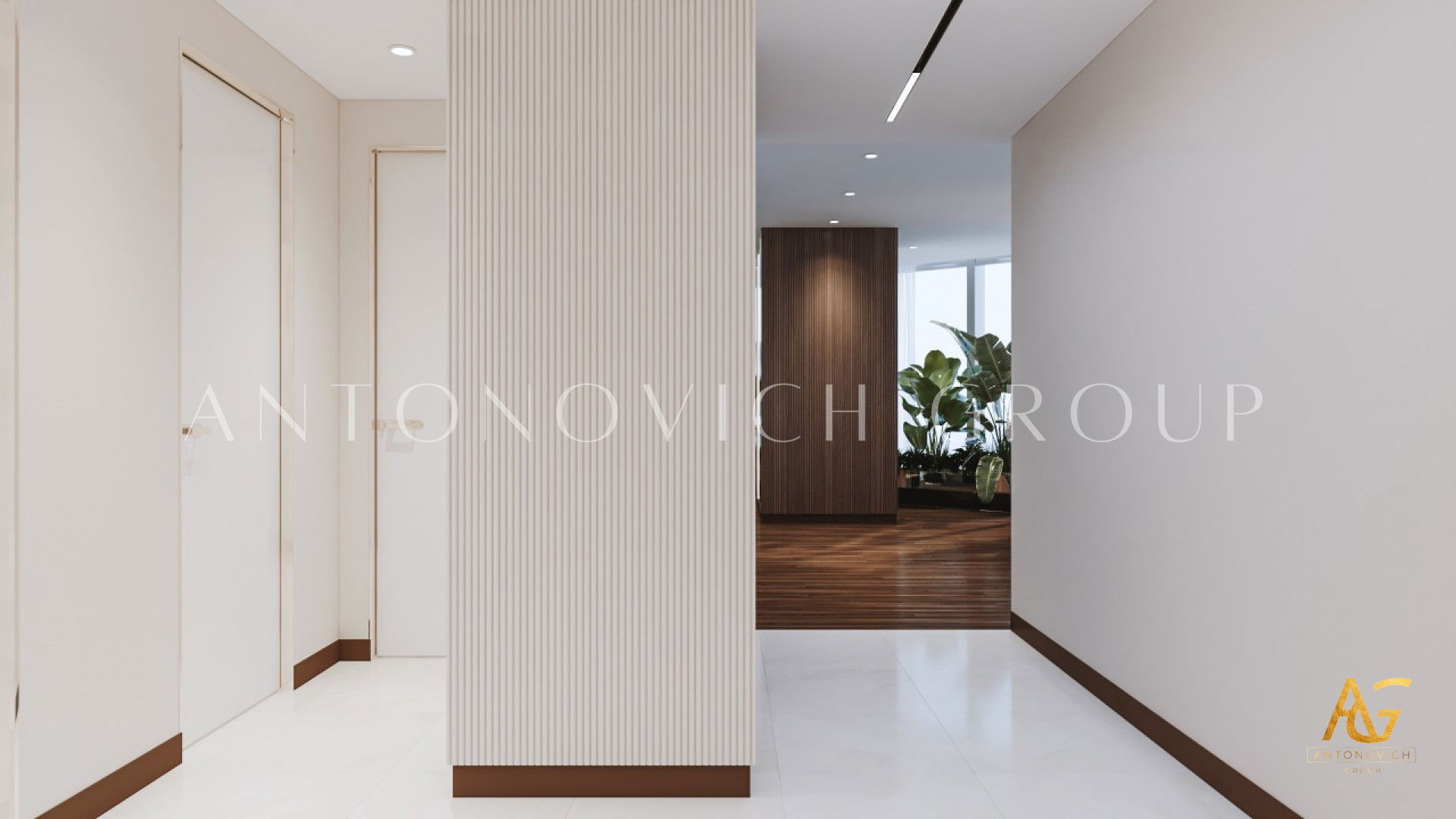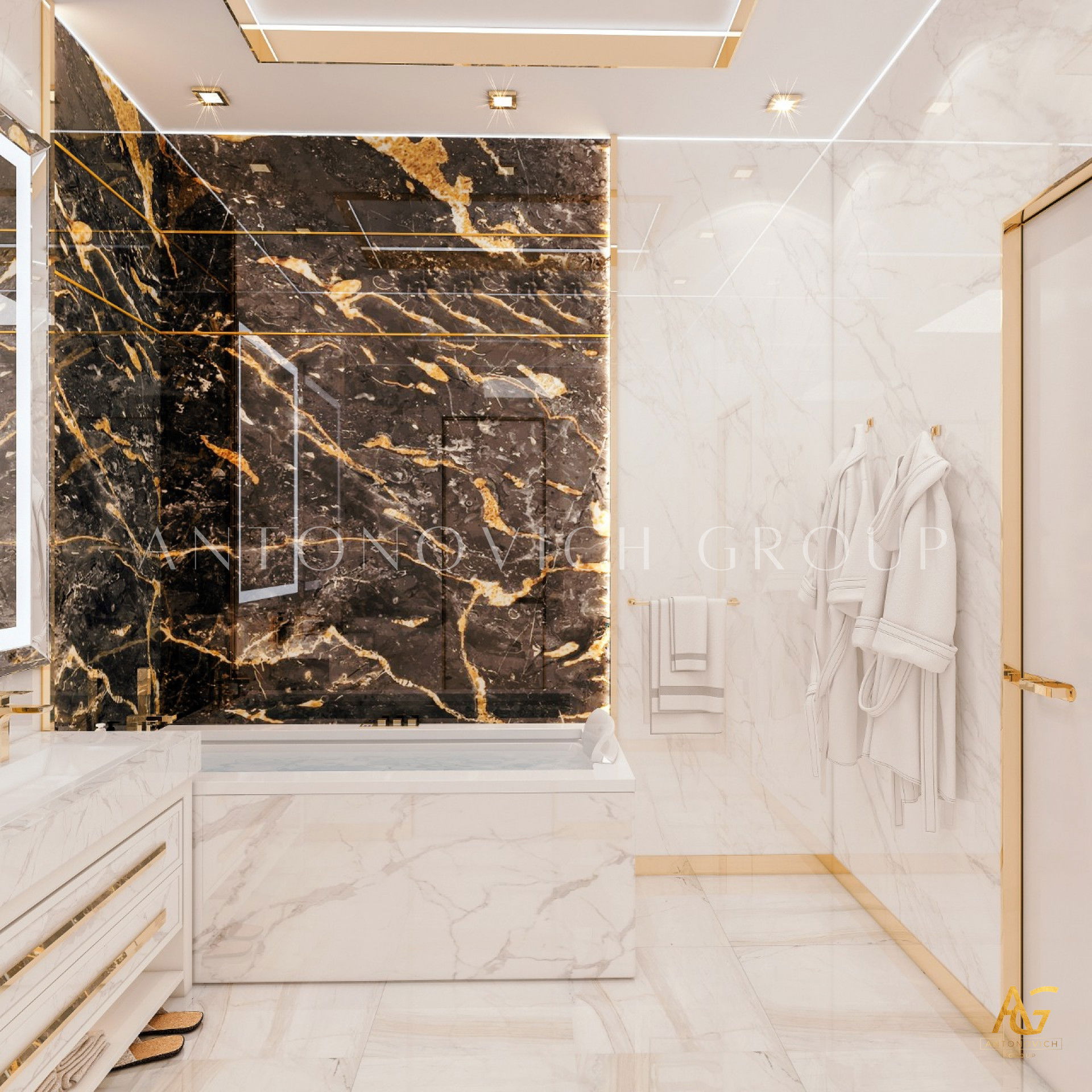 Антонович Дизайн основан на идее создания идеальной атмосферы для каждого клиента. Оформление интерьера в стиле современной роскоши заметно в каждом решении. Авторы проекта грамотно отражают стремление к открытому пространству, присущему привлекательным домам. Интерьер совмещает узнаваемые декоративные элементы и смелые прийомы в подсветке. Гостиная соединена с фантастической столовой зоной и кухней. Дизайнеры предложили оригинальные концепты — встроенные перегородки с аквариумом для гостиной, которые отделяют пространство, не лишая его воздуха. В доме царит тёплая и радостная атмосфера.