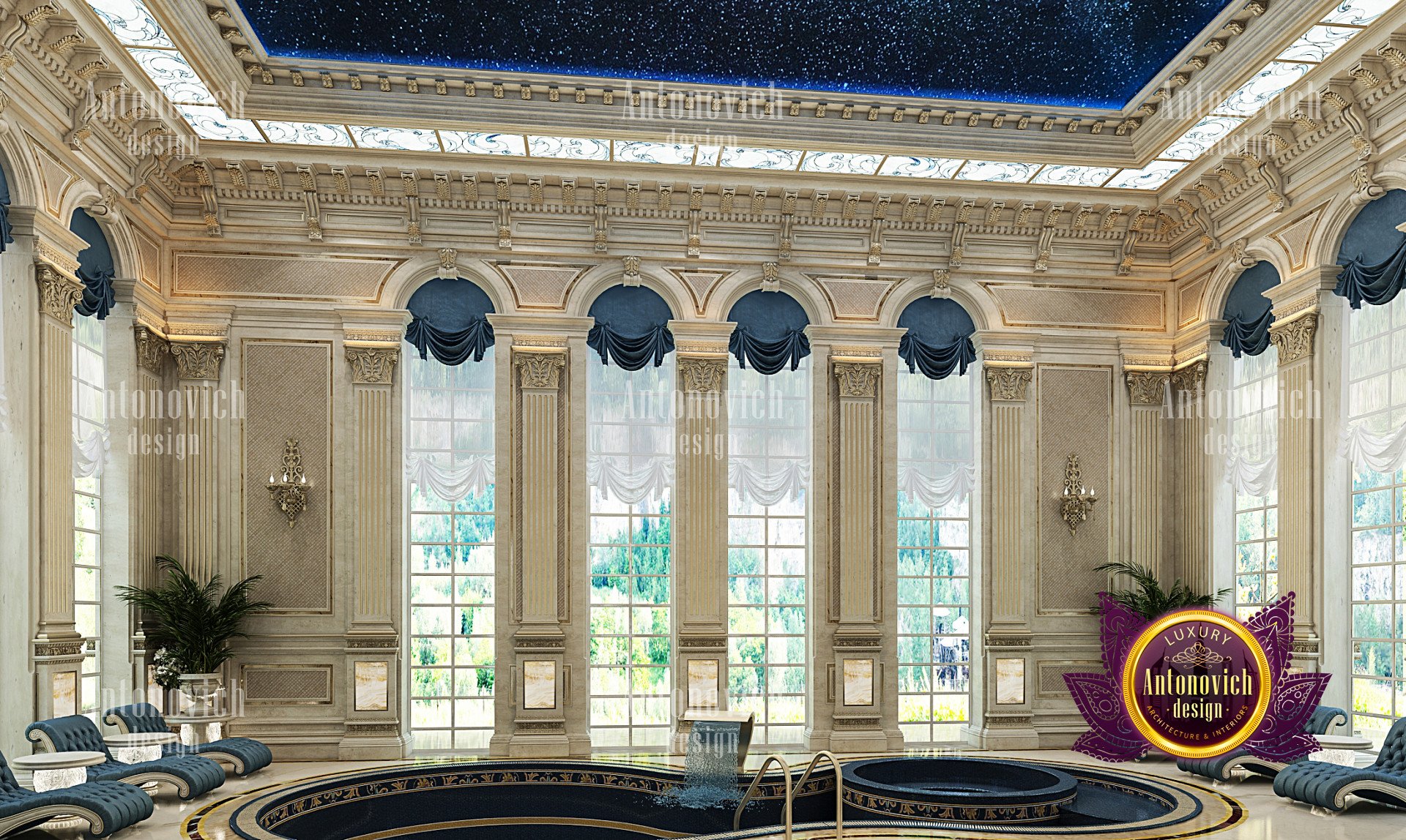 Антонович Дизайн (Antonovich Design) создал изысканный и элегантный интерьер роскошного бассейна. Он лёгкий и воздушный, поэтому идеально подходит для роскошных домов. Антонович Дизайн преобразил зону, придав ей элегантность: дизайн роскошного бассейна в доме заметен в оформлении стен и общей атмосфере. Для многих проектов классический дизайн бассейна для дома остаётся благородным и притягательным. Вы увидите очарование в элегантном декоре стен бассейна. Тёмная палитра соседствует с современными акцентами. Вы не устанете плавать в этом интерьер бассейна для отдыха и релаксации — он создан, чтобы дарить вам расслабление. Проект демонстрирует крытый бассейн для частного дома. Он даёт идеи оформления бассейна в доме.