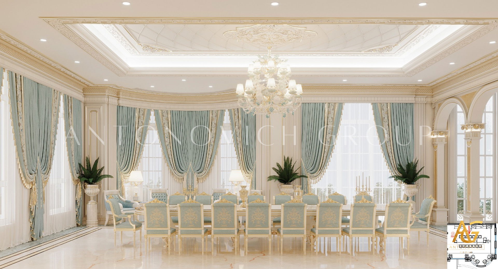 Одним из лучших аспектов этого интерьера роскошной виллы в Дубае является вид на высокий потолок. Планировка фантастическая, как видно на фотографиях. Чтобы завершить общую замечательную атмосферу интерьера роскошной виллы в Абу-Даби, были использованы потрясающие дизайны мебели, красивые акценты и высококачественные материалы. Все было собрано вместе, чтобы создать роскошную обстановку, которая действительно впечатляет. При завершении интерьера роскошной виллы в Абу-Даби Luxury Antonovich Design рассмотрел два аспекта: определение общего эстетического вида пространства и определение основных мест для размещения мебели. Интерьер роскошной виллы в Абу-Даби выполнен в европейском стиле, с тем же стилем и атмосферой по всей обеденной зоне. Luxury Antonovich Design создал его в современном стиле с практичными элементами и яркими цветами. После завершения интерьера роскошного дома в Дубае клиенты остались довольны результатами. Они превратили свой скучный высотный дом в теплую и уютную виллу, которая не только хорошо спроектирована, но и комфортна и роскошна! Обеденная зона находится всего в нескольких шагах от большой гостиной. Благодаря высоким большим окнам, вписывание всего интерьера роскошного дома в Абу-Даби и обеденной зоны было замечательным. Чтобы улучшить внешний вид, в интерьере роскошной виллы в Абу-Даби использовались белые рамы и коричневые шторы для яркого, воздушного и упрощенного вида.