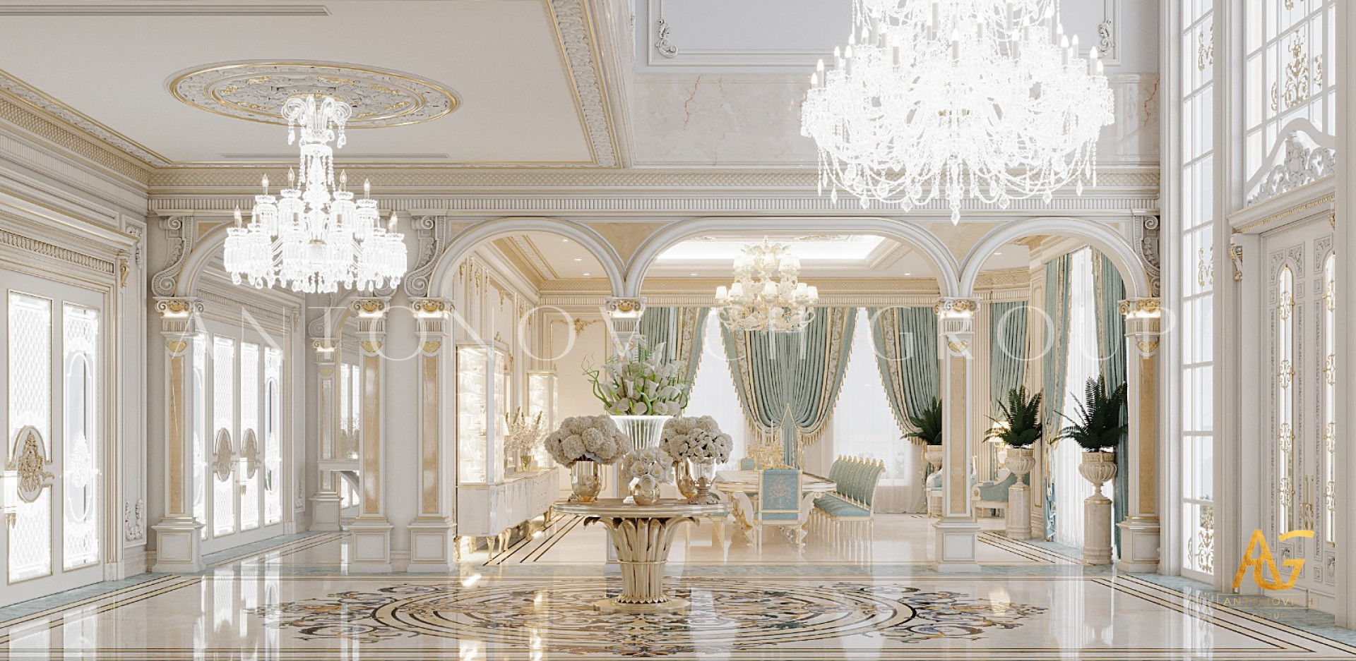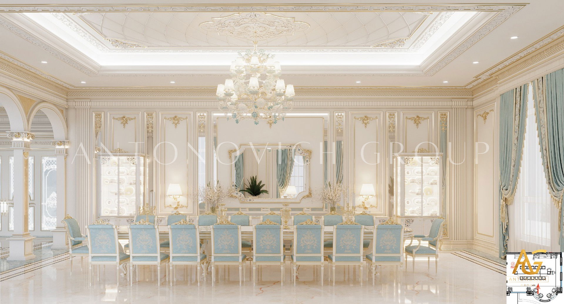 Luxury Antonovich Design тщательно подготовил интерьер роскошной виллы в Абу-Даби, и много внимания было уделено созданию этого произведения искусства. Впечатляющие виды на богатый классический интерьер воспринимаются этим домом, который расположен на великолепном дизайне. С его большими узорчатыми дверями и окнами, белыми стенами и пышной обеденной зоной эта вилла излучает традиционное величие. Главная привлекательность виллы — это красивая роскошная вилла в Абу-Даби с диваном и успокаивающим креслом. Роскошная вилла предлагает огромную площадь, заполненную роскошными предметами, что является необходимостью для роскошных резиденций. Все в этой вилле кричит о роскоши, от великолепно оформленной обеденной зоны до декора в европейском стиле, драматического акцентного освещения и огромной планировки и дизайна. При входе в обеденную зону вас встречает стильная хрустальная люстра. Роскошный особняк в Абу-Даби имеет высокий потолок, чтобы придать ему больше пространства и красоты. Интерьер роскошной виллы был создан для создания роскошной атмосферы.