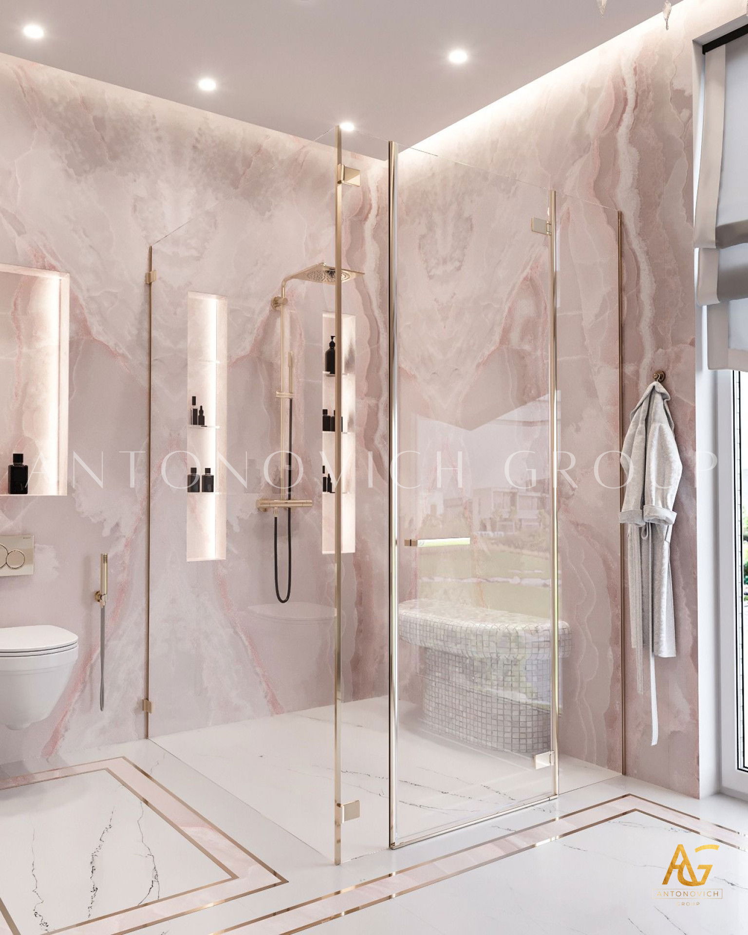 - Ванные комнаты, отделанные премиальными мраморами, ониксом и высококачественной сантехникой для ощущения спа.