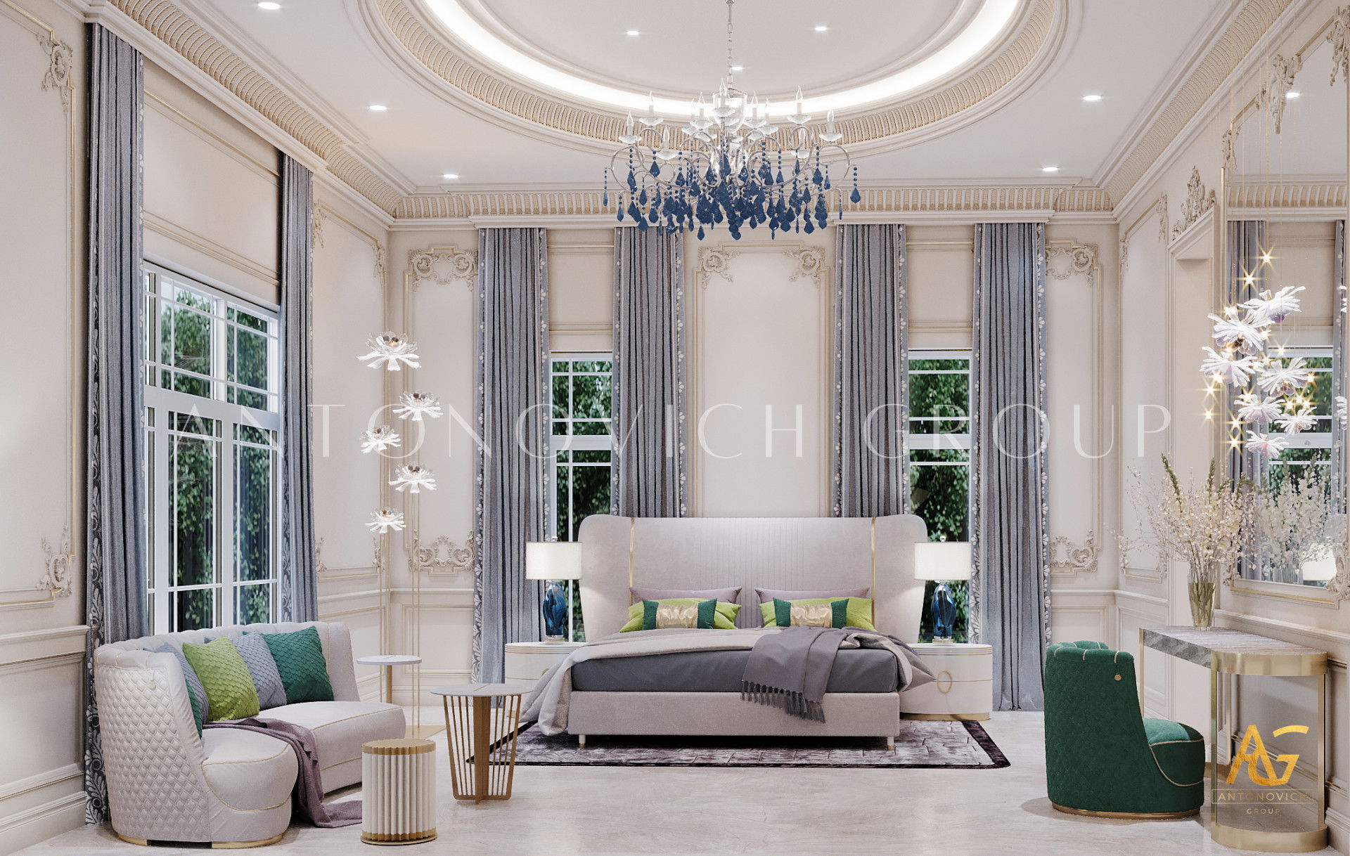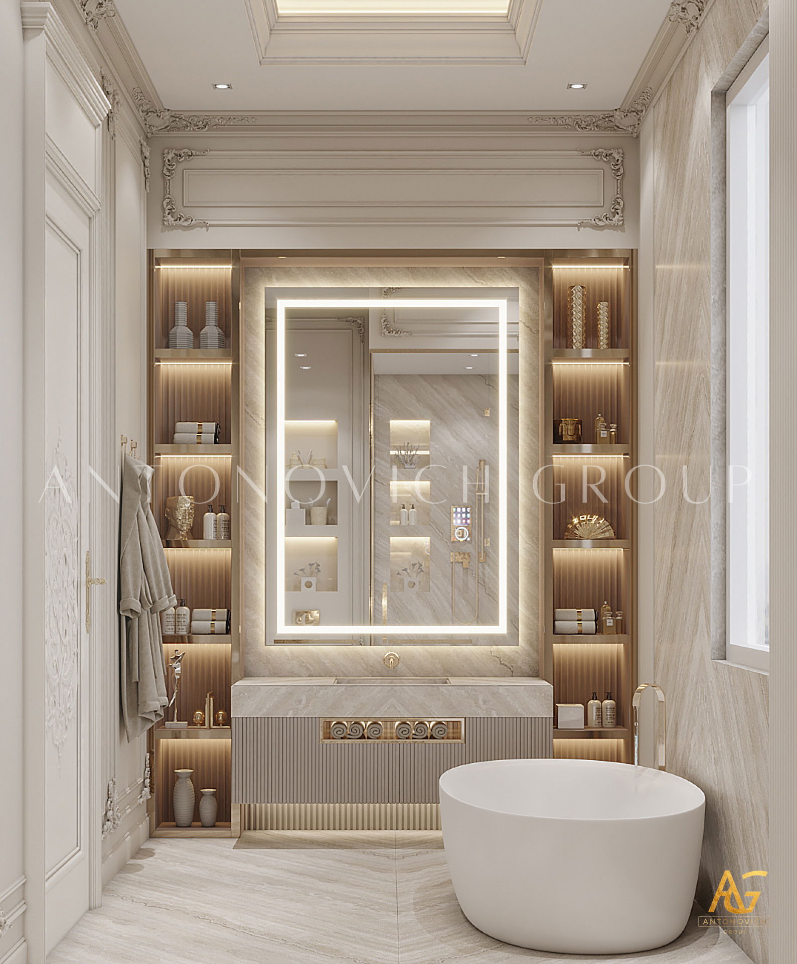 Классический дизайн интерьера виллы определяется вниманием к деталям. Antonovich Group поднимает это на новый уровень с роскошными улучшениями, которые выделяют каждый проект. От индивидуальных люстр, освещающих грандиозные входные залы, до ручной работы в спальнях и гардеробных, каждый элемент спроектирован так, чтобы излучать утонченность.