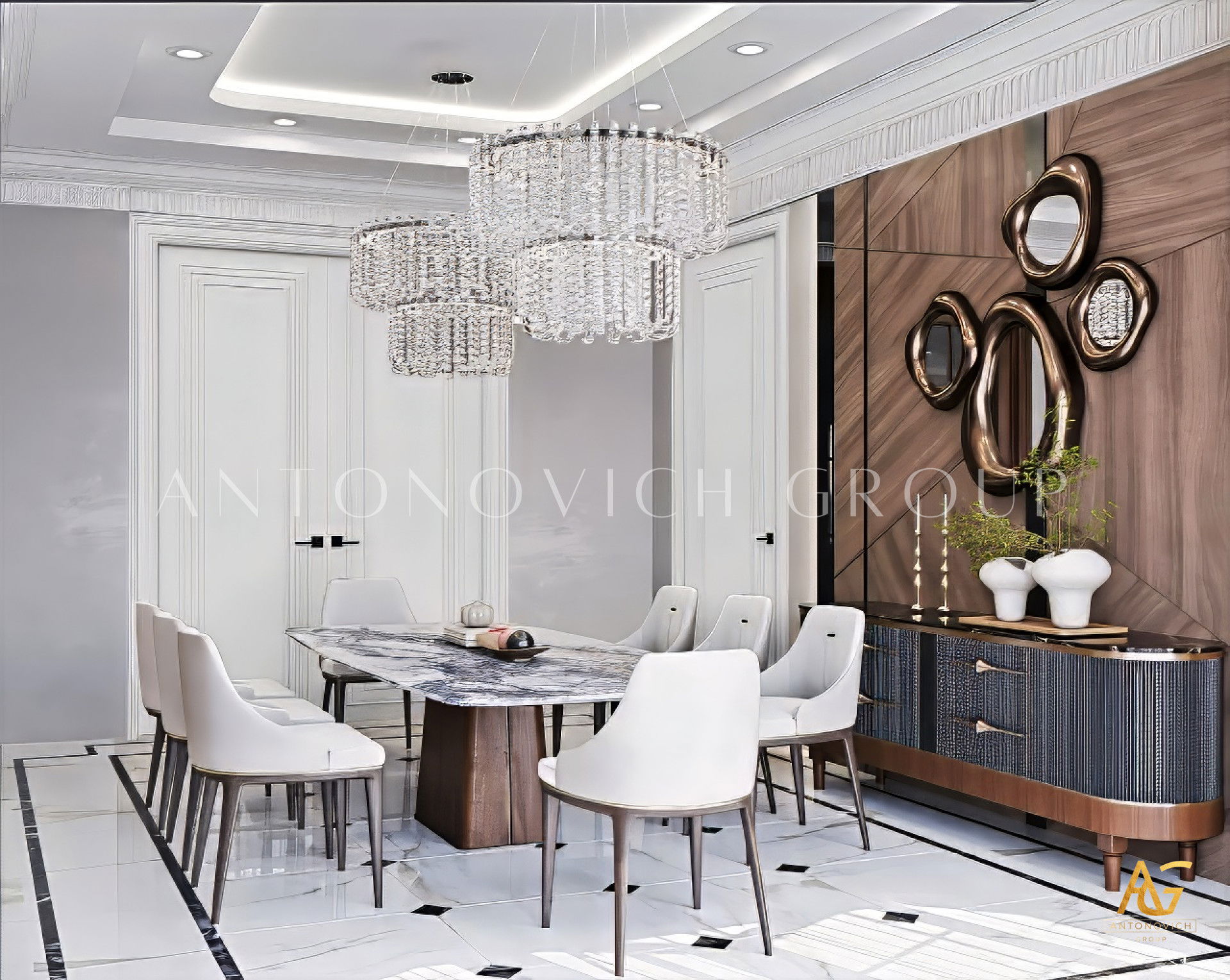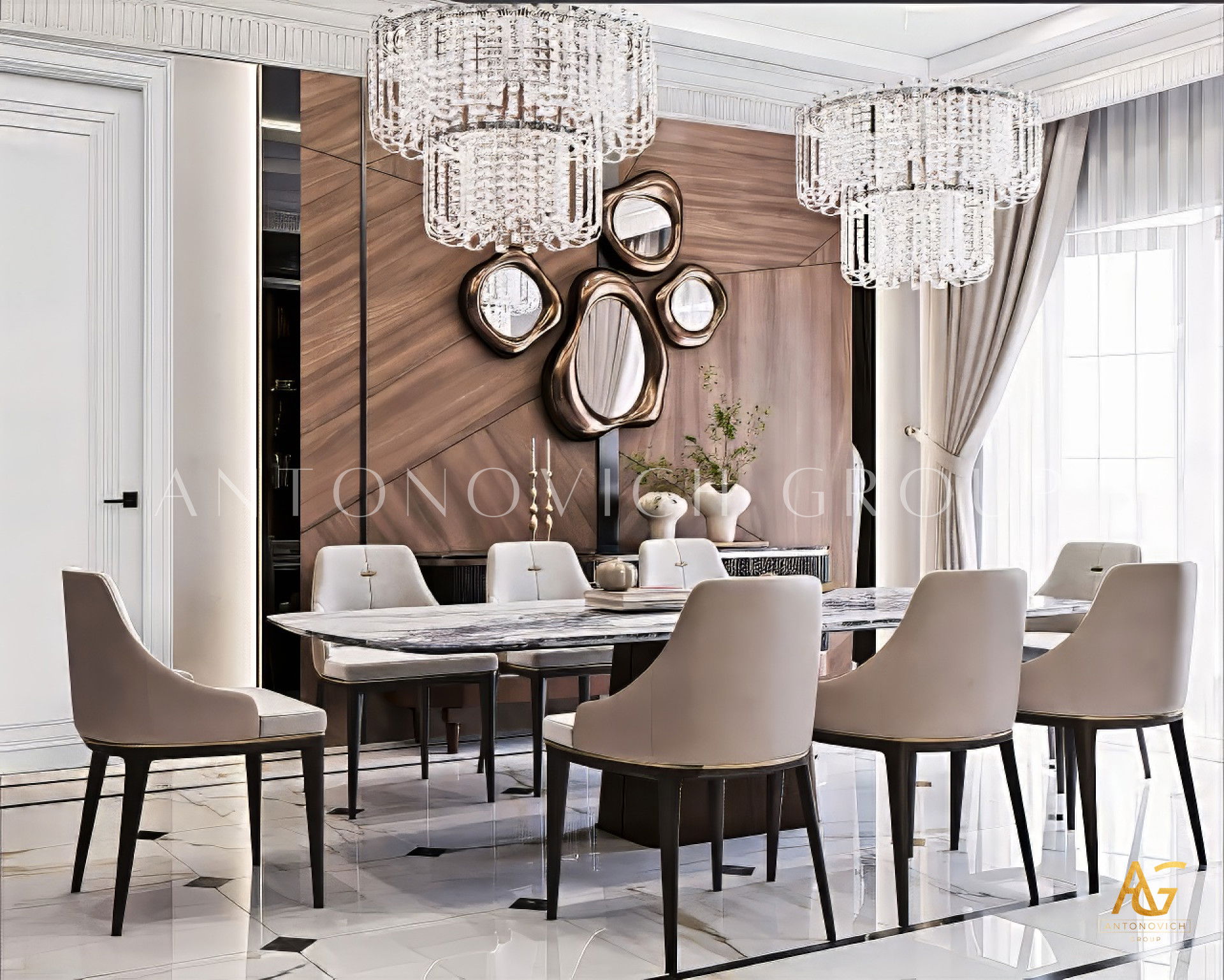 Антонович Дизайн (Antonovich Design) предлагает премиальные решения для обеденной зоны: комфортная столовая дизайн интерьера, где каждая деталь служит вашему удобству и эстетике.