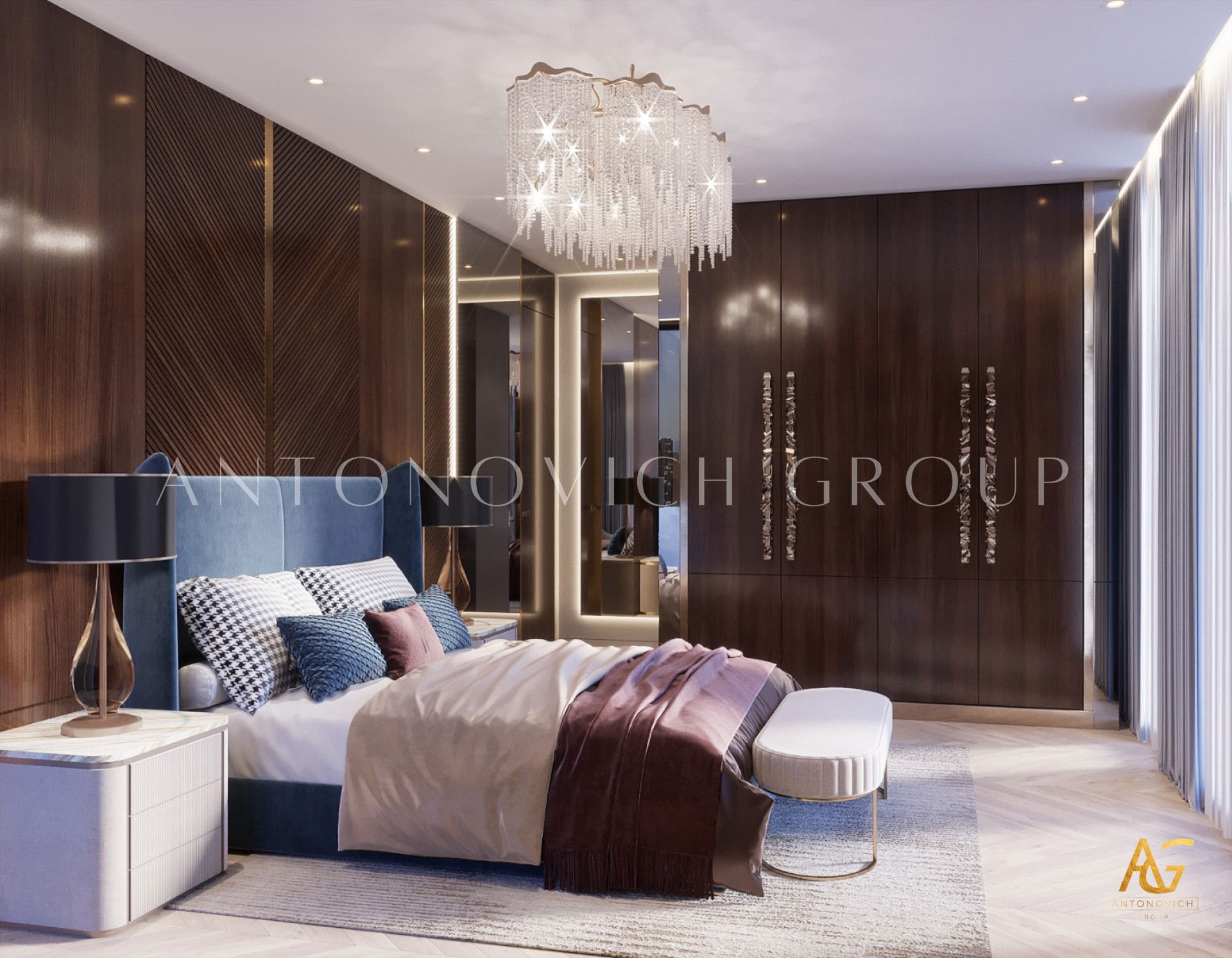 Мастерство Антонович Дизайн (Antonovich Design) в роскошном дизайне спальни