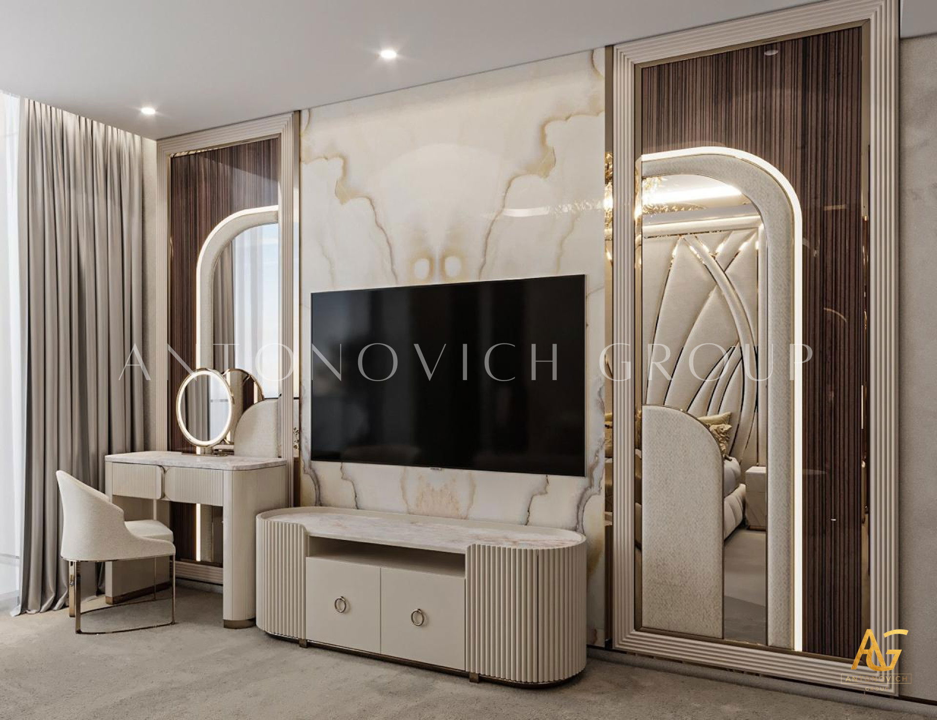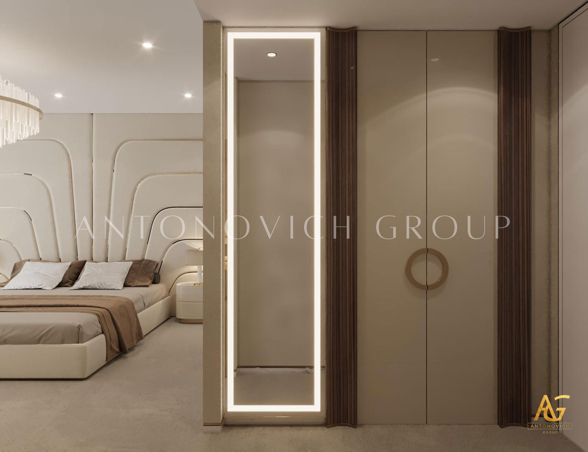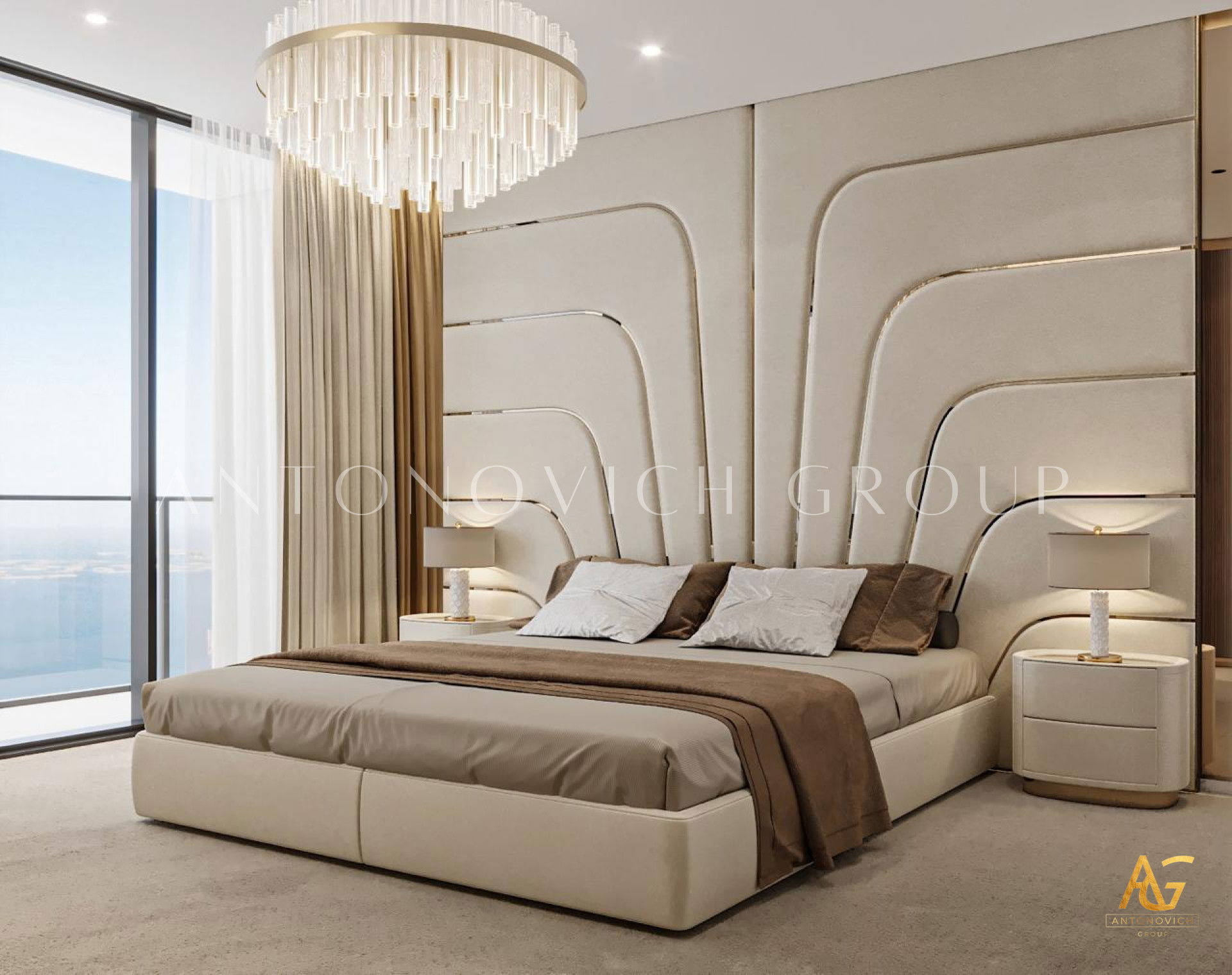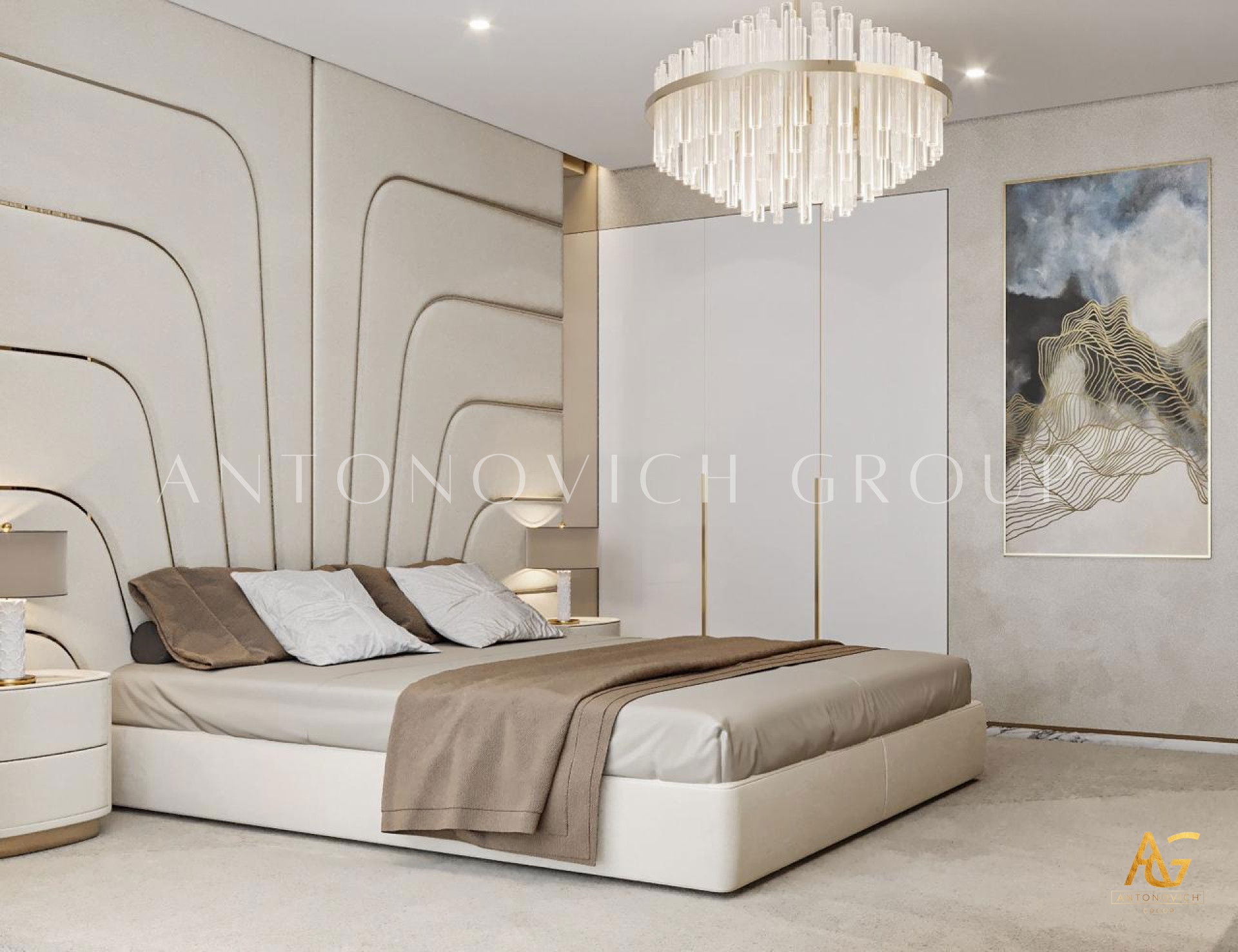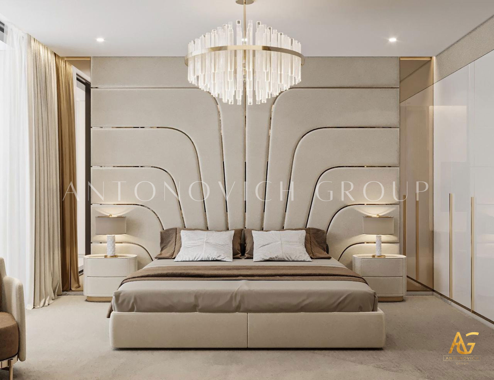 Роскошная спальня определяется деталями и тщательно подобранными элементами декора. Антонович Дизайн подбирает «аксессуары для спальни премиум», используя материалы высокого класса и художественные отделки для усиления общей атмосферы.