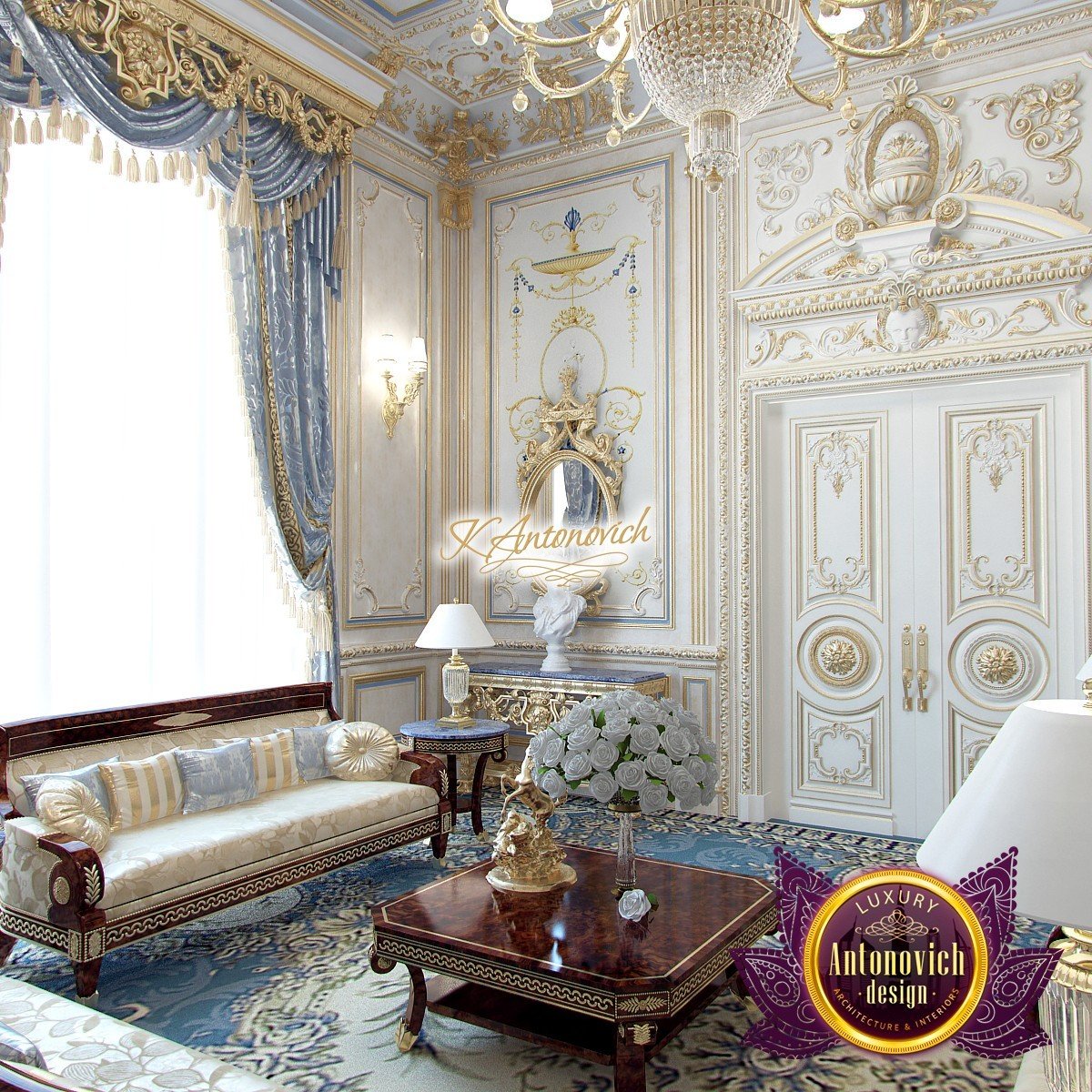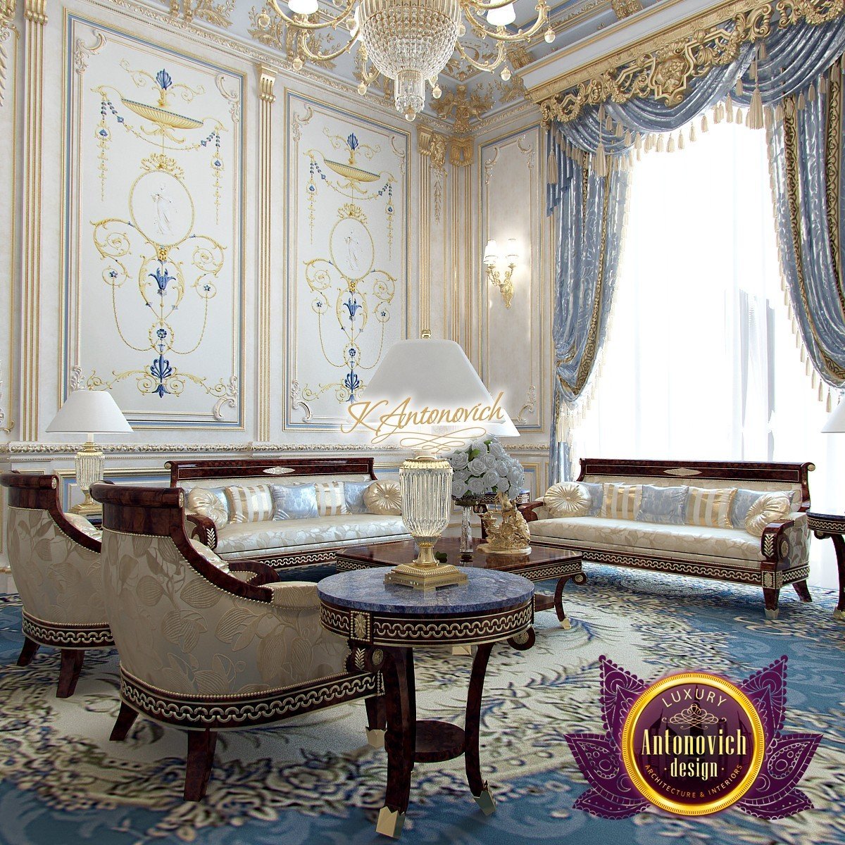 Гостиная включает множество элементов; освещение — один из ключевых. Фирменный элемент нашей компании — массивная хрустальная люстра, свисающая в центре комнаты: освещение гостиной с хрустальной люстрой подчёркивает элегантность и торжественность. Мы тщательно продумываем расположение светильников, чтобы выделить фокусные зоны. Драпировки и шторы для гостиной добавляют фактуру интерьеру и создают дворцовую атмосферу, а правильный выбор мебели для роскошной гостиной делает пространство более собранным и продуманным.