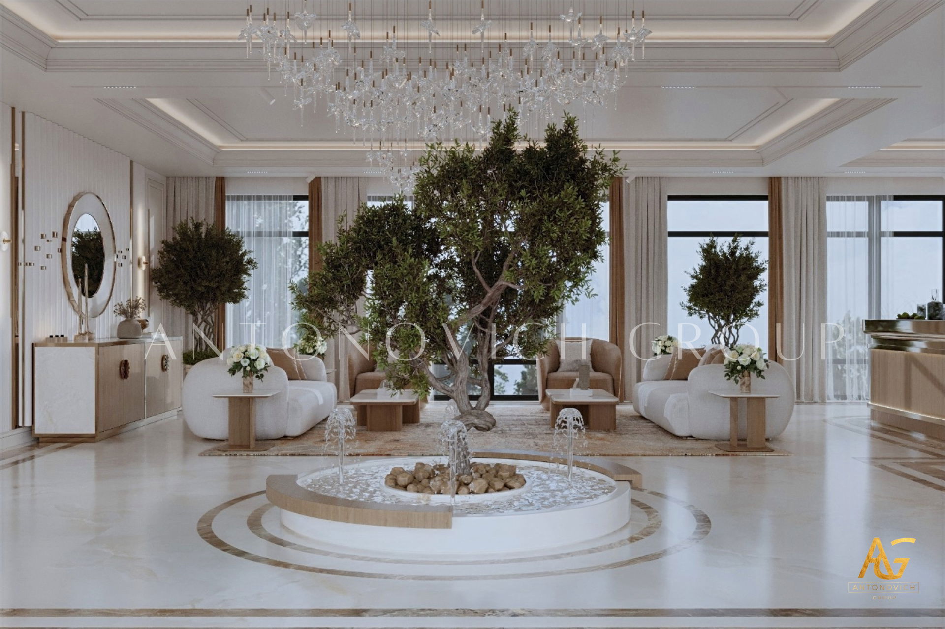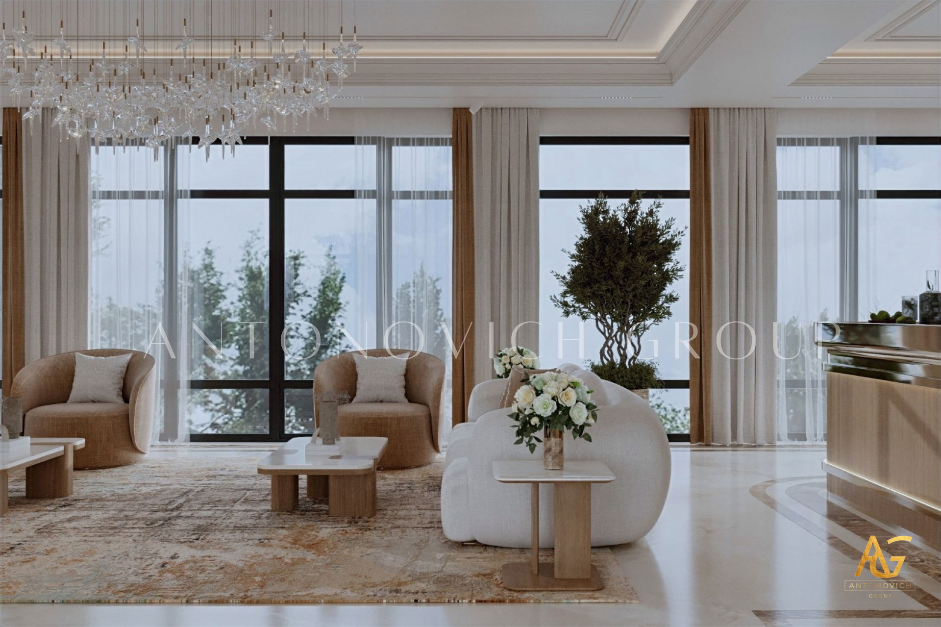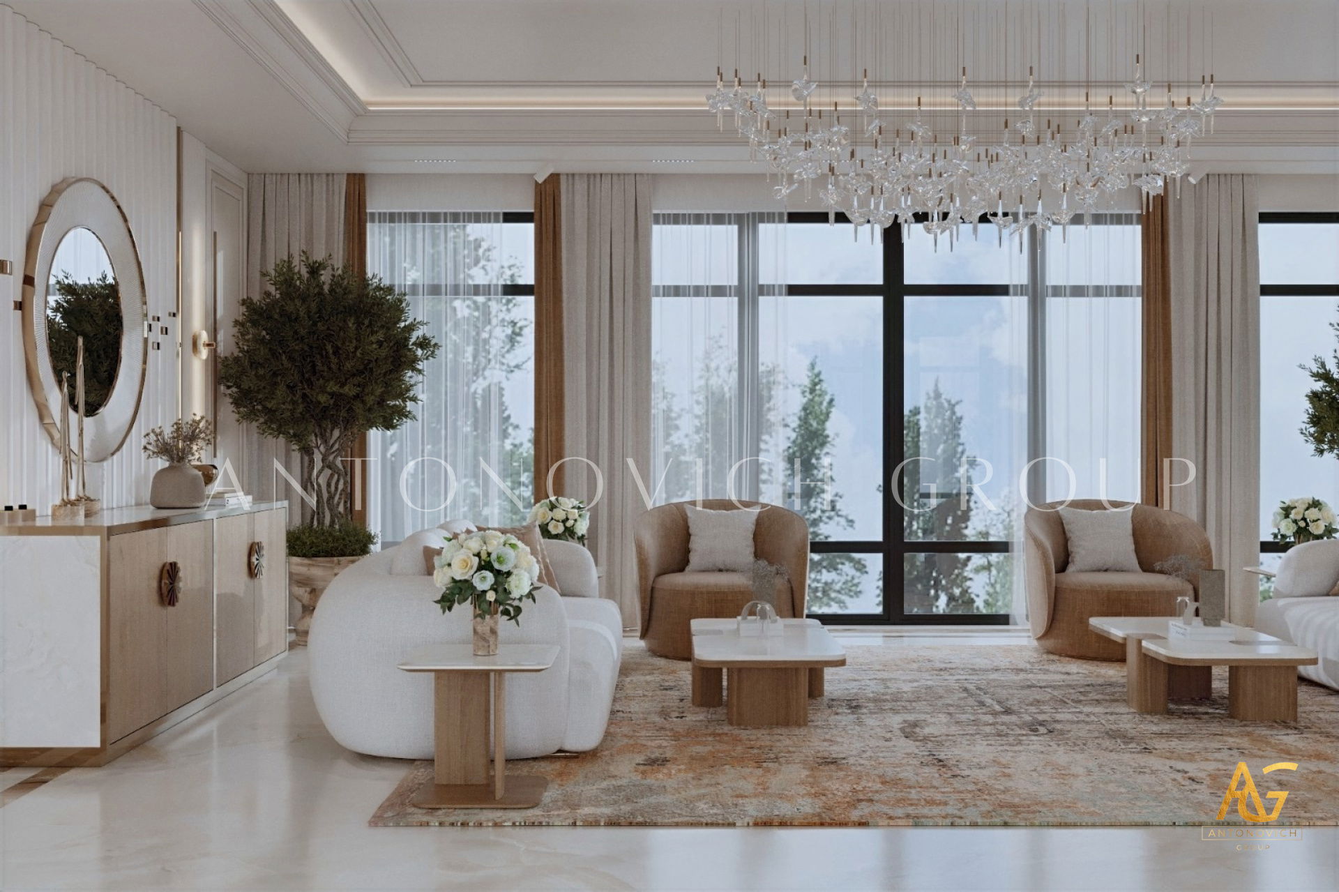 Множество факторов влияет на тенденции в области интерьерного дизайна, включая появление инноваций в производстве строительных и отделочных материалов, выпуск мебели и аксессуаров, а также бытовой техники. На формирование трендов воздействуют как мировая ситуация, так и экономическое положение каждой отдельной страны. В этом проекте представлен дизайн гостиной в современном стиле. Однако когда Антонович Групп (Antonovich Group), возглавляемая известным дизайнером интерьеров и архитектором, создаёт дизайн‑проект любого пространства, важно учитывать не только модные направления, но и конкретные особенности комнаты.