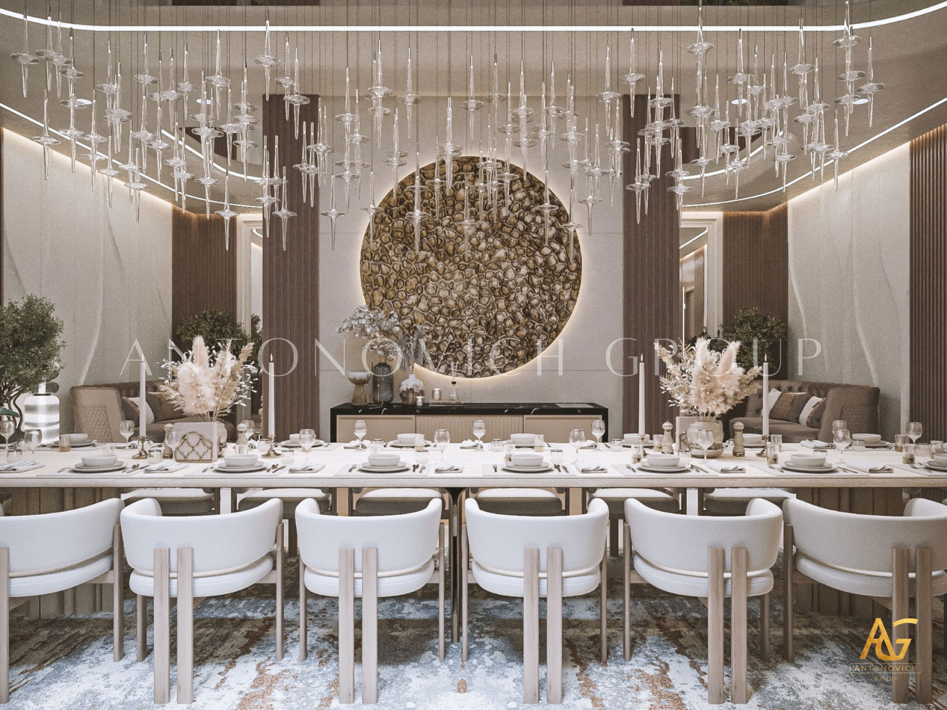 Элегантность в интерьерах вилл — это не излишество, а гармония, пропорции и вечная привлекательность. Antonovich Group подходит к каждой вилле с уникальной концепцией, адаптированной к образу жизни клиента. От грандиозного входа до самой интимной спальни каждый элемент тщательно подбирается, чтобы обеспечить идеальный баланс между роскошью и функциональностью.