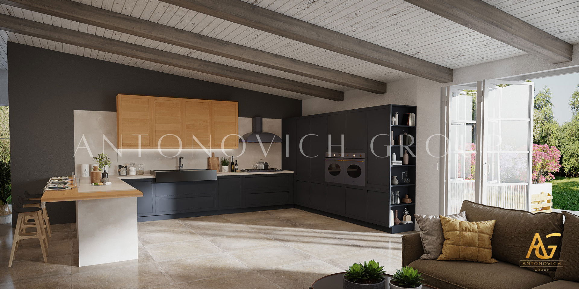 Дизайнеры интерьера студии Antonovich Group (Антонович Групп) представили интересный современный дизайн кухни. Интерьер выполнен в минималистичном стиле и характеризуется многосторонними решениями в использовании отделочных материалов и освещения. Идеи дизайна кухни всегда направлены на максимальную функциональность пространства. Это прямоугольная планировка с обособленной рабочей зоной. Этот смелый и уникальный проект вдохновлён пожеланием клиента: они часто путешествуют и захотели воссоздать концепцию одного из любимых азиатских ресторанов, где блюда готовят прямо перед гостями. Такие решения легко реализуются с современными кухонными приборами. Проект кухни в стиле минимализм подчёркивает простоту форм и продуманность планировки; в предложенном варианте это — экстравагантный дизайн кухни.