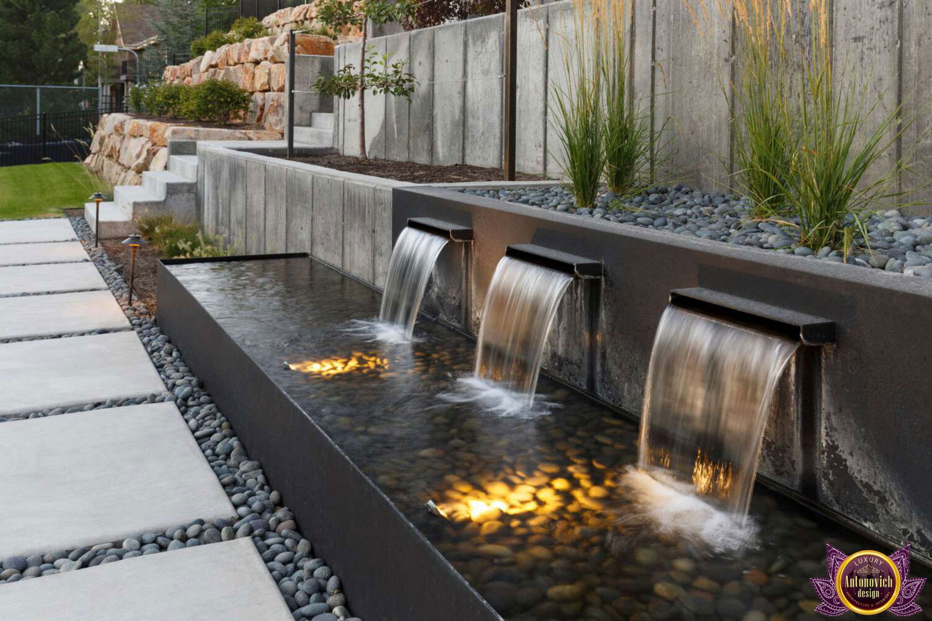 - Акценты - наши дизайнеры тщательно продумывают расположение и композицию, чтобы пространство выглядело гармонично как снаружи, так и внутри: акценты в ландшафтном дизайне виллы — фонтан, арт-объект или группировка растений — становятся фокусной точкой.