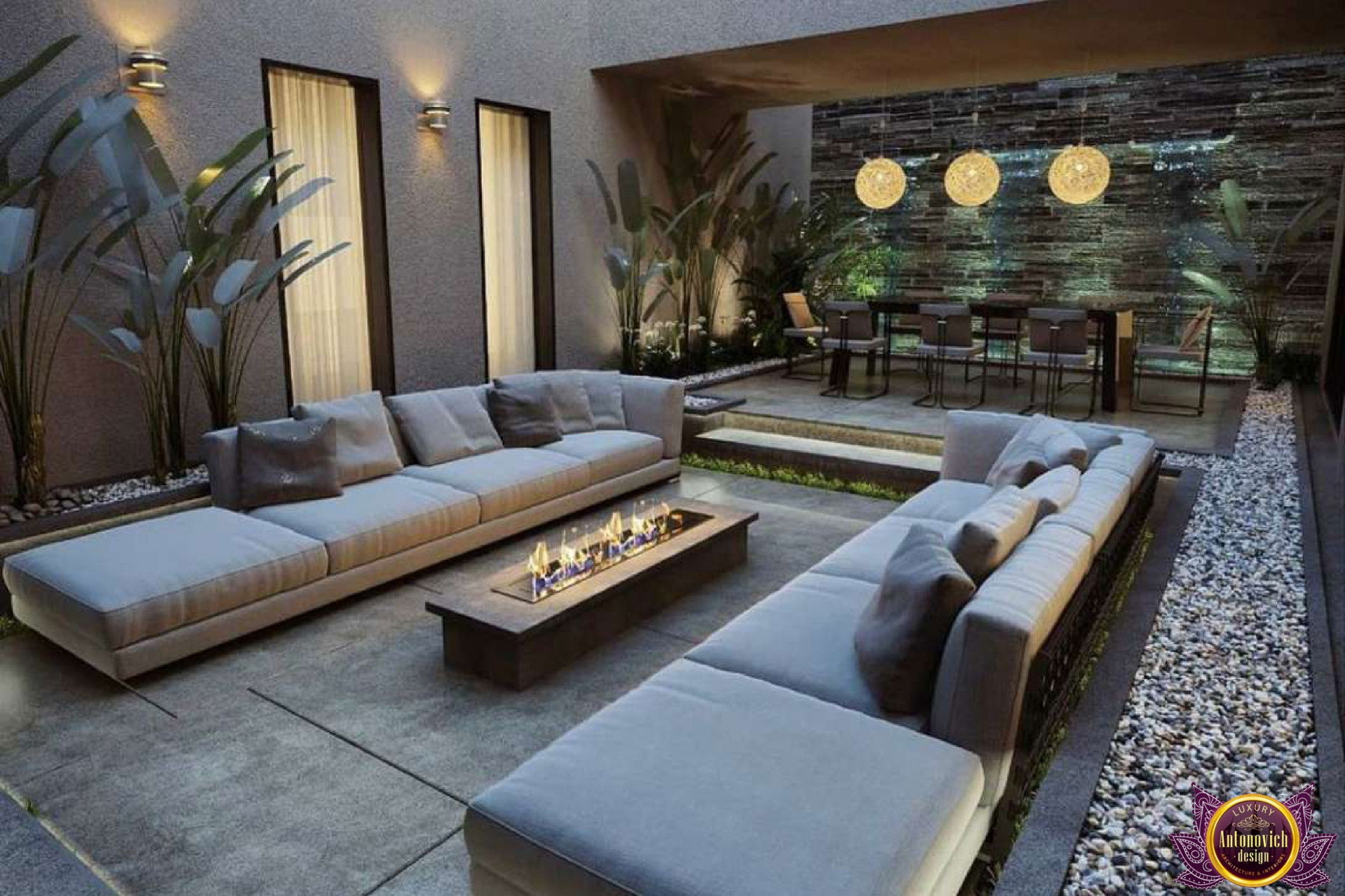 Особое внимание уделяется светотехническому оформлению для виллы: продуманное зонирование и подсветка подчеркивают архитектуру и создают уют по вечерам.