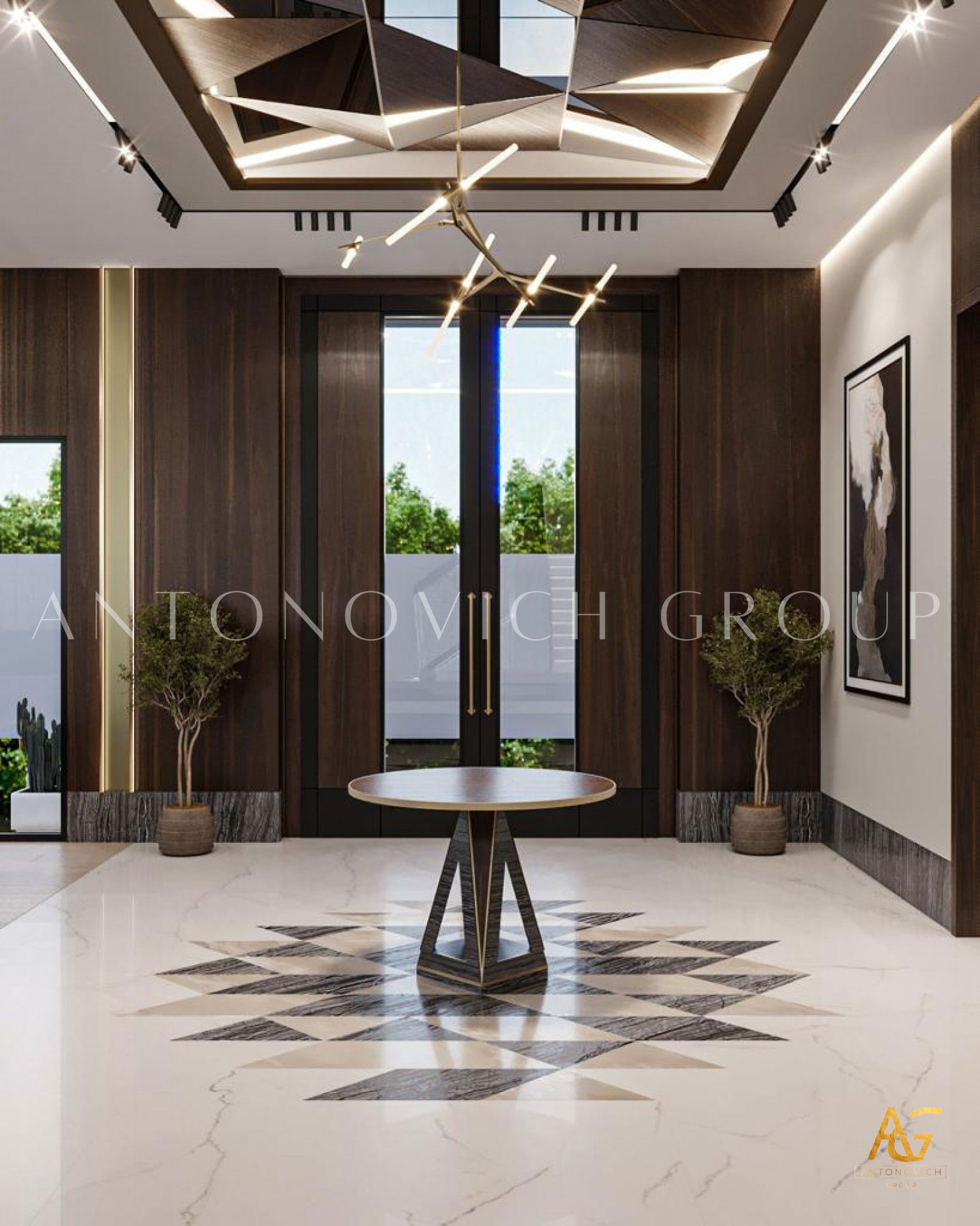 Мраморные полы остаются классическим выбором для роскошных вилл: они излучают утончённость и элегантность. Мраморные полы для виллы доступны в различных цветах и рисунках, что позволяет адаптировать материал под любой дизайн — от светлого классического до выразительного контраста чёрного с золотом.