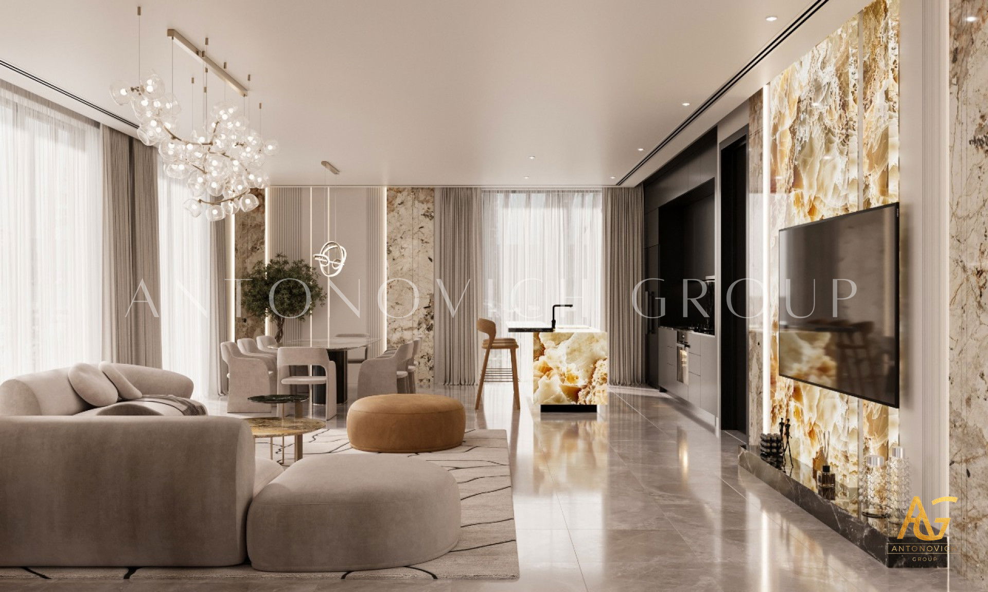 Группа Антонович предоставляет комплексные решения, начиная с разработки концепции и планирования пространства. Наши профессиональные дизайнеры интерьеров тщательно изучают образ жизни и требования каждого клиента, чтобы создать планировки, которые максимизируют комфорт и функциональность. Затем мы интегрируем элементы роскошного дизайна, индивидуальную мебель, декоративное освещение и уникальные цветовые палитры, чтобы достичь вечного, но современного дизайна гостиной.