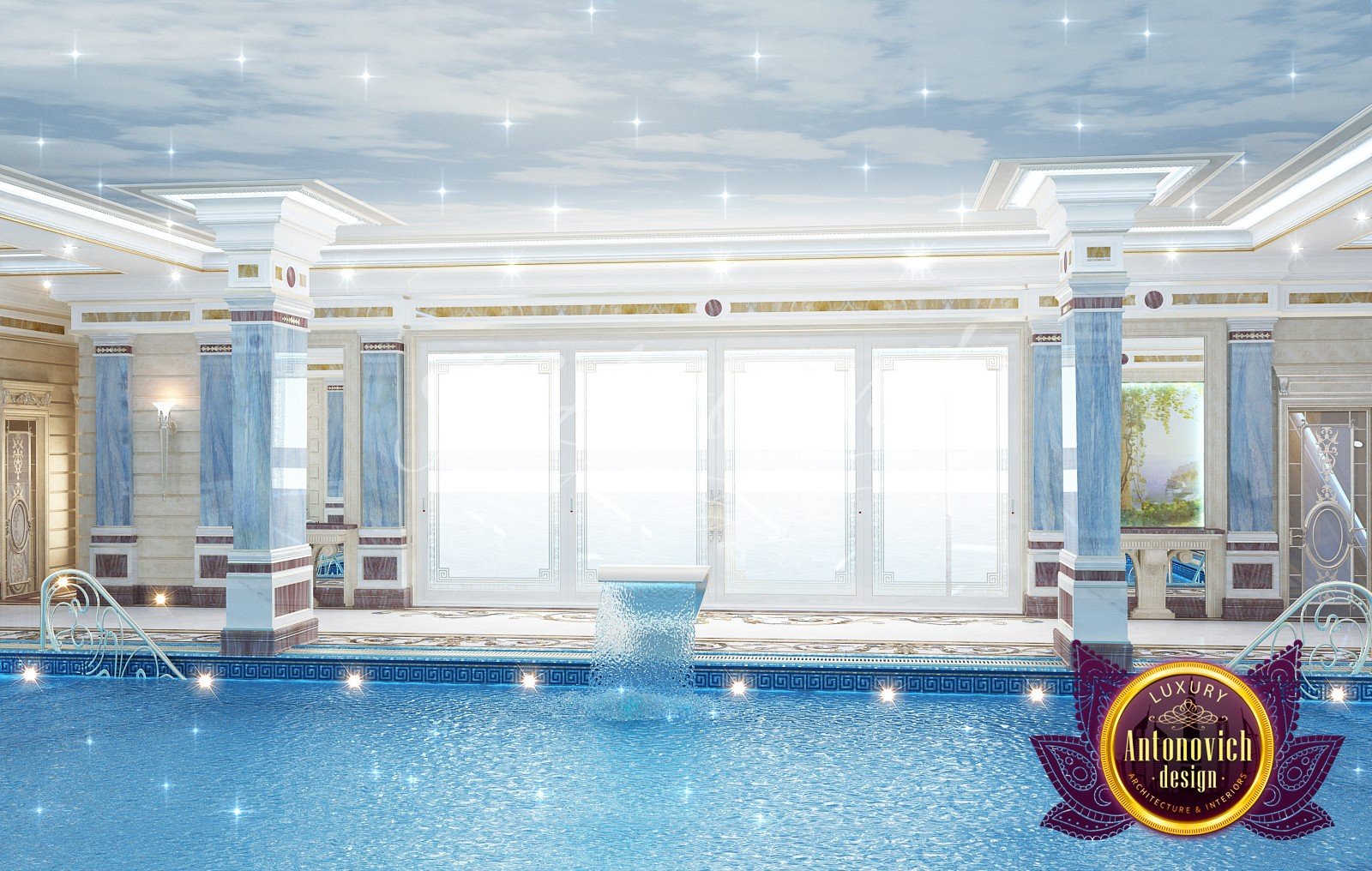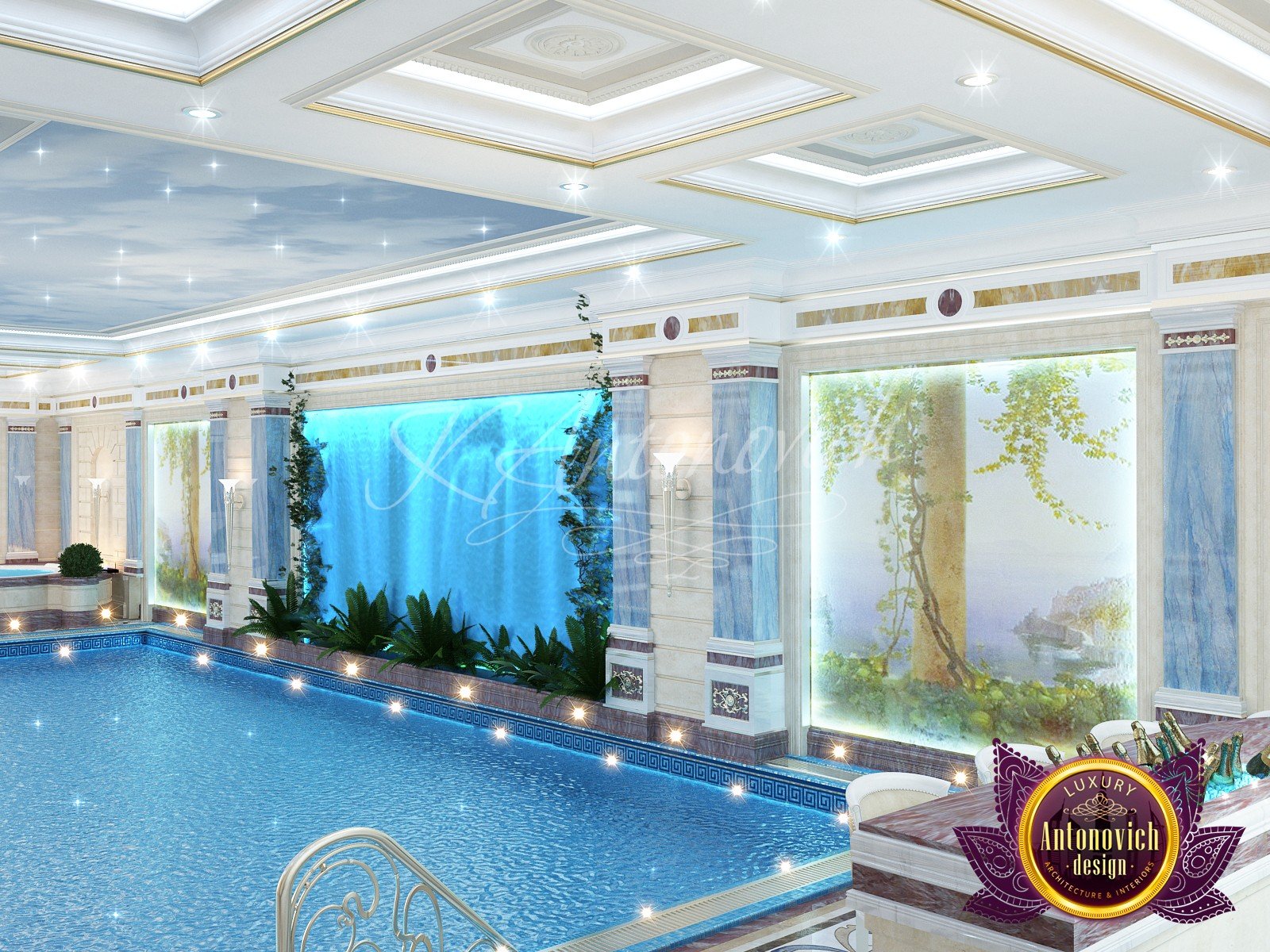 * проработка стилистических и цветовых решений, предварительный выбор материалов для бассейна.
