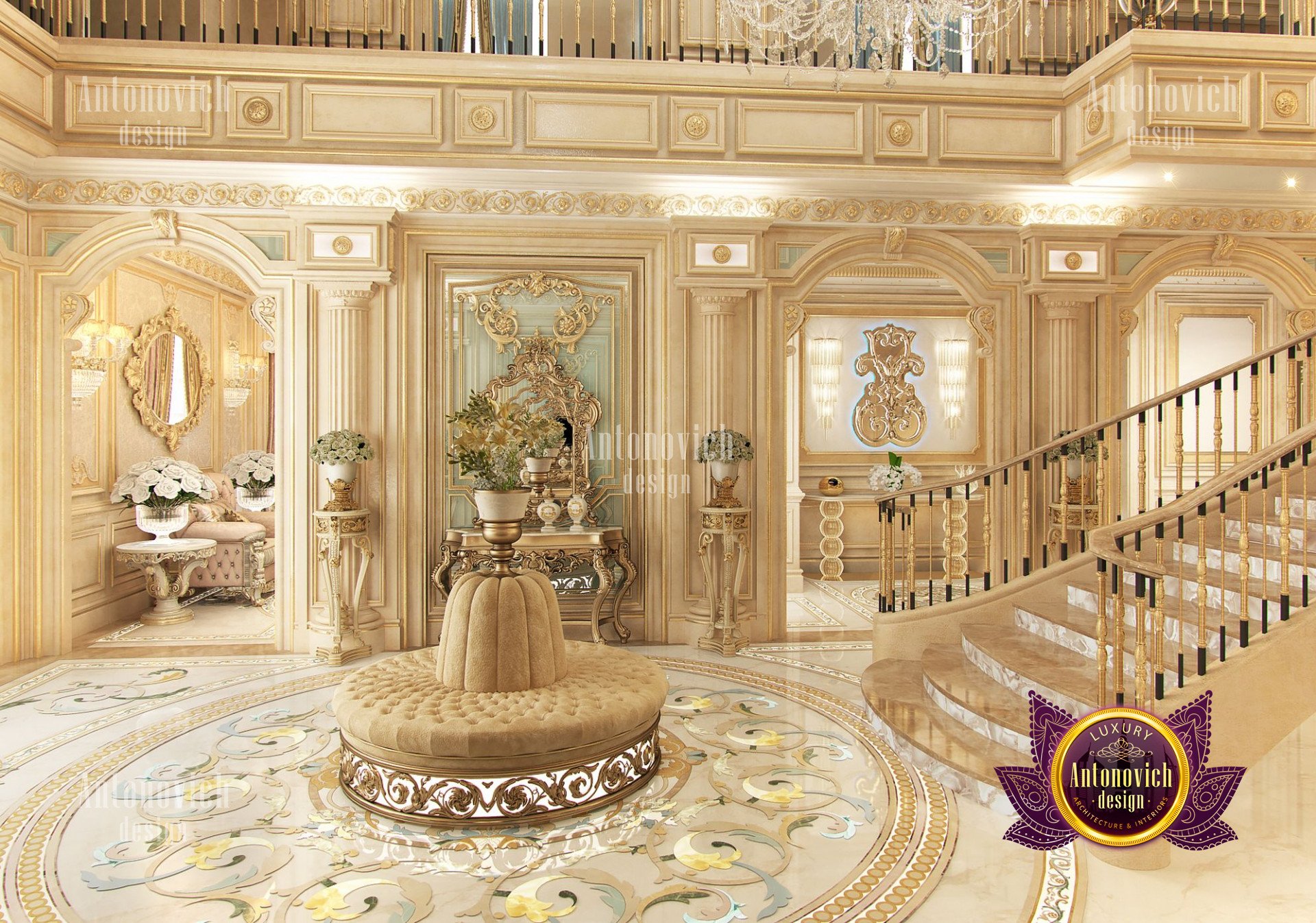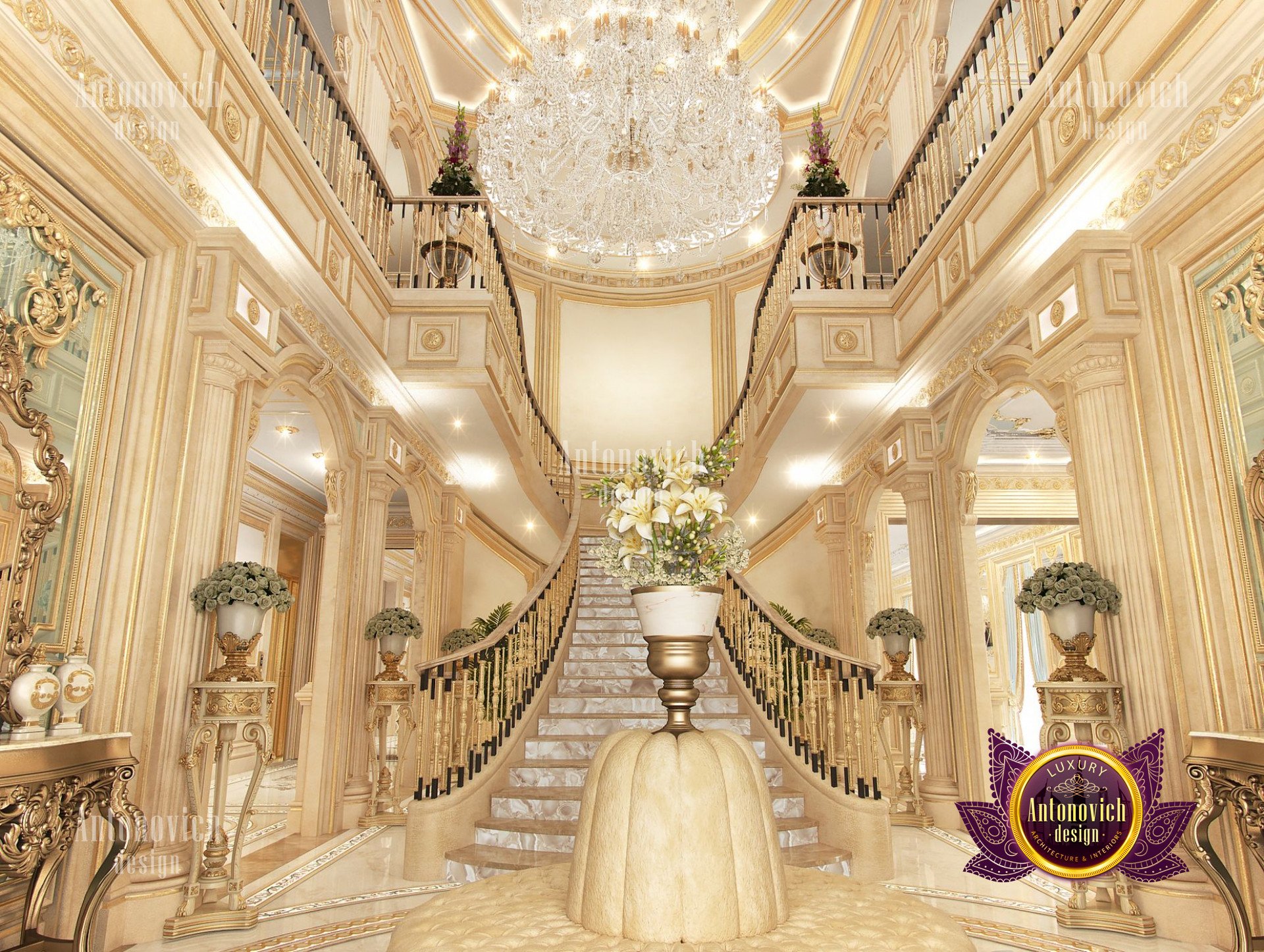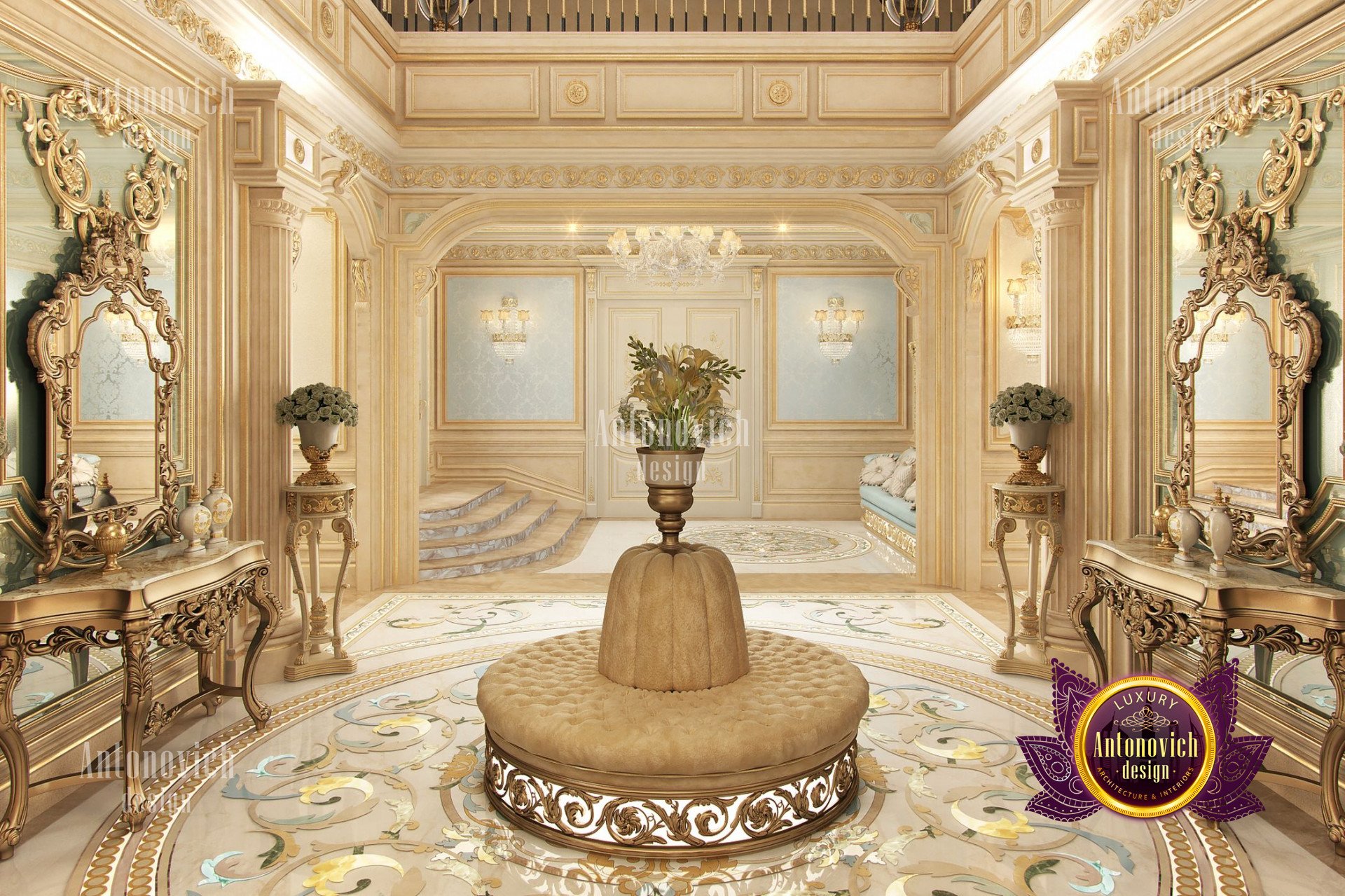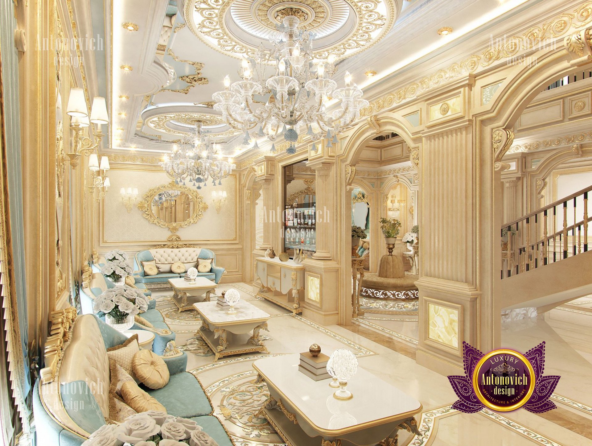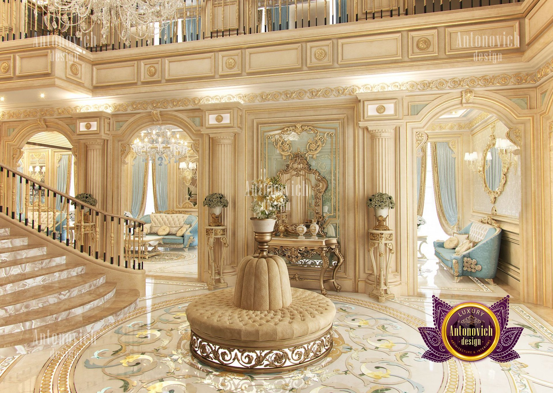 - Концептуализация: Интерьер виллы имеет концепцию, где дизайн выстроен в рамках общей темы, чтобы каждый угол дома выглядел созвучно. В данном проекте использован классический подход, который остаётся вне времени и эстетически привлекателен; интерьер виллы в неоклассическом стиле с золотыми акцентами придаёт ощущение исключительной элегантности.