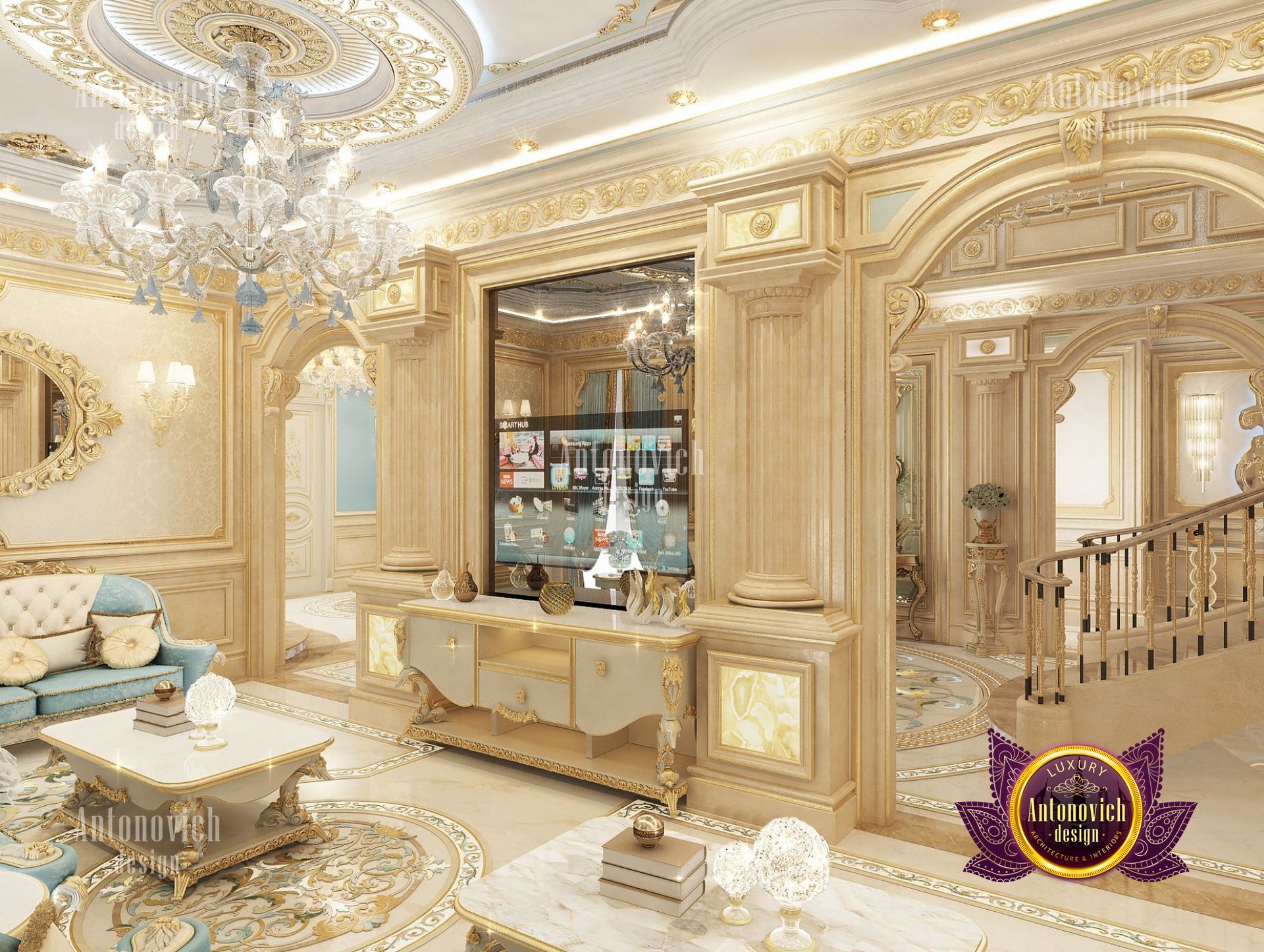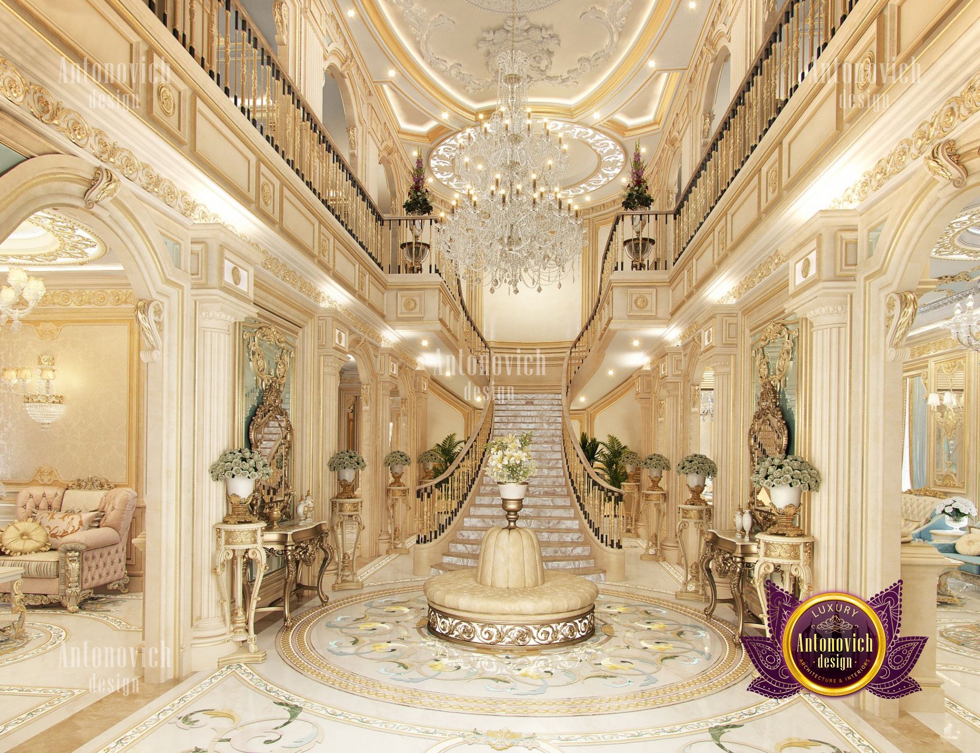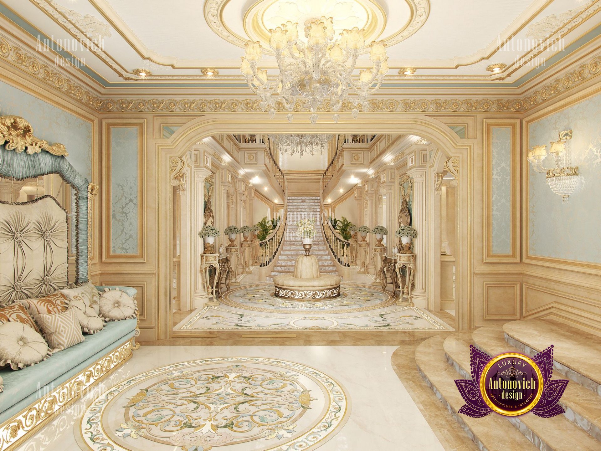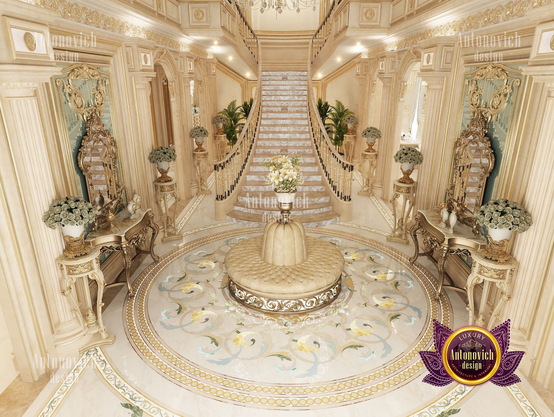 - Концептуализация: Интерьер виллы имеет концепцию, где дизайн выстроен в рамках общей темы, чтобы каждый угол дома выглядел созвучно. В данном проекте использован классический подход, который остаётся вне времени и эстетически привлекателен; интерьер виллы в неоклассическом стиле с золотыми акцентами придаёт ощущение исключительной элегантности.