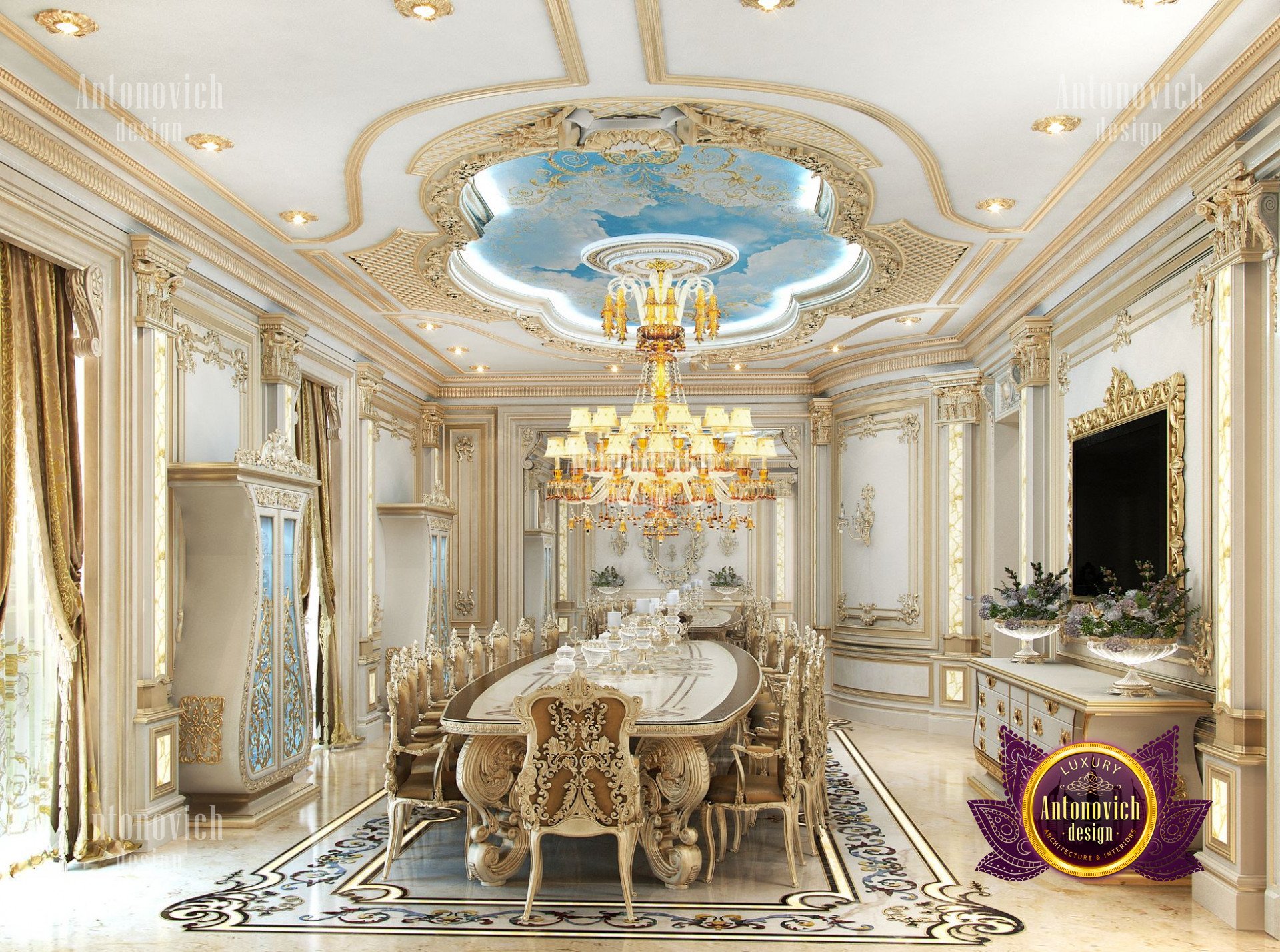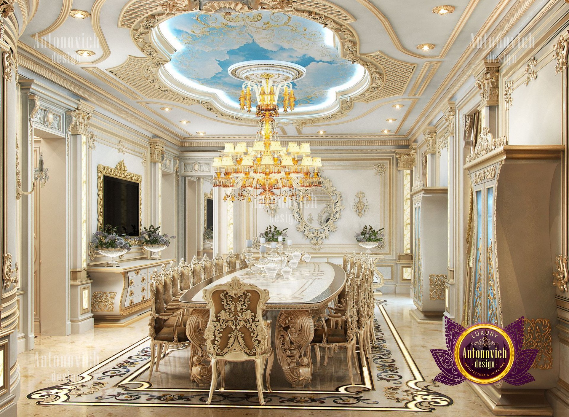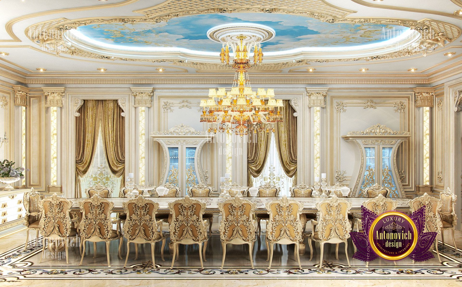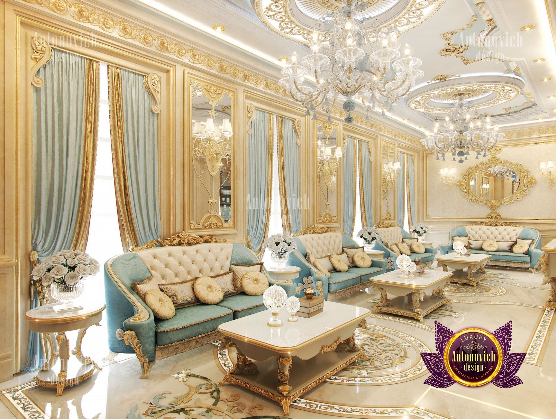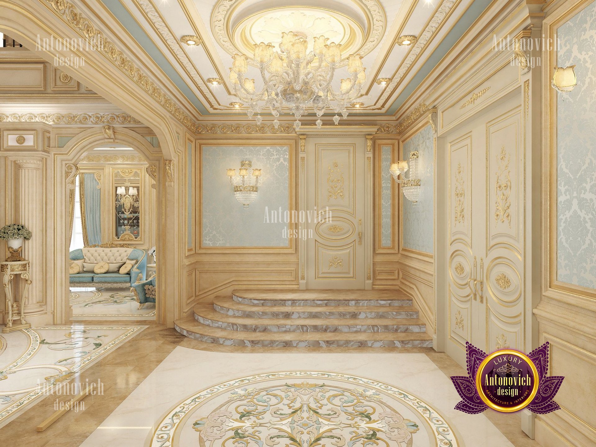 - Концептуализация: Интерьер виллы имеет концепцию, где дизайн выстроен в рамках общей темы, чтобы каждый угол дома выглядел созвучно. В данном проекте использован классический подход, который остаётся вне времени и эстетически привлекателен; интерьер виллы в неоклассическом стиле с золотыми акцентами придаёт ощущение исключительной элегантности.