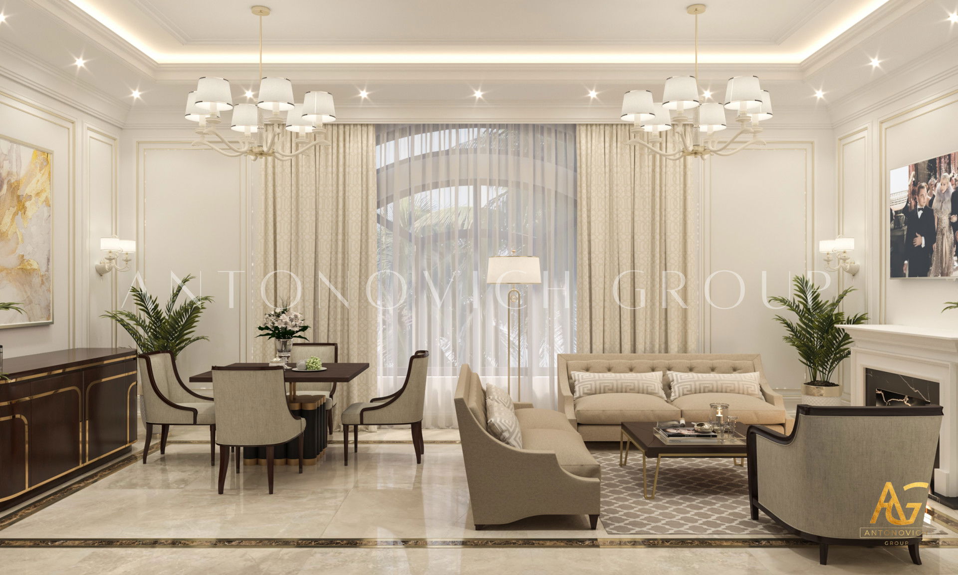 Гибкость Antonovich Group позволяет ей преуспевать в широком диапазоне стилей дизайна. Хотя фирма всемирно признана за свои королевские классические интерьеры с богатыми деталями, золотыми акцентами и величественными люстрами, она также мастерски создает современные и современные интерьеры вилл, характеризующиеся чистыми линиями, открытыми пространствами и премиальными материалами.