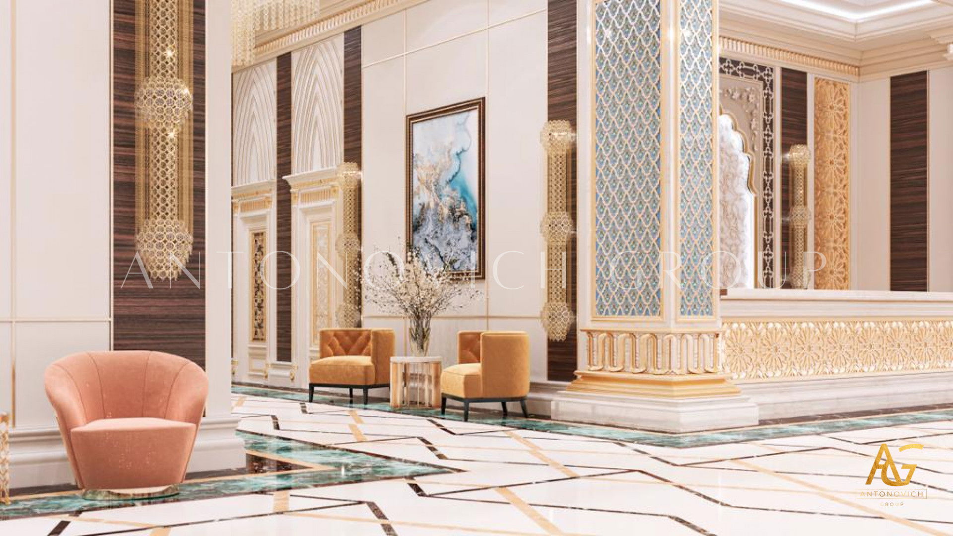 Мебель и техника должны быть адаптируемыми: предусмотрите регулировки для мониторов и удобный доступ к розеткам. Главная цель проекта — функциональность, и при этом эстетика остаётся важной. Только сочетание практичности и изящной эстетики даёт по-настоящему роскошный дизайн гостиницы. В портфолио показана архитектура и интерьер в Эр-Рияде и включены индивидуальные решения под местные стандарты; при заказе вы получаете полный проект интерьера гостиницы в Эр-Рияде.