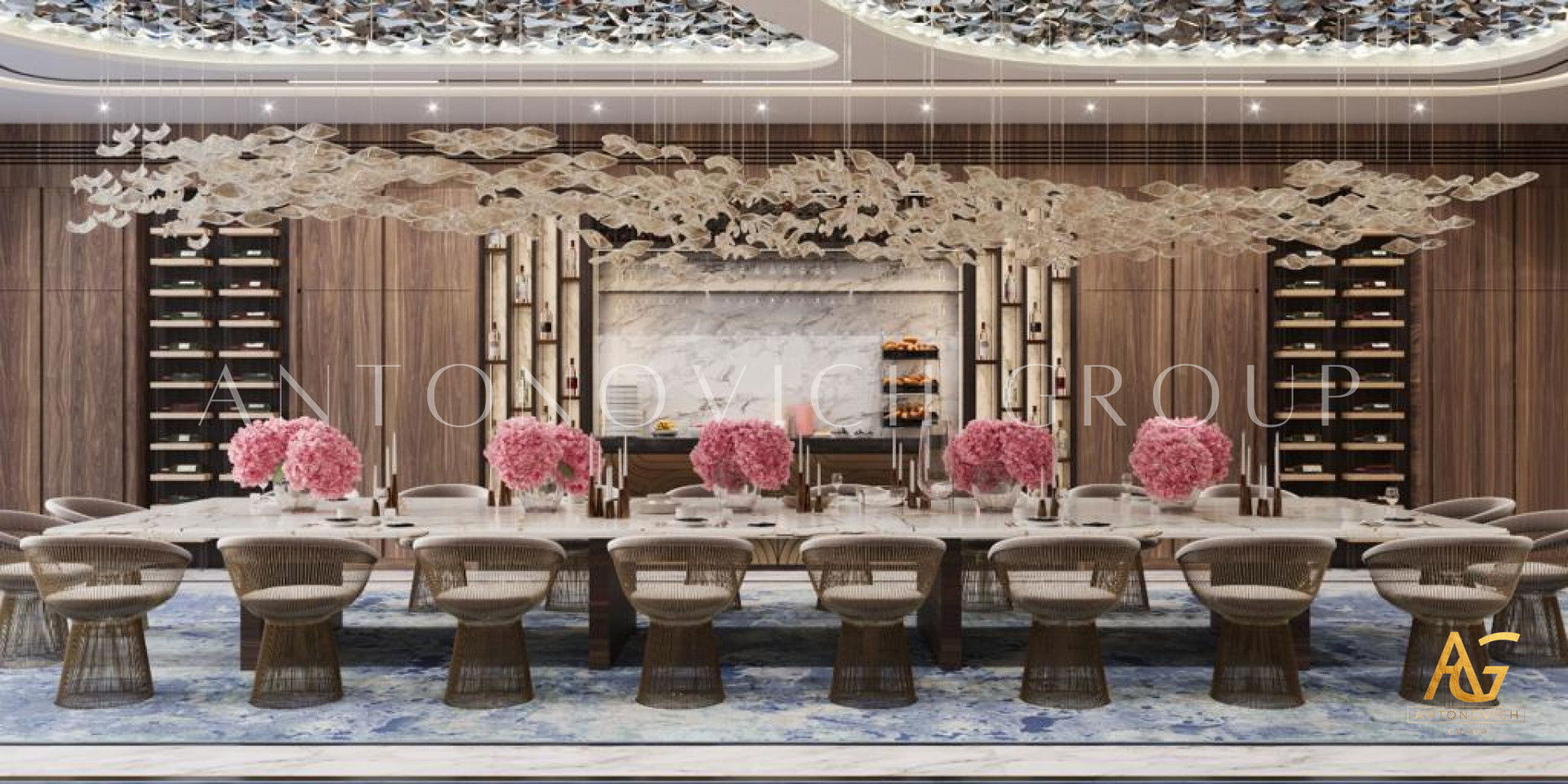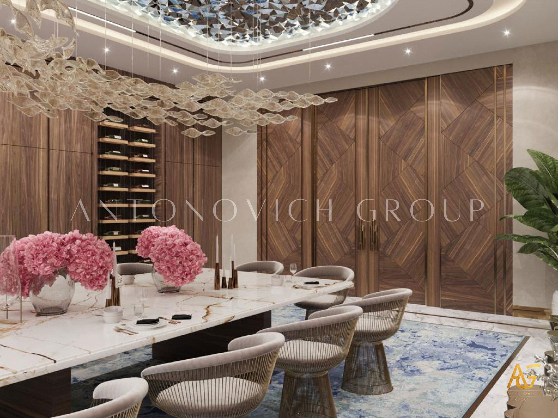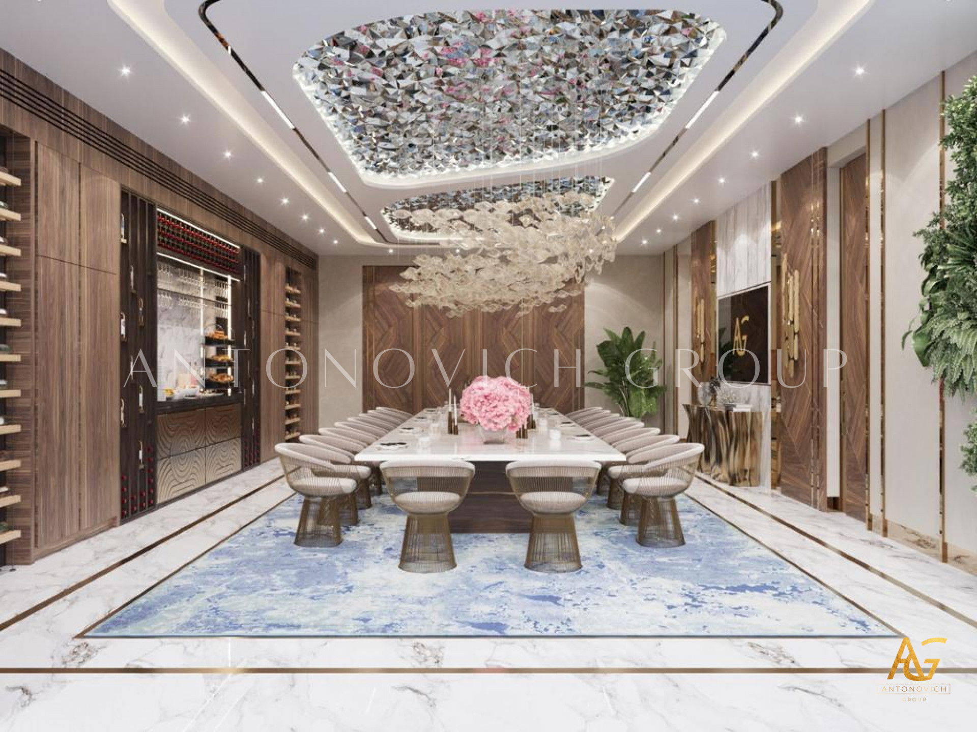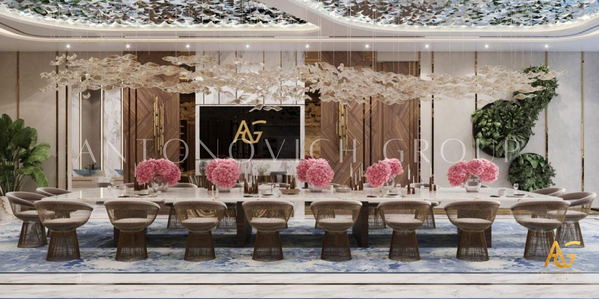 Дубай, город, ассоциирующийся с роскошью и инновациями, находит своё идеальное отражение в изысканных интерьерах столовых, разработанных Антонович Групп (Antonovich Group). С неизменной преданностью элегантности и утончённости Антонович Групп создаёт обстановку для приёмов, превосходящую обыденность. В частности, интерьер столовой в Дубае становится визуальным воплощением стиля и комфорта.