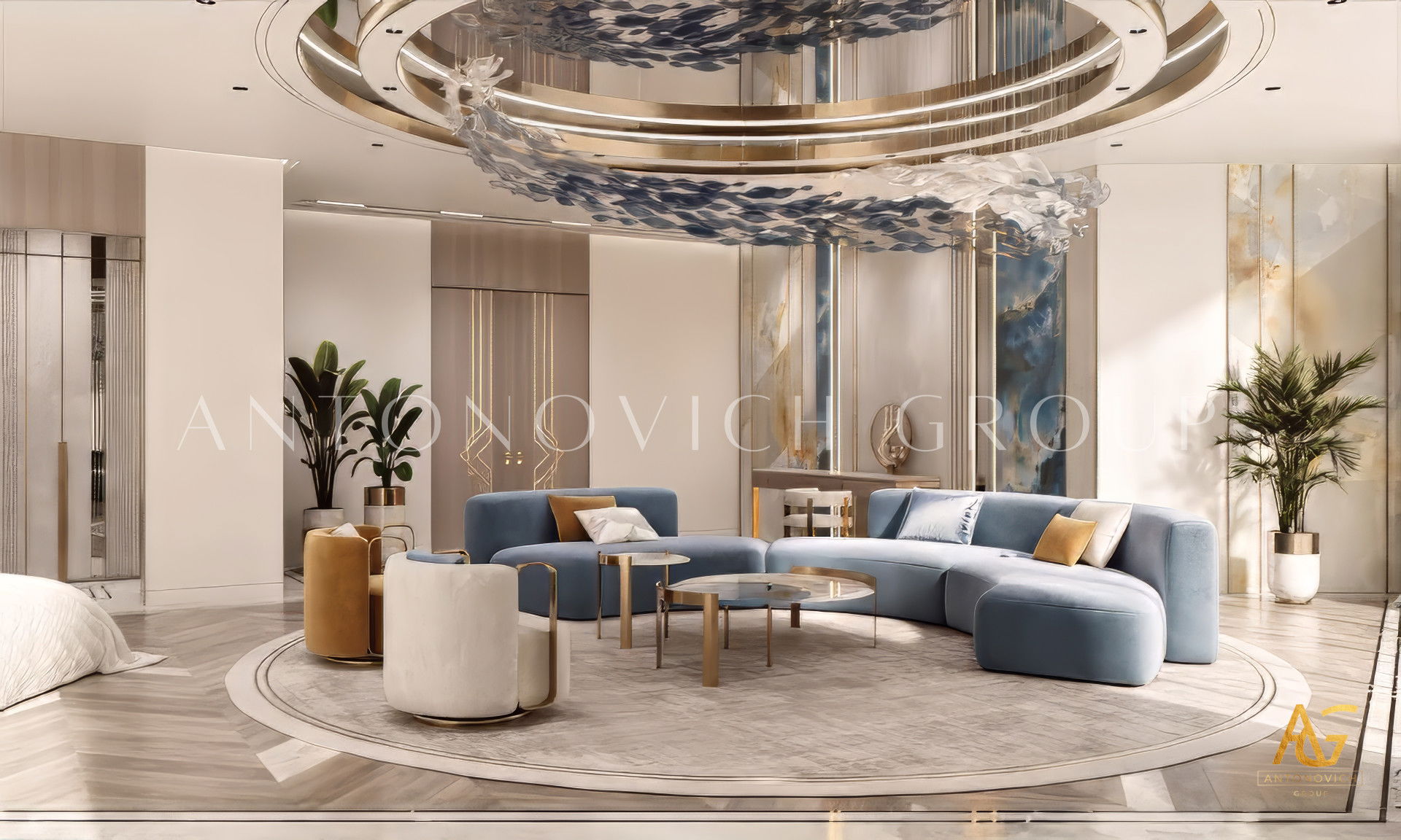 Если вы хотите дизайн роскошной спальни, придерживайтесь единой концепции. Эта великолепная комната, как в изящном проекте Антонович Дизайн (Antonovich Design), содержит всё необходимое для роскошного сна. С современным стилем и пропорциями этот прекрасный дизайн действительно впечатляет. Глянцевый интерьер спальни уникален и усиливает привлекательность помещения. Интерьер спальни с освещением выглядит особенно величественно: продуманное освещение завершает образ.