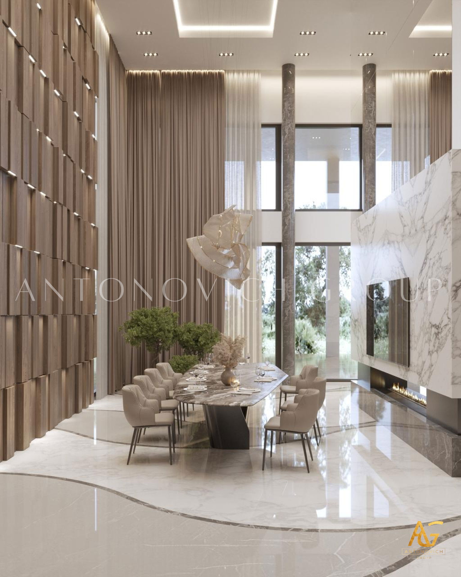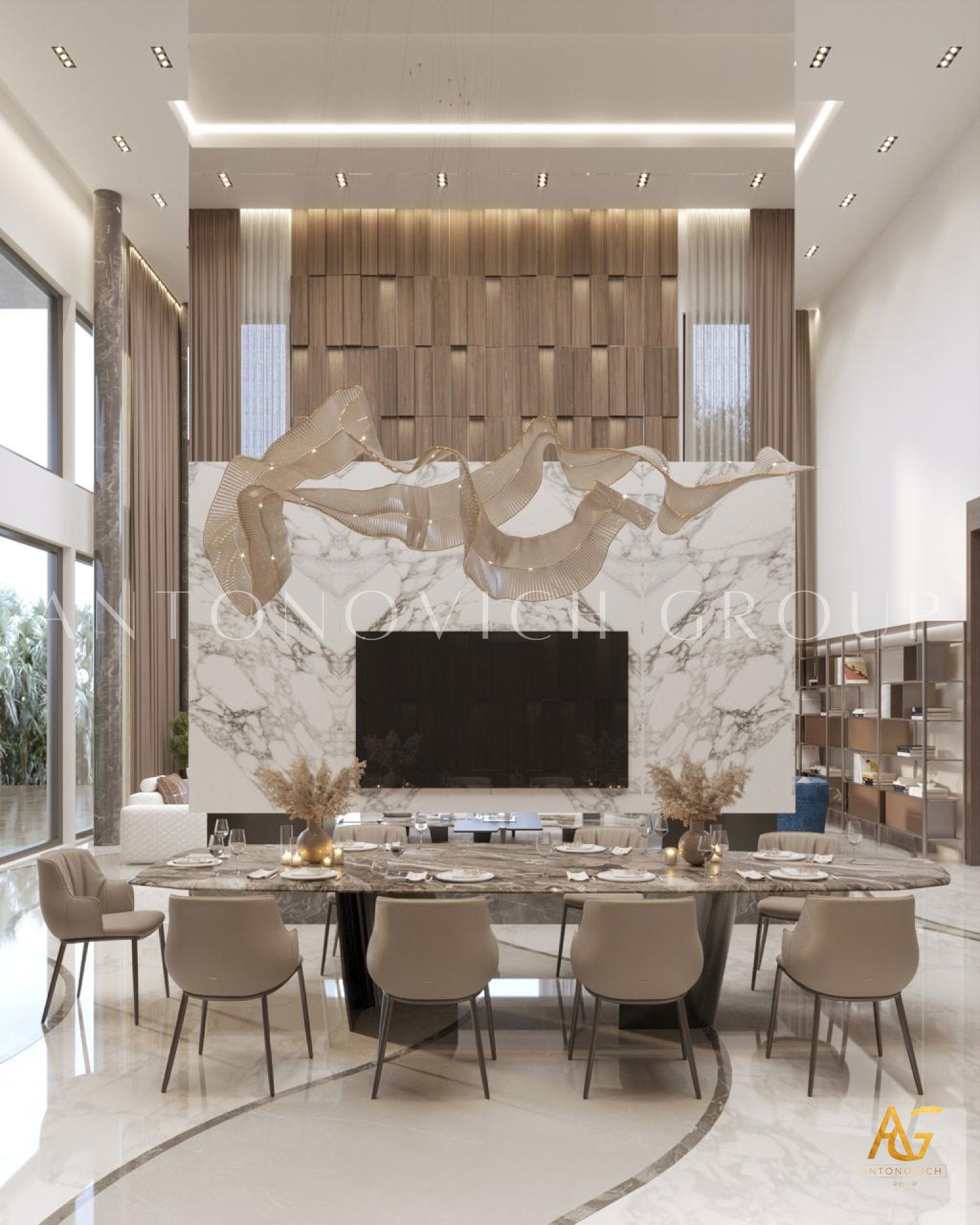 В ОАЭ, где роскошь — часть образа жизни, требуется особое видение: роскошный дизайн столовой ОАЭ должен быть величественным и при этом тёплым. Антонович Дизайн создаёт такие интерьеры, отражающие сочетание традиций и современности, отвечая ожиданиям взыскательных домовладельцев.