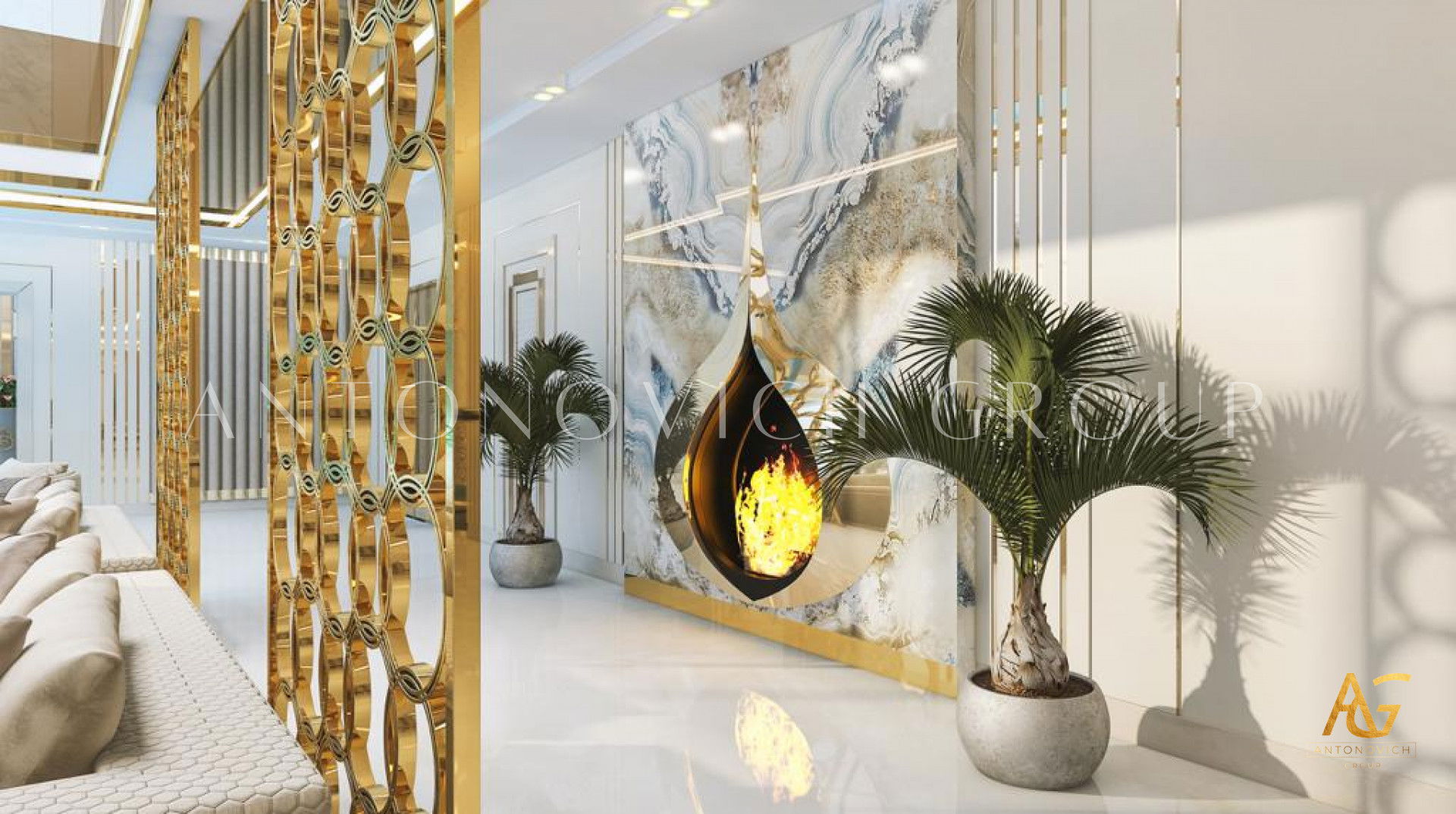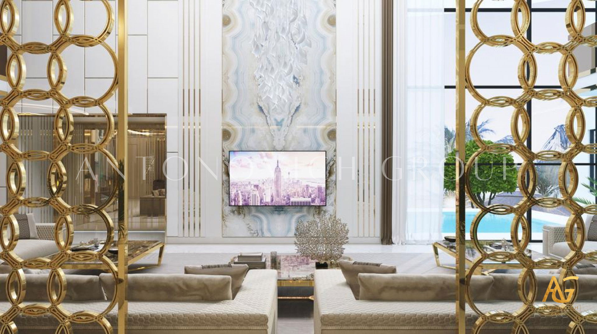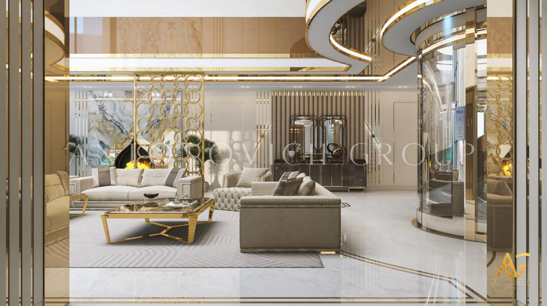Экстравагантность и красота — ключевые темы этих гостиных. Каждый проект адаптирован для самых состоятельных жителей города, с изящной и продуманной планировкой, которая вам наверняка понравится. Если вы ищете вдохновение для следующего обновления дома или рассматриваете покупку новой недвижимости, эти примеры дизайн интерьера в Бразилии станут отличной отправной точкой. Гостиная оформлена с использованием золотых линий и декоративных мотивов; дизайн богатый, одновременно современный и роскошный. Для тех, кто ценит сдержанную элегантность, это один из лучших вариантов роскошный дизайн интерьера.