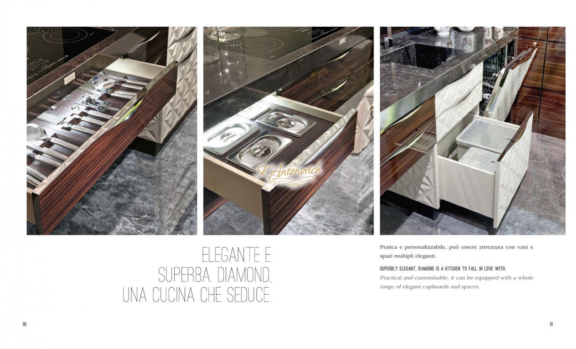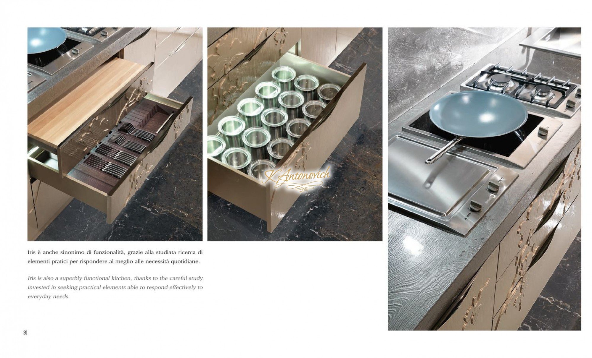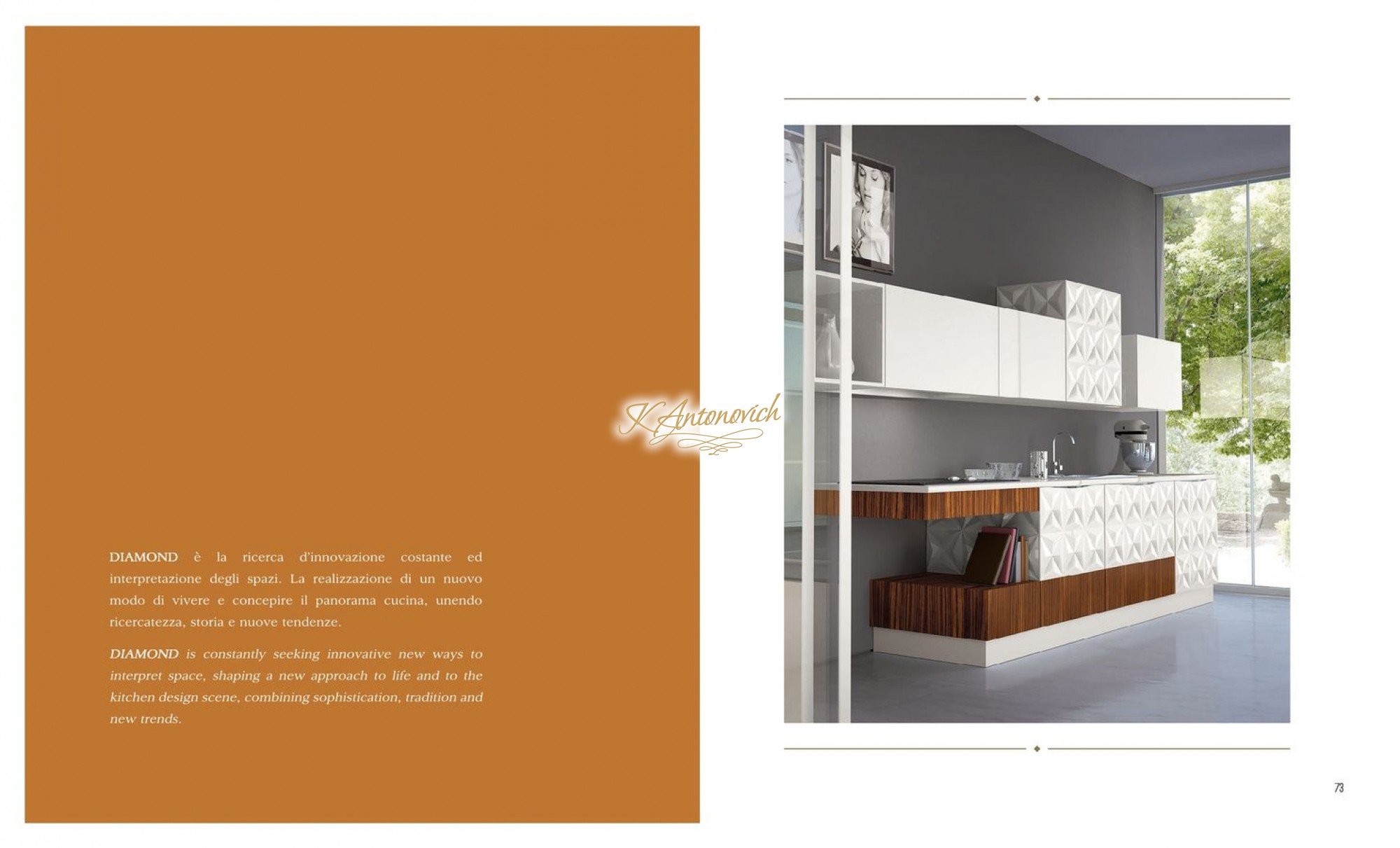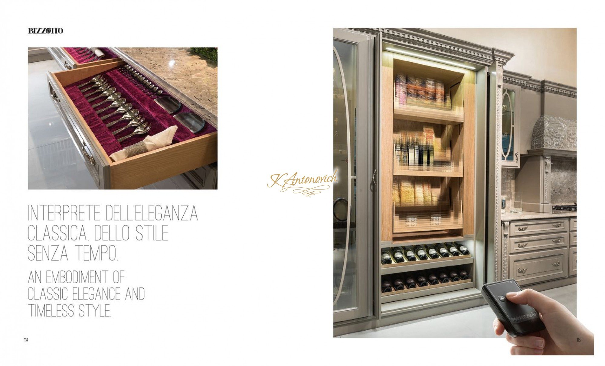 В этом разделе каталога представлены итальянские кухни. Когда вы слышите эти слова, вы представляете не просто рабочую зону, а роскошную, эксклюзивную, элитную итальянскую мебель, за которой готовить и принимать пищу — настоящее удовольствие. И действительно, по всему миру итальянская кухонная мебель славится непревзойденным качеством. Наша компания предлагает вам возможность приобрести итальянские кухни на заказ, чтобы аккуратно воплотить ваши идеи в интерьере дома. Сегодня кухни из Италии на заказ стоят дорого, но элитные итальянские кухни на заказ радуют глаз: их можно назвать настоящим шедевром — разница между подлинным элитизмом и простой мебелью очевидна. Приобретение итальянской кухни — это первый шаг к оригинальному подходу в оформлении места для приготовления и принятия пищи. Прежде всего отметим, что кухонные гарнитуры из натурального мрамора и кухонные столешницы из искусственного камня изготовлены из очень прочных материалов, которые легко чистятся, не подвержены механическим повреждениям и огнестойки. В кухню можно встроить любую технику — встроенная бытовая техника для кухни легко интегрируется в мебель. Мы предлагаем дизайн итальянской кухни на заказ, включая проекты «кухня в классическом итальянском стиле» и современные решения. В нашем салоне представлена элитная итальянская мебель для кухни в разных стилях и цветах. Почувствуйте себя на кухне как в королевском дворце, где блюда получаются особенно вкусными! Если вы хотите купить итальянскую кухню в Москве или выбрать кухня на заказ премиум класса, обратитесь в салон Антонович Дизайн (Antonovich Design).