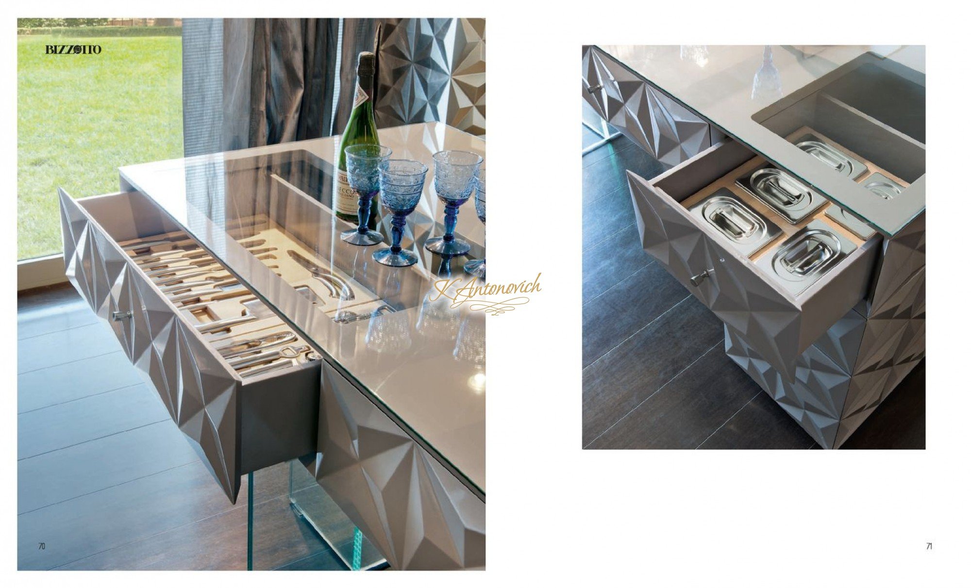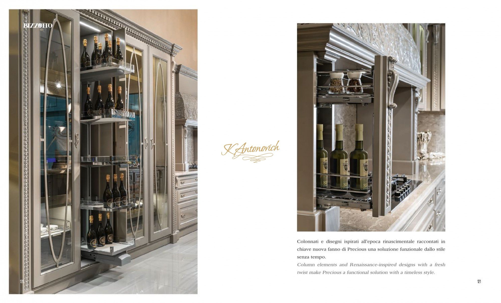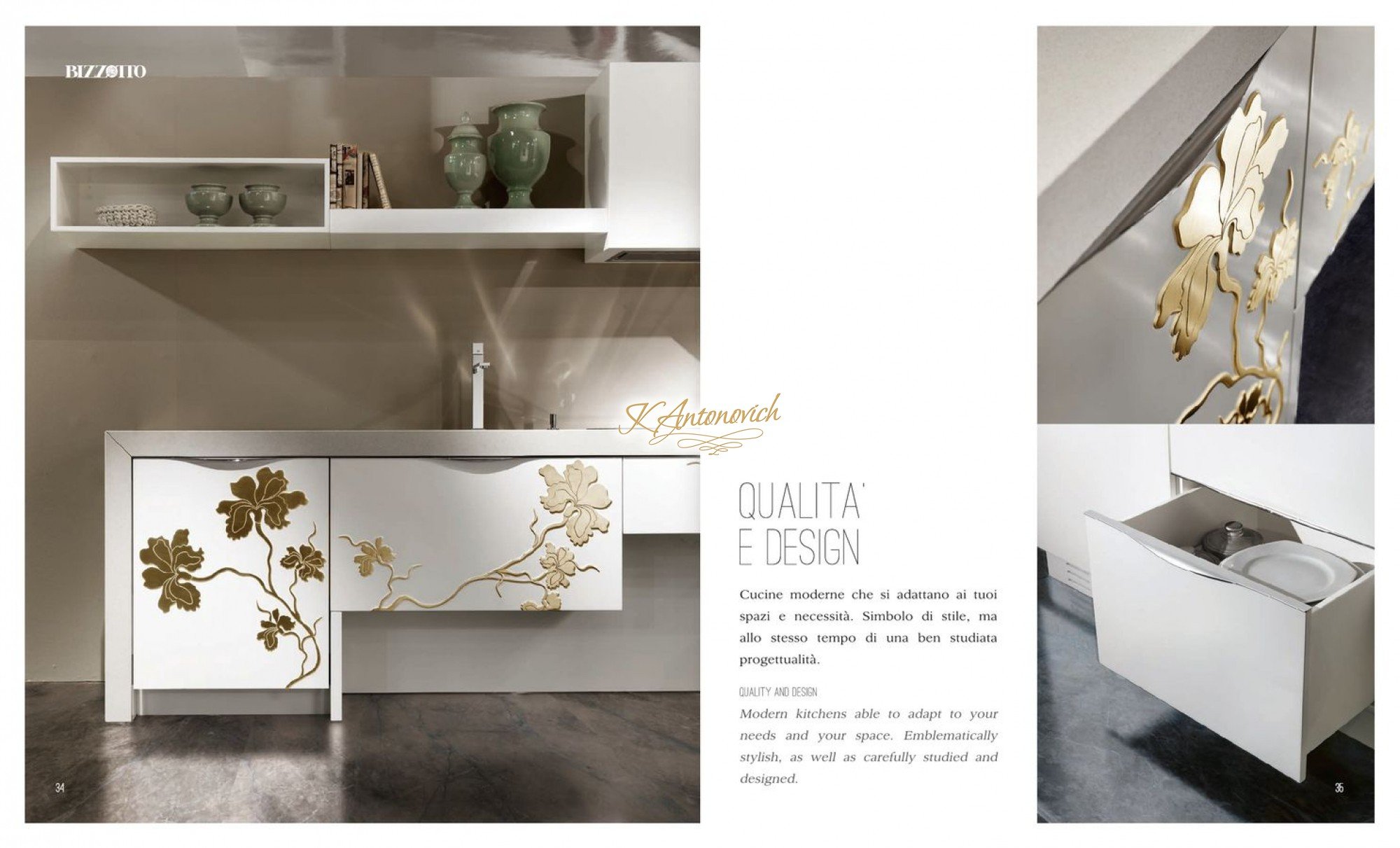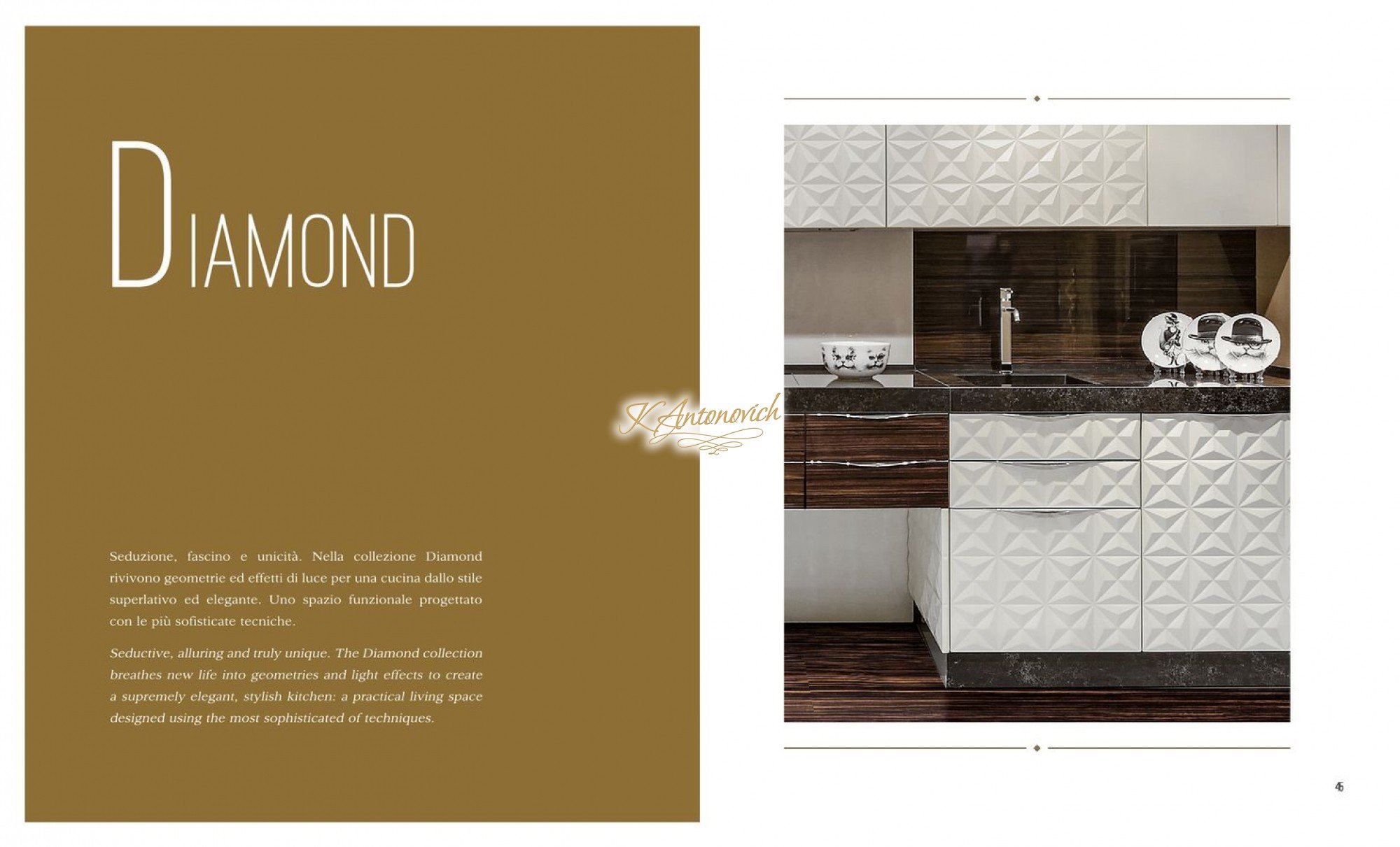 В этом разделе каталога представлены итальянские кухни. Когда вы слышите эти слова, вы представляете не просто рабочую зону, а роскошную, эксклюзивную, элитную итальянскую мебель, за которой готовить и принимать пищу — настоящее удовольствие. И действительно, по всему миру итальянская кухонная мебель славится непревзойденным качеством. Наша компания предлагает вам возможность приобрести итальянские кухни на заказ, чтобы аккуратно воплотить ваши идеи в интерьере дома. Сегодня кухни из Италии на заказ стоят дорого, но элитные итальянские кухни на заказ радуют глаз: их можно назвать настоящим шедевром — разница между подлинным элитизмом и простой мебелью очевидна. Приобретение итальянской кухни — это первый шаг к оригинальному подходу в оформлении места для приготовления и принятия пищи. Прежде всего отметим, что кухонные гарнитуры из натурального мрамора и кухонные столешницы из искусственного камня изготовлены из очень прочных материалов, которые легко чистятся, не подвержены механическим повреждениям и огнестойки. В кухню можно встроить любую технику — встроенная бытовая техника для кухни легко интегрируется в мебель. Мы предлагаем дизайн итальянской кухни на заказ, включая проекты «кухня в классическом итальянском стиле» и современные решения. В нашем салоне представлена элитная итальянская мебель для кухни в разных стилях и цветах. Почувствуйте себя на кухне как в королевском дворце, где блюда получаются особенно вкусными! Если вы хотите купить итальянскую кухню в Москве или выбрать кухня на заказ премиум класса, обратитесь в салон Антонович Дизайн (Antonovich Design).