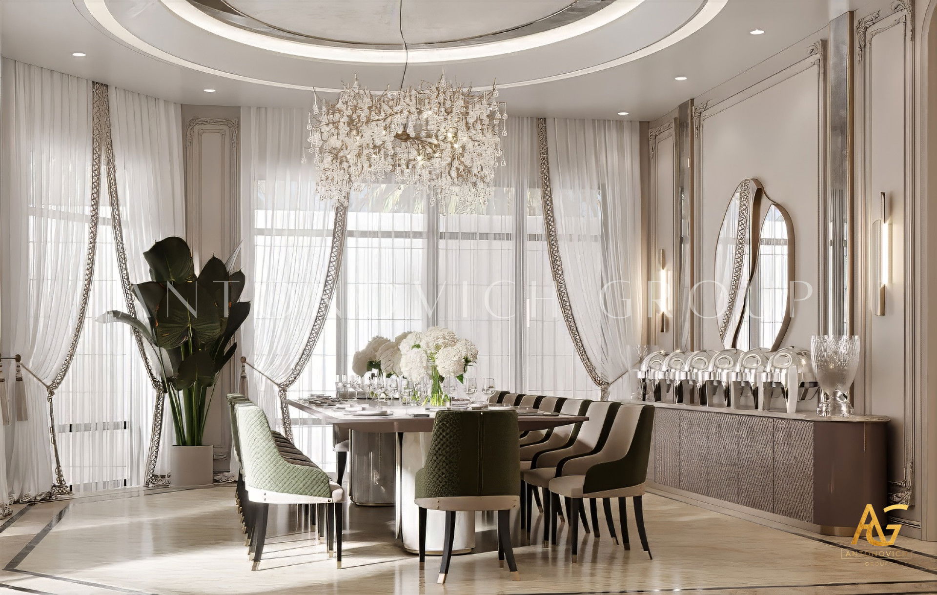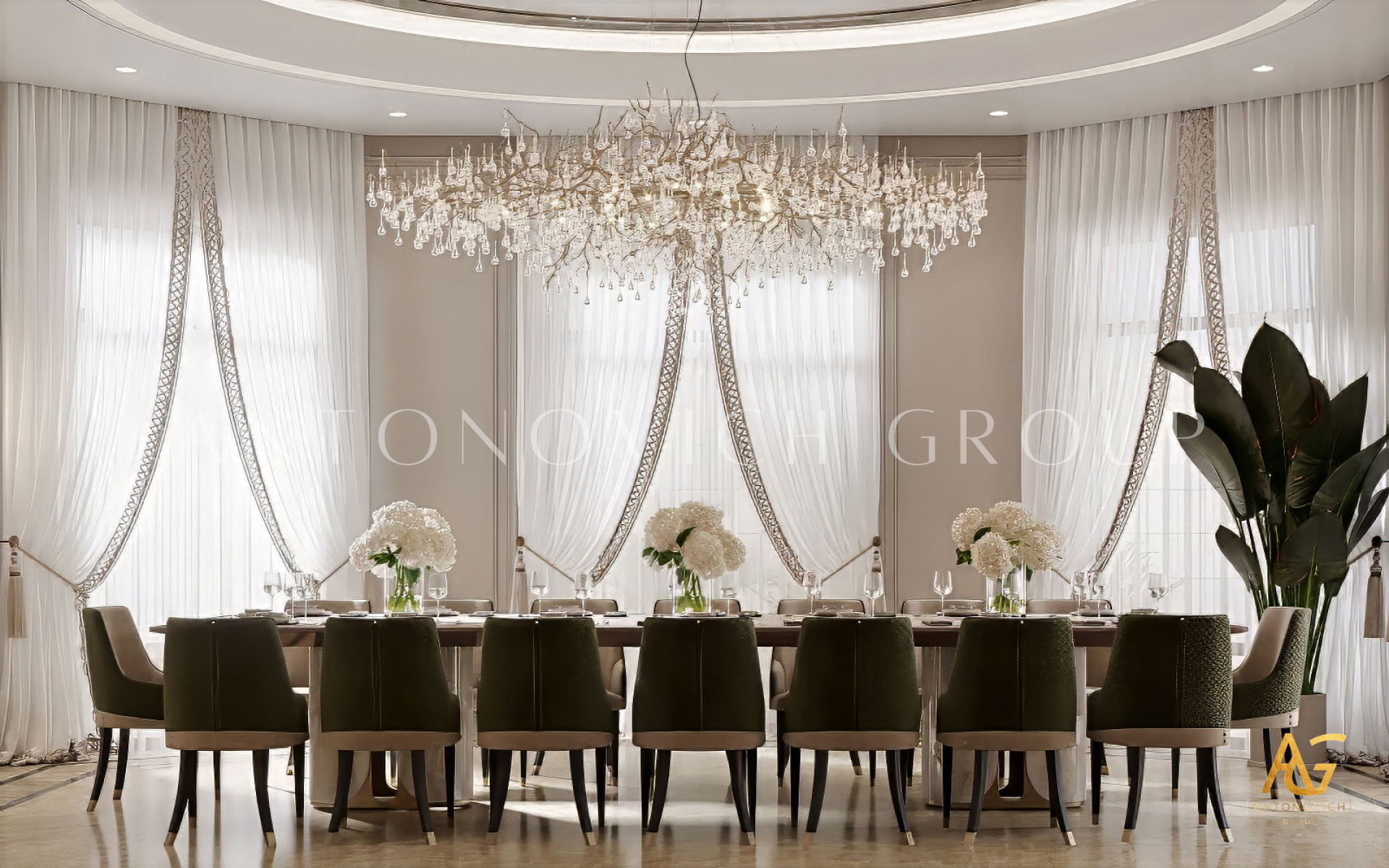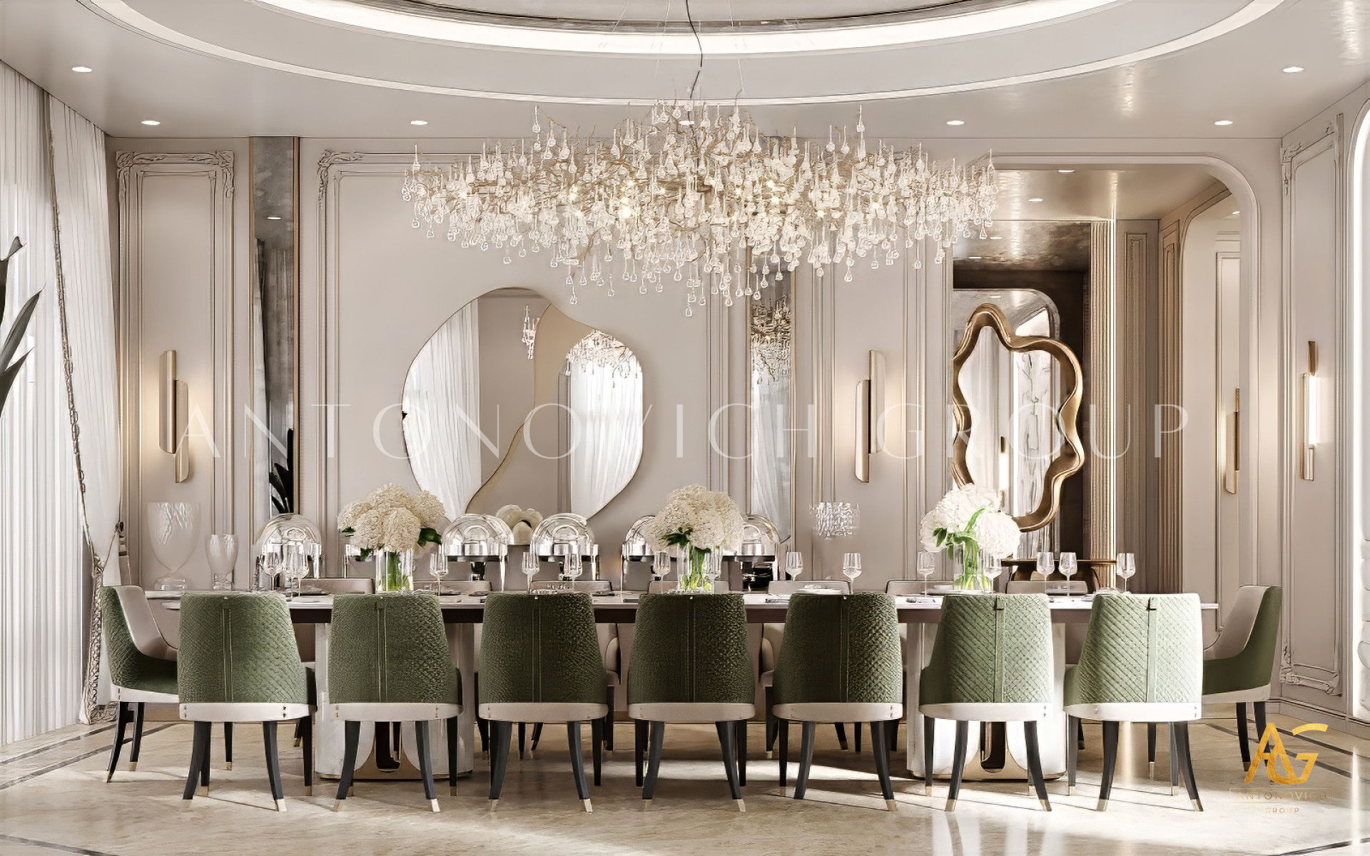 Каждый проект отражает характер его клиента. Архитектурно‑дизайнерская компания Антонович Дизайн (Antonovich Design) создаёт проекты со вкусом и желанием, формирует комфорт и наполняет их жизнью. Частичка души дизайнера присутствует в каждом интерьере. Для создания высокоуровневого дизайна — арабская столовая в стиле люкс — высококлассные специалисты студии используют только натуральные материалы: дерево, металл, мрамор. Натуральные материалы в интерьере столовой подчёркивают тепло и статус пространства. Весь проект выполнен в современном стиле, при этом всё выглядит элегантно, гармонично и красиво. Современные идеи для столовой и гармоничные цветовые сочетания интерьера превращают обеденную комнату в прекрасное место для отдыха и расслабления. В результате появляется комфортная обеденная зона для дома, где можно не только наслаждаться трапезой, но и провести время за чашкой чая или кофе. Дизайн-студии в Дубае предлагают только самые модные решения, которыми можно гордиться. Самые известные и опытные профессионалы студии Антонович Дизайн уделили особое внимание оформлению стен. Викторианская лепнина в интерьере столовой и французская лепнина в столовой невероятно украшают помещение — это придаёт столовой особое очарование и элегантность. Текучие линии узоров подчёркивают утончённый вкус владельцев. Мраморный пол в столовой, как завершающий штрих, подчёркивает солидность и статус хозяев дома. Обеспечен абсолютный комфорт и превосходная гармония. Настоящие профессионалы знают, как превратить ваши мечты в реальность. Запросы на элитный интерьер столовой в Москве подтверждают востребованность таких решений.