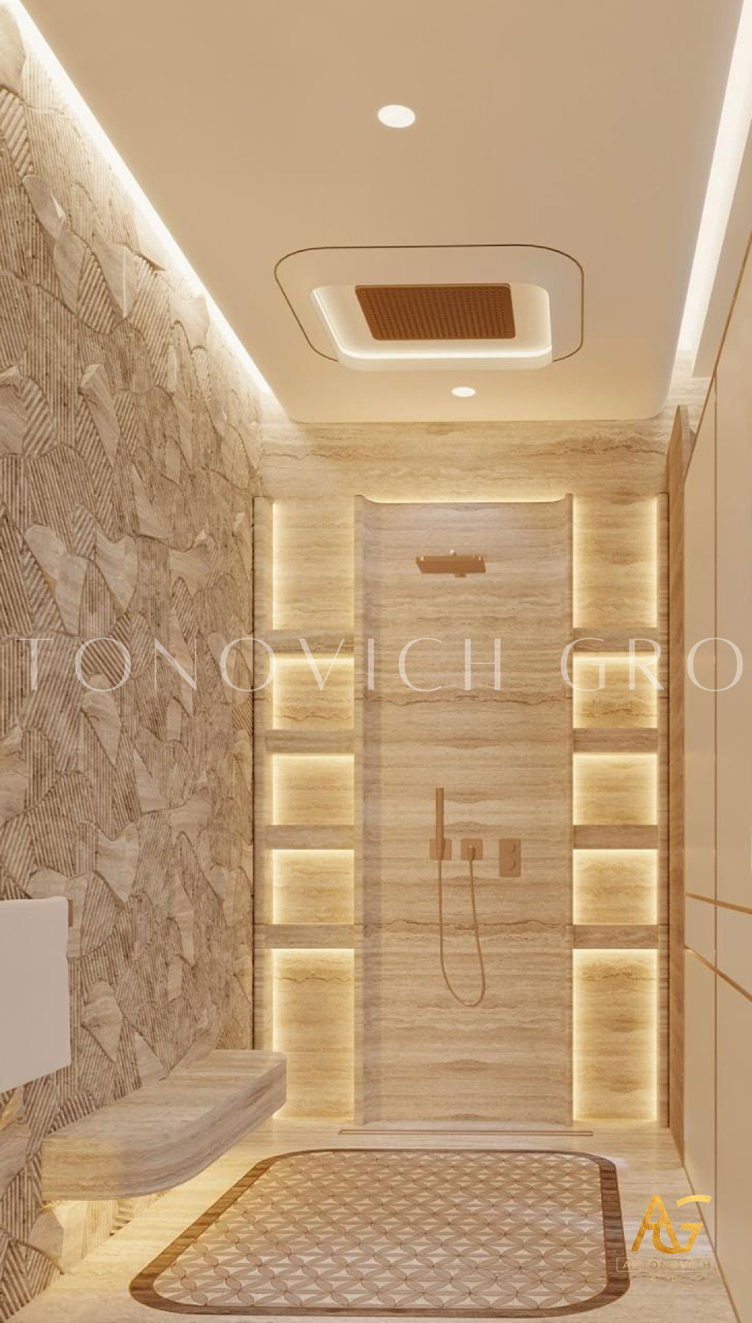 Чтобы сохранить классический интерьер ванной комнаты, поверхности лучше делать из долговечных и лёгких в уходе материалов — выбирайте керамогранит или искусственный камень. Для премиальных решений обращайте внимание на материалы для ванной комнаты премиум и избегайте чрезмерно пористых натуральных материалов, которые требуют частой пропитки и ухода. Для душевых основой должны служить блестящие противоскользящие покрытия; одновременно плитка для душевой без скольжения не должна иметь слишком грубую фактуру, чтобы на ней меньше скапливалась грязь. Отдавайте предпочтение покрытию, где натуральный и восстановленный камень для ванной не слишком гладкий и не слишком шершавый, чтобы повысить водостойкость. Выбирайте надёжную компанию по гидроизоляции и герметизации ванной и проконсультируйтесь с профессиональными сантехниками и электриками: сантехника и электрические потребности ванной должны быть согласованы заранее. Роскошный дизайн ванной остаётся отражением эпохи и вкуса.