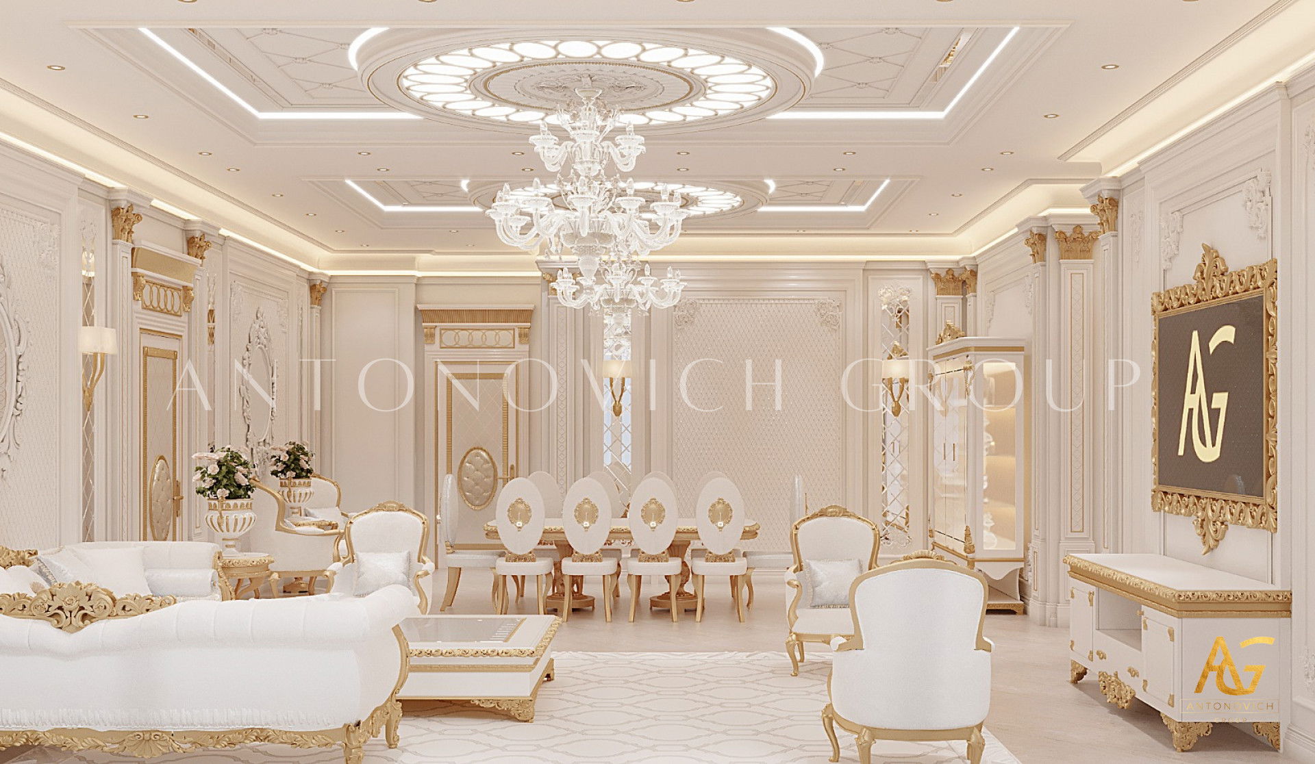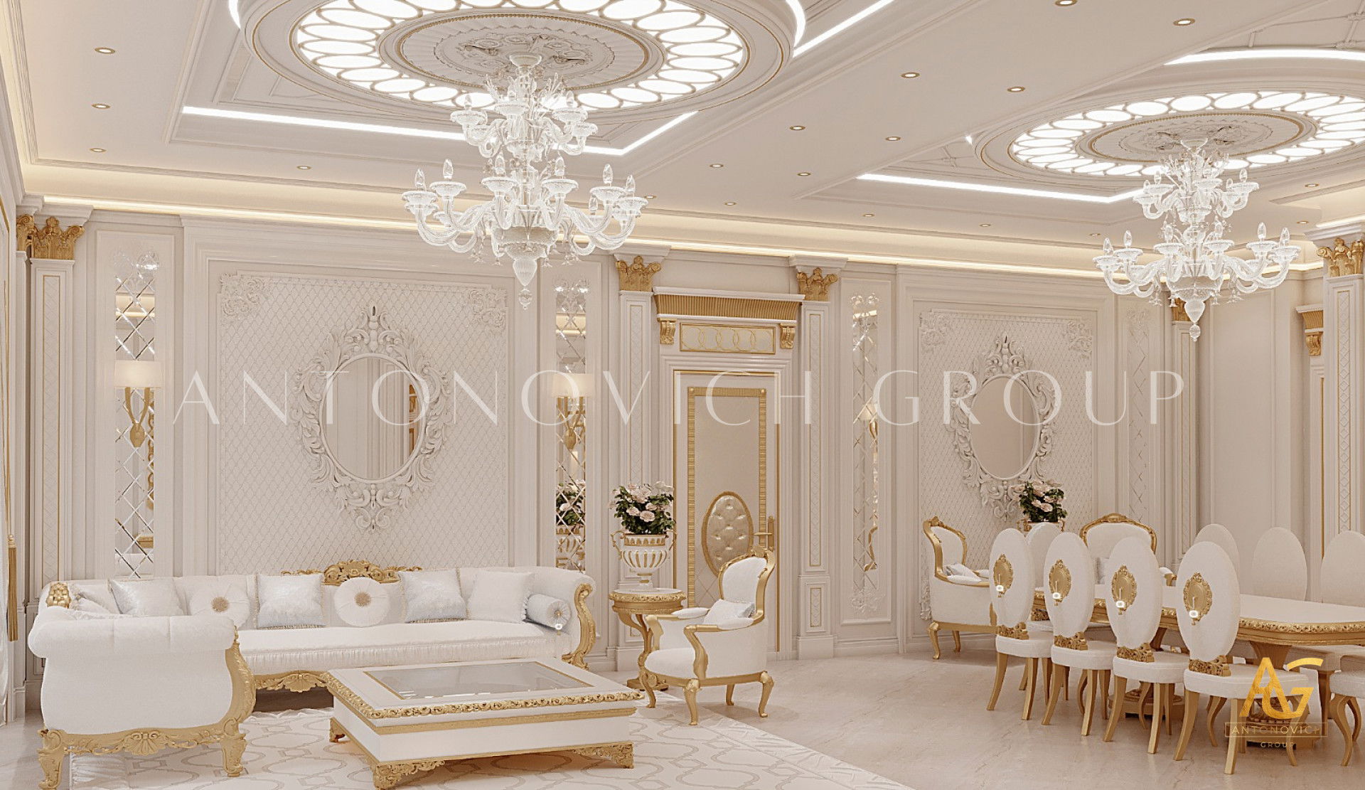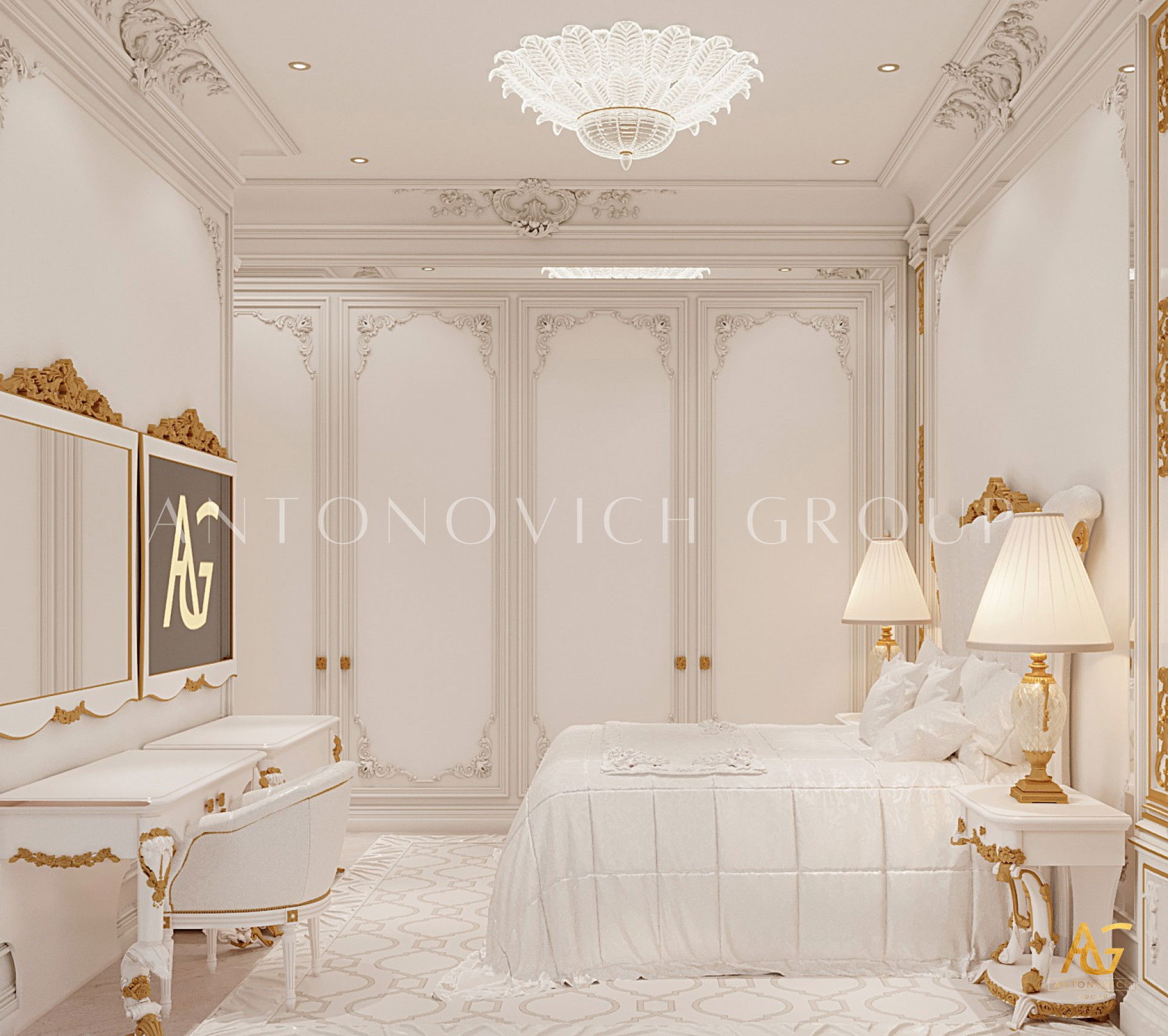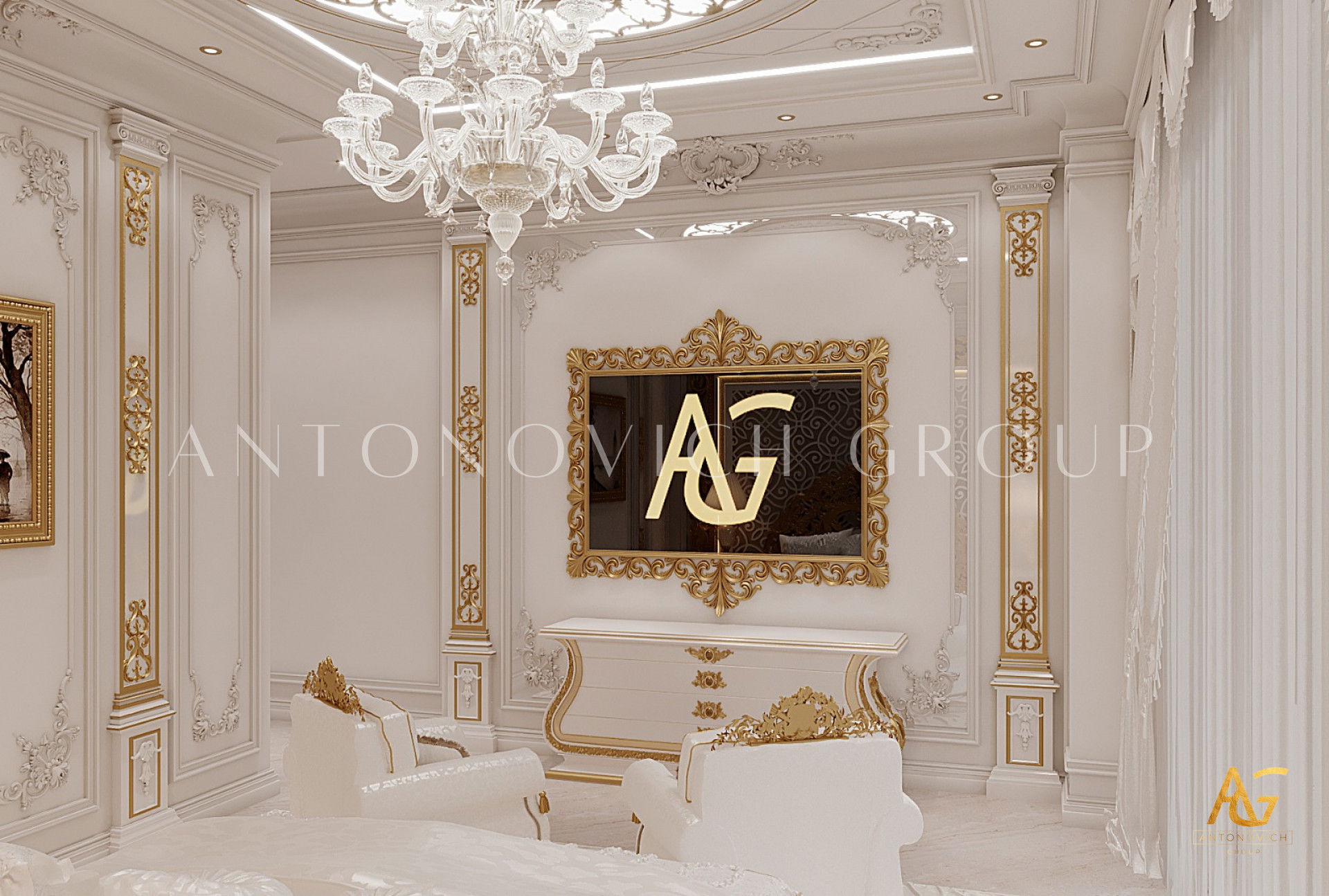 ИЗЫСКАННЫЙ БЕЛЫЙ И ЗОЛОТОЙ ИНТЕРЬЕР