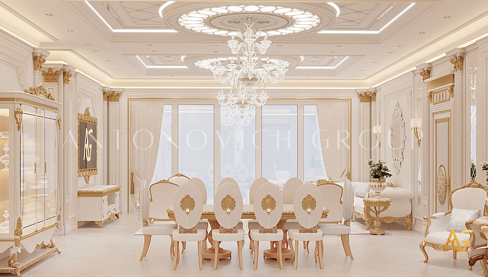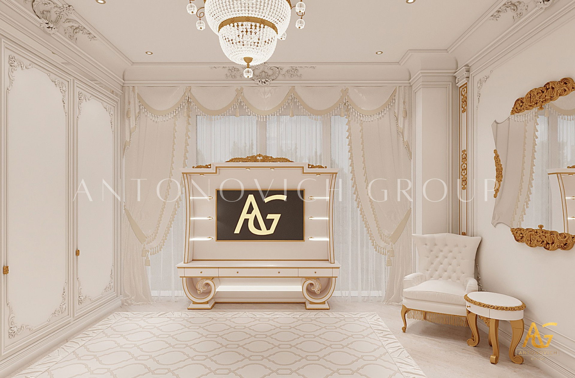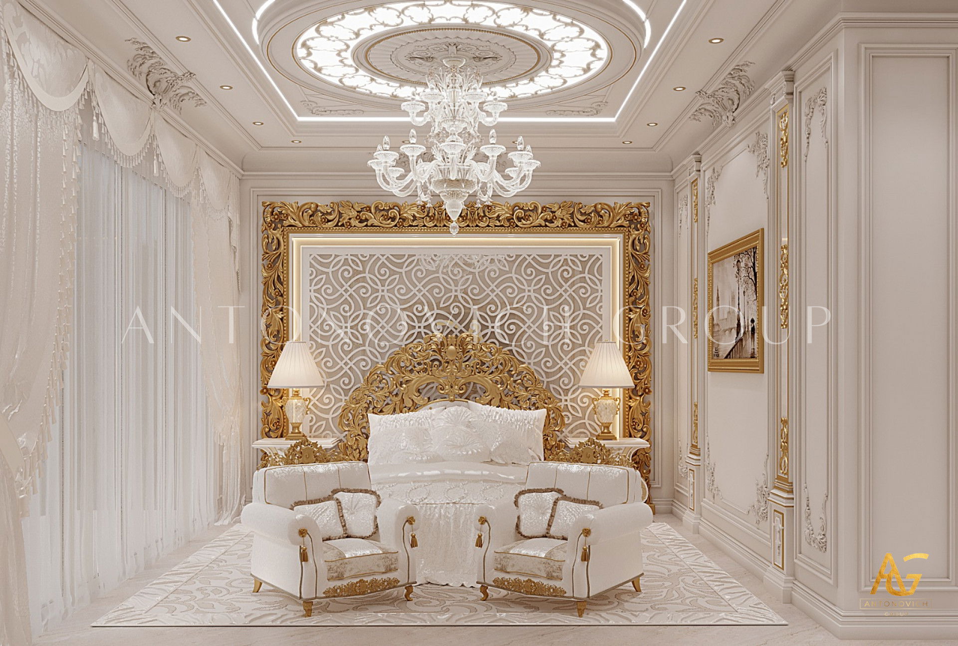 ИЗЫСКАННЫЙ БЕЛЫЙ И ЗОЛОТОЙ ИНТЕРЬЕР