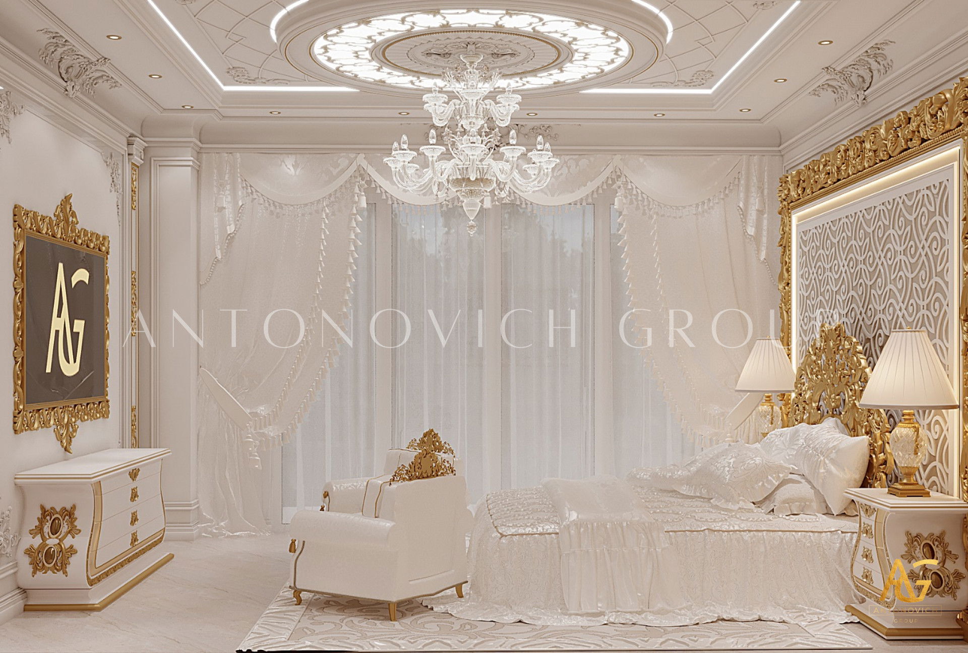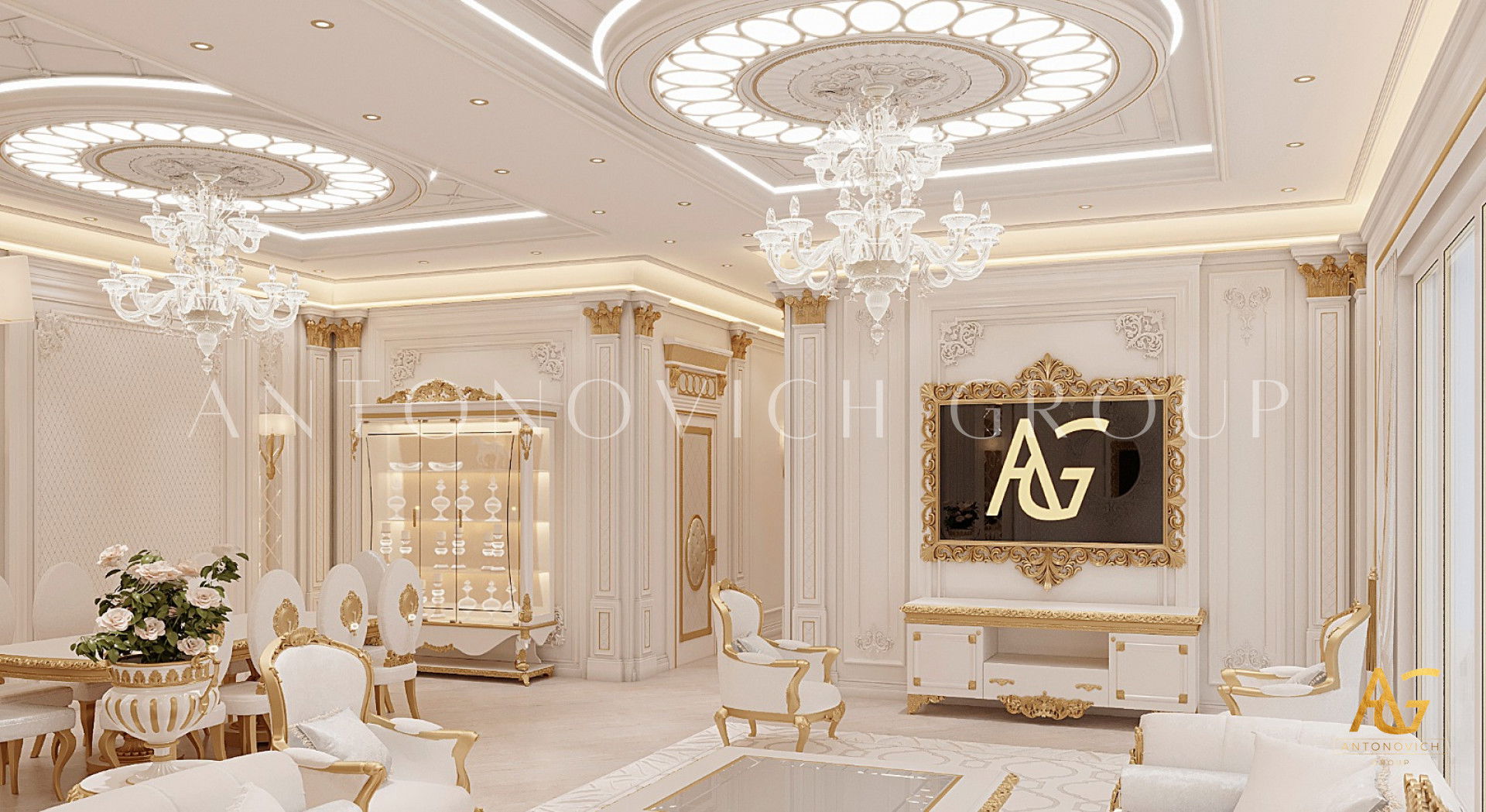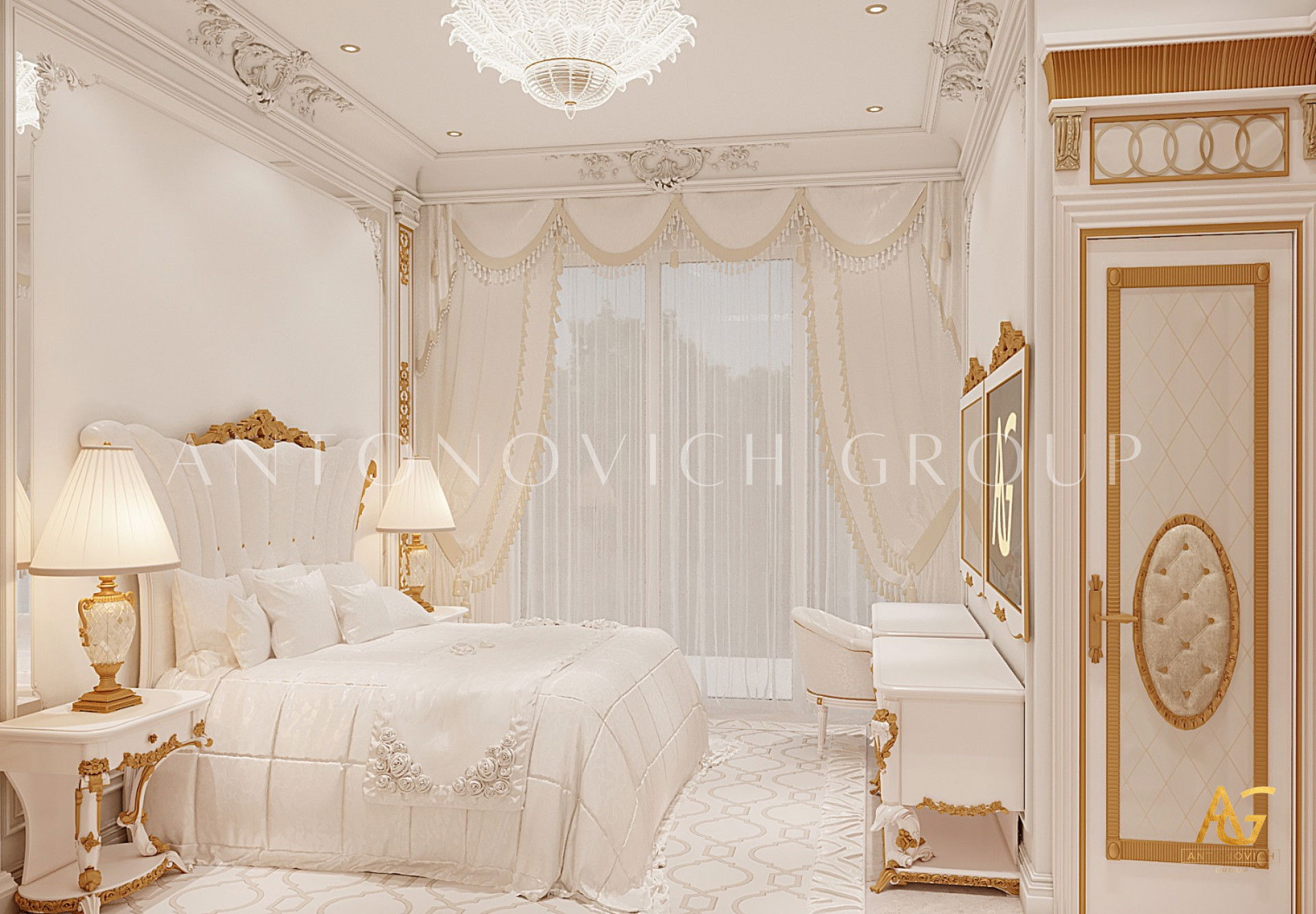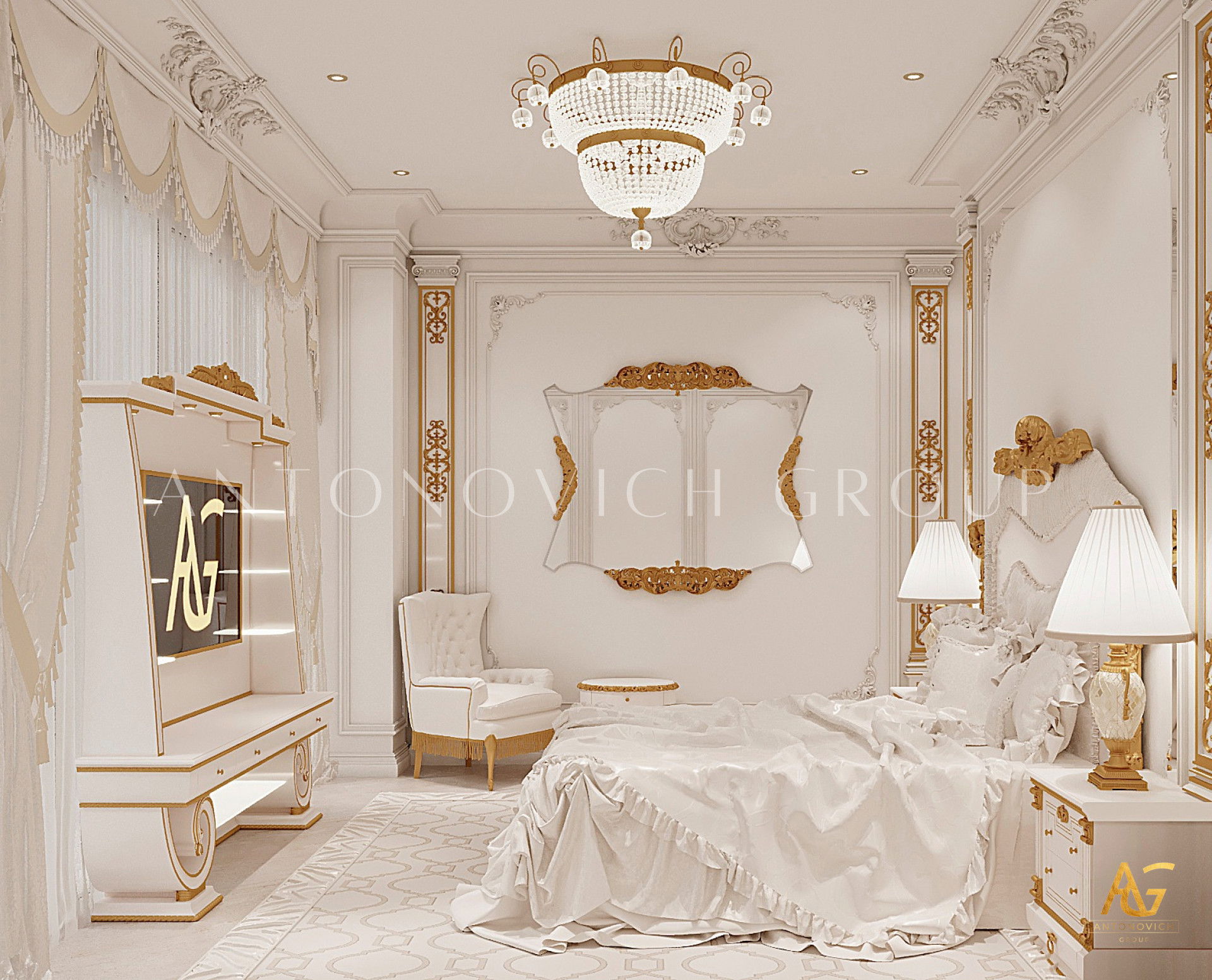 ИЗЫСКАННЫЙ БЕЛЫЙ И ЗОЛОТОЙ ИНТЕРЬЕР