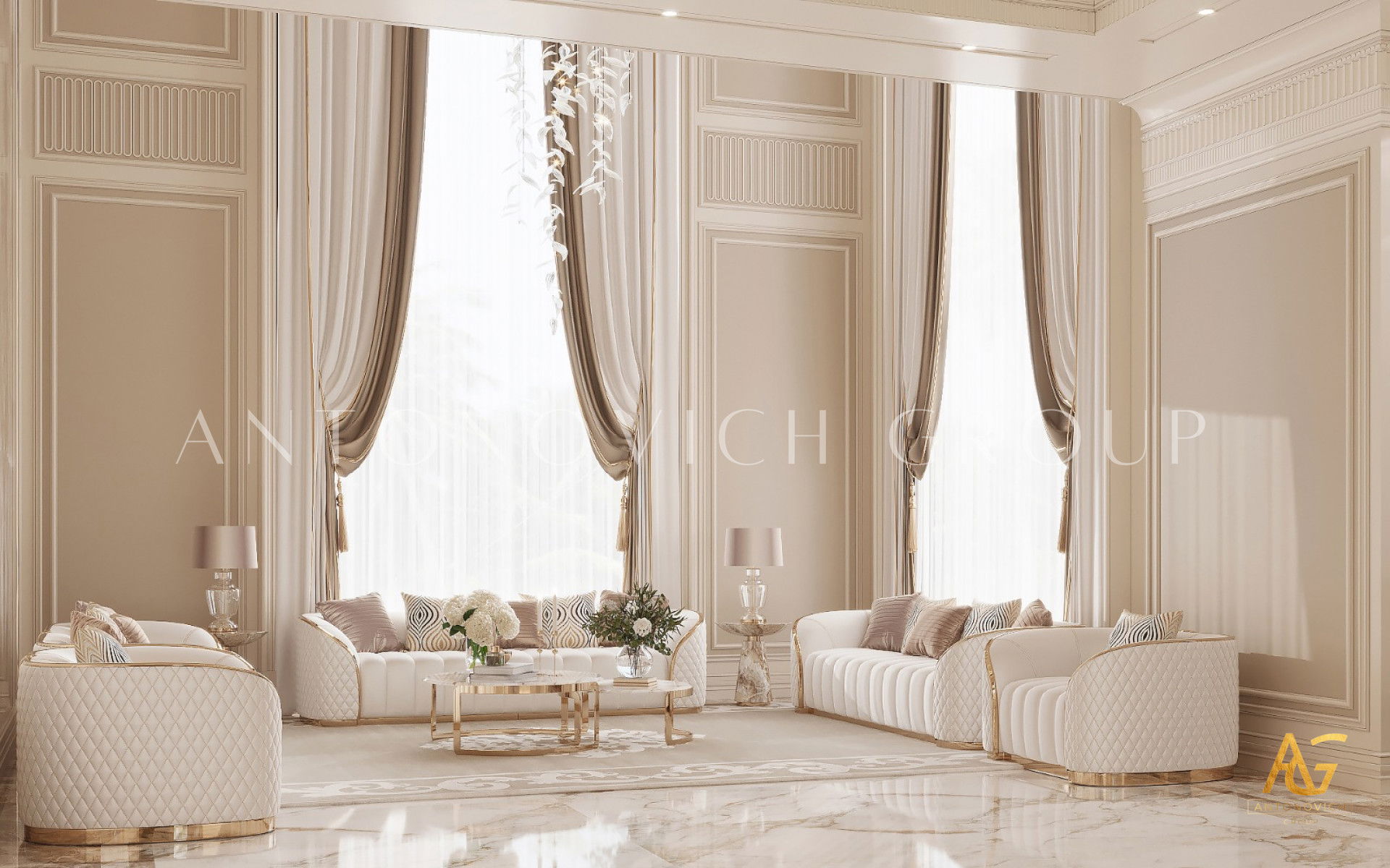 Премиальный дизайн маджлис в Дохе впечатляет великолепием стиля, роскошью и монументальностью декоративных элементов. Дизайн интерьера маджлис в Дохе — это воплощение мечты в реальность. В проект входят эксклюзивная мебель для маджлис, отделка стен маджлис в Дохе и полированная мраморная плитка в Дохе — натуральные материалы для интерьера делают каждую комнату по‑настоящему уникальной. Мраморный пол для маджлис и светлые, изящные формы создают ощущение лёгкости и простора. Шторы для маджлис в Дохе добавляют комнате тепло и движение. Дизайн современной виллы в Дохе преобразуется благодаря таким решениям. Интерьер под ключ в Дохе от дизайнерской компании из Дубая ориентирован на эксклюзивность и оригинальность. Премиальная компания Антонович Дизайн (Antonovich Design) выполняет строительные и ремонтные работы на высшем уровне, и вы получите только положительные эмоции от результата.