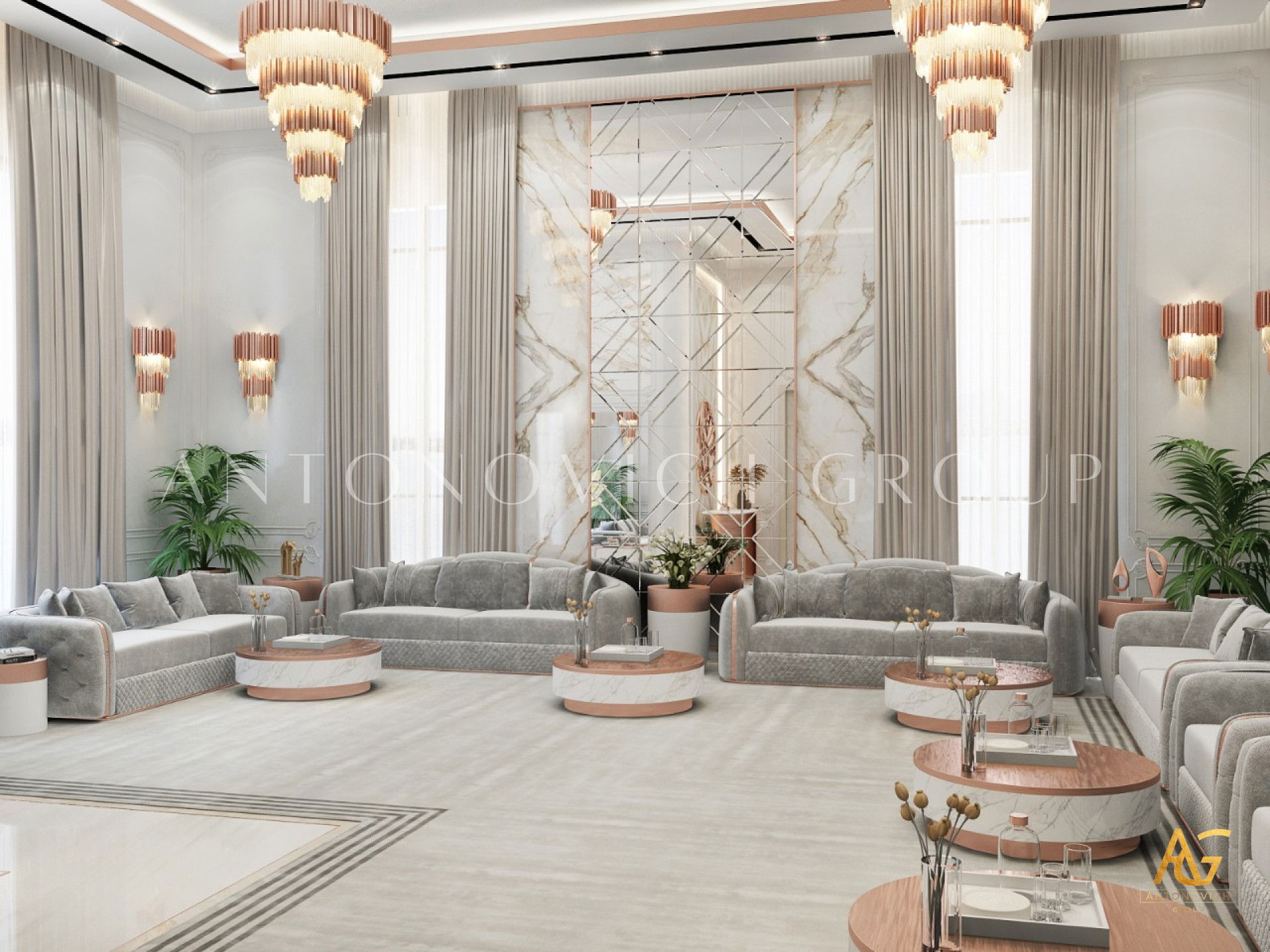 Команда «Антонович Дизайн» выбирает престижные дизайнерские решения и уделяет особое внимание освещению и дизайн люстр маджлис, обеспечивая изящную подсветку и гармоничный баланс яркости. Впечатляющий потолочный дизайн и гипсокартон маджлис, согласованный с обработкой стен и декоративным водоструйным узором, создаёт целостный роскошный образ. Этот проект маджлис был реализован командой специалистов и отличается уютной, расслабляющей атмосферой. Дизайнеры тщательно отбирают текстуры и оттенки в маджлис, сочетая их с мебельью и отделкой маджлис премиум. Интерьер получился просторным и располагающим к отдыху: каждая мебельная единица изготовлена из материалов высочайшего качества с идеальной отделкой. Полный набор декора и аксессуаров дополняет композицию, создавая приятную и гармоничную атмосферу.
