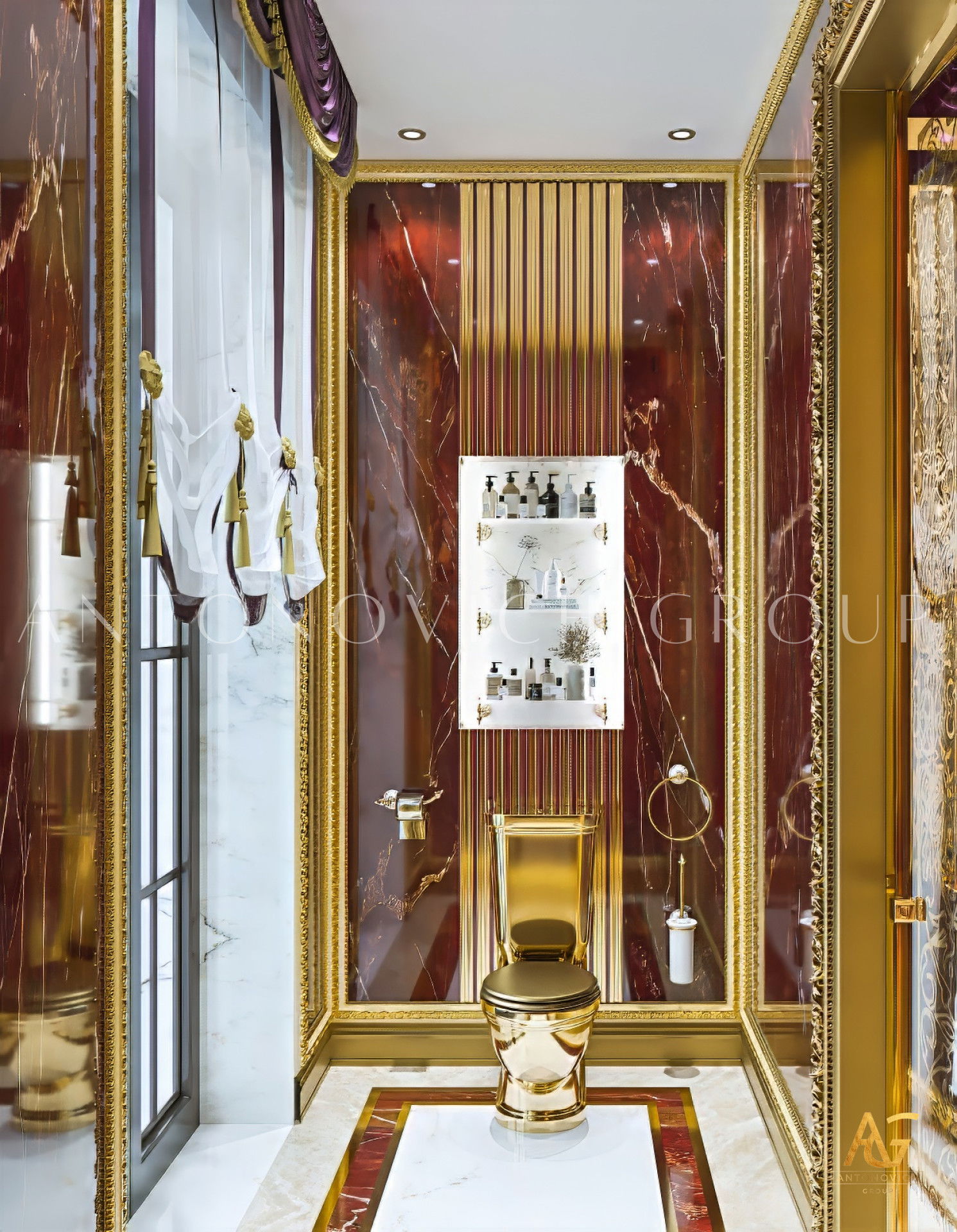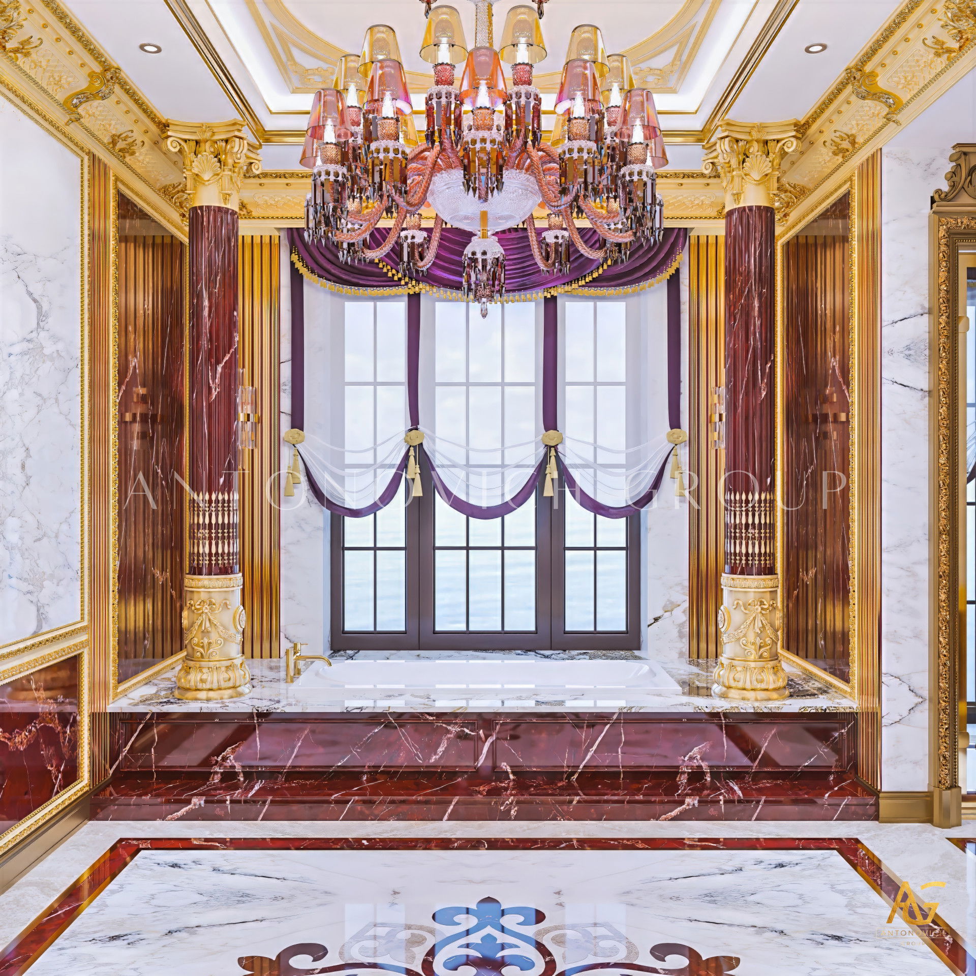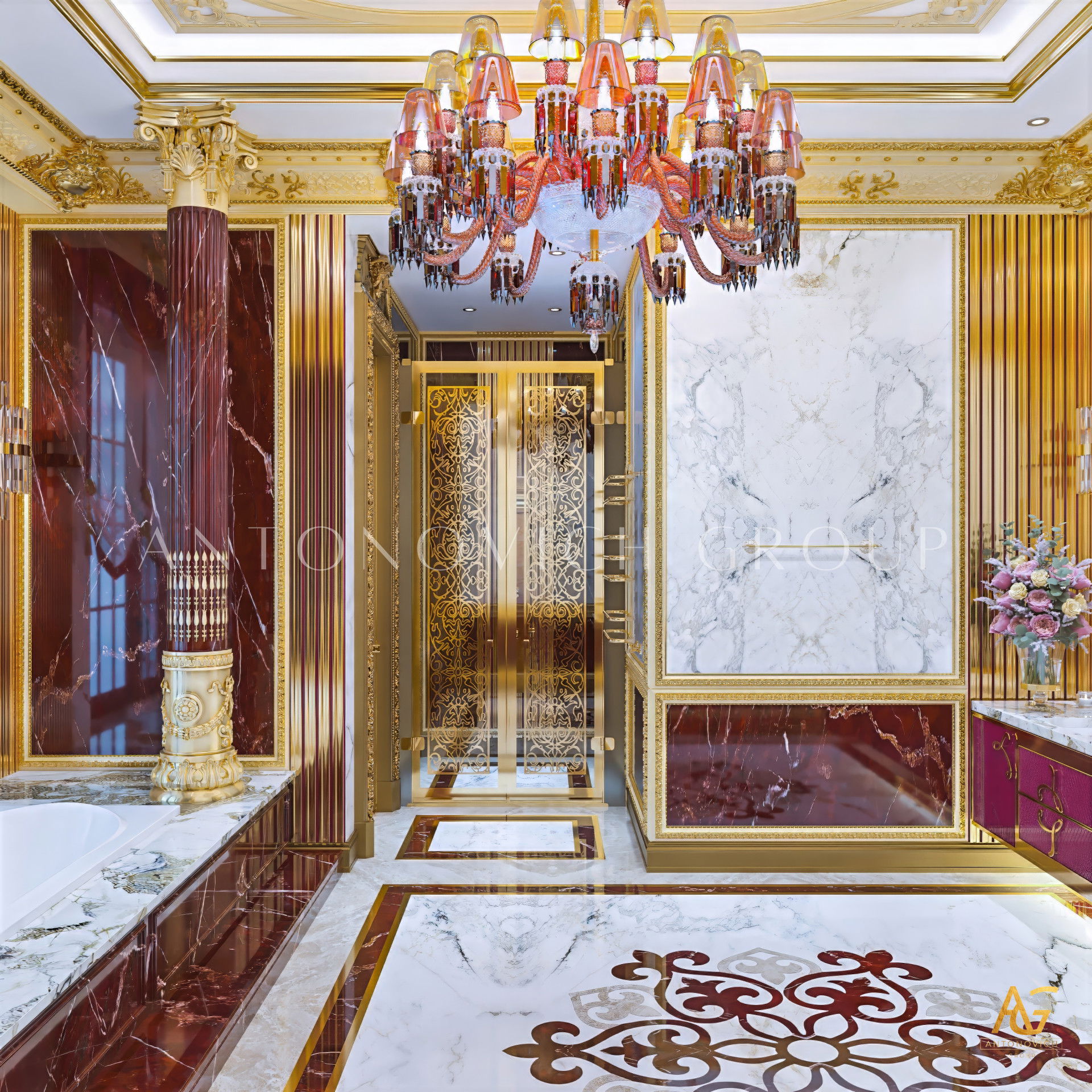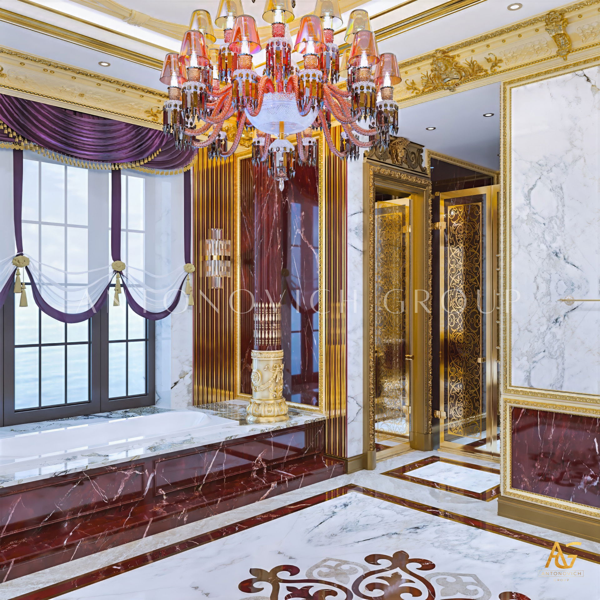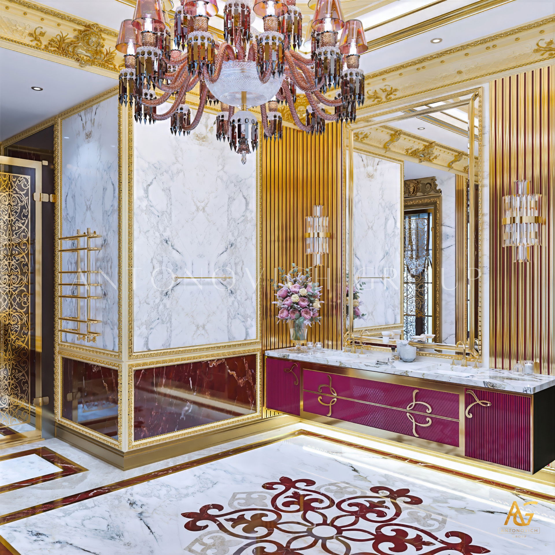 Антонович Дизайн (Antonovich Design) создаёт дизайн главной ванной комнаты, где элегантность сочетается с практичностью и комфортом для владельцев.