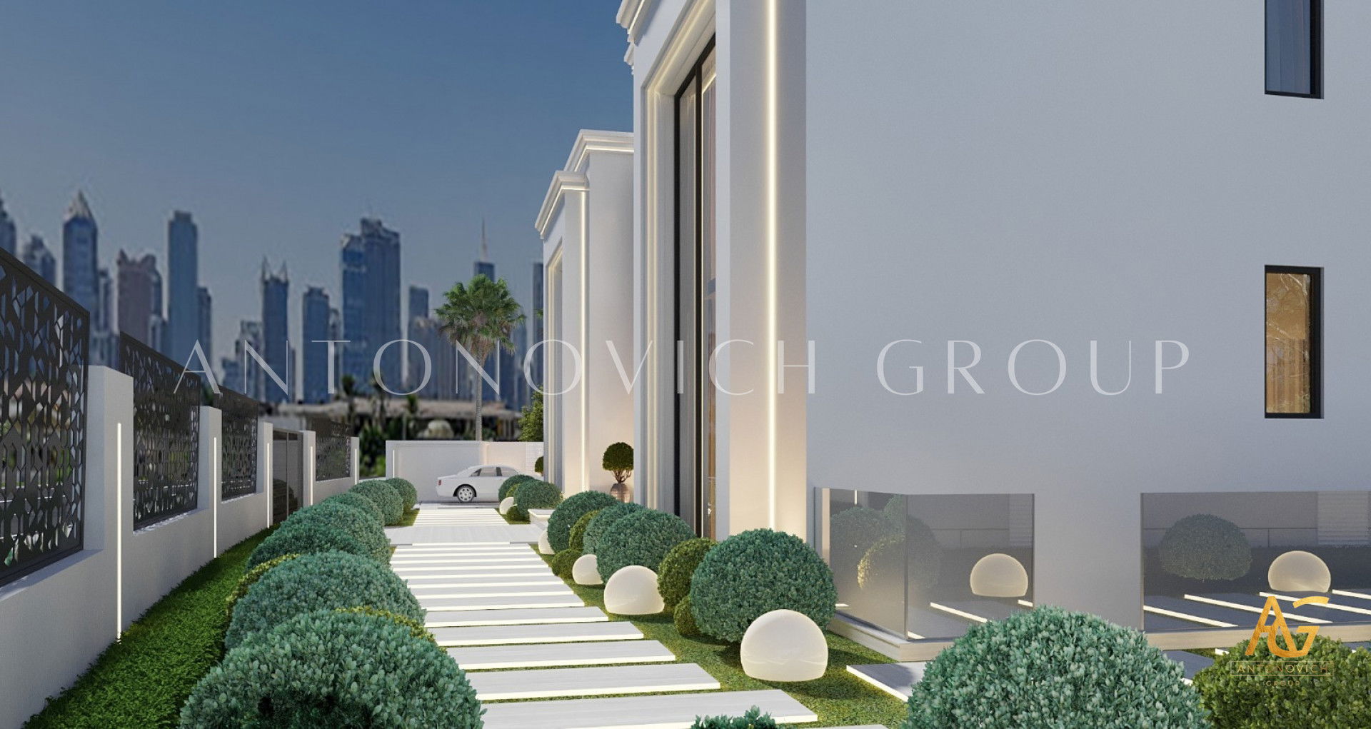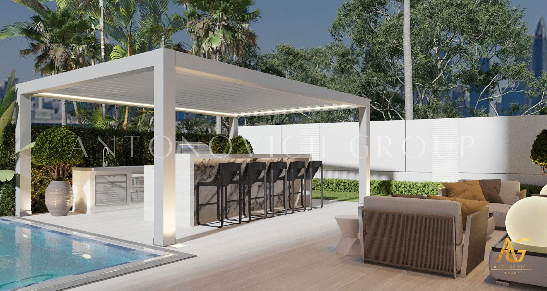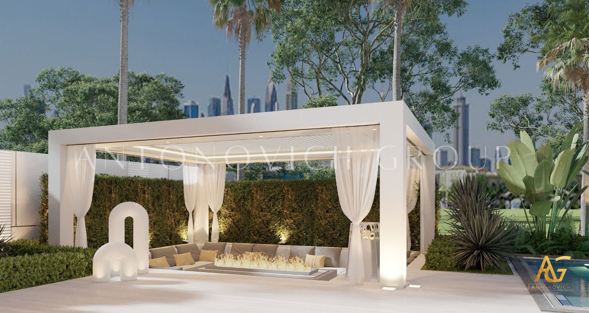 Антонович Групп предлагает полный спектр услуг — от водных решений до озеленения: водные решения для сада виллы, оформление террас и пергол, подбор зелёных насаждений для виллы. Это обеспечивает роскошный дизайн экстерьера виллы и выполнение задач в срок: ландшафтные работы под ключ в Дубае.