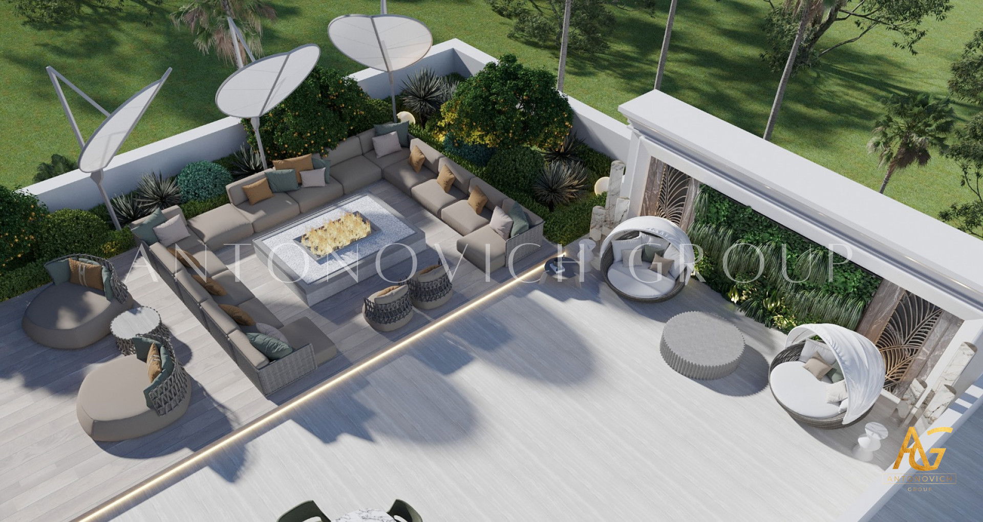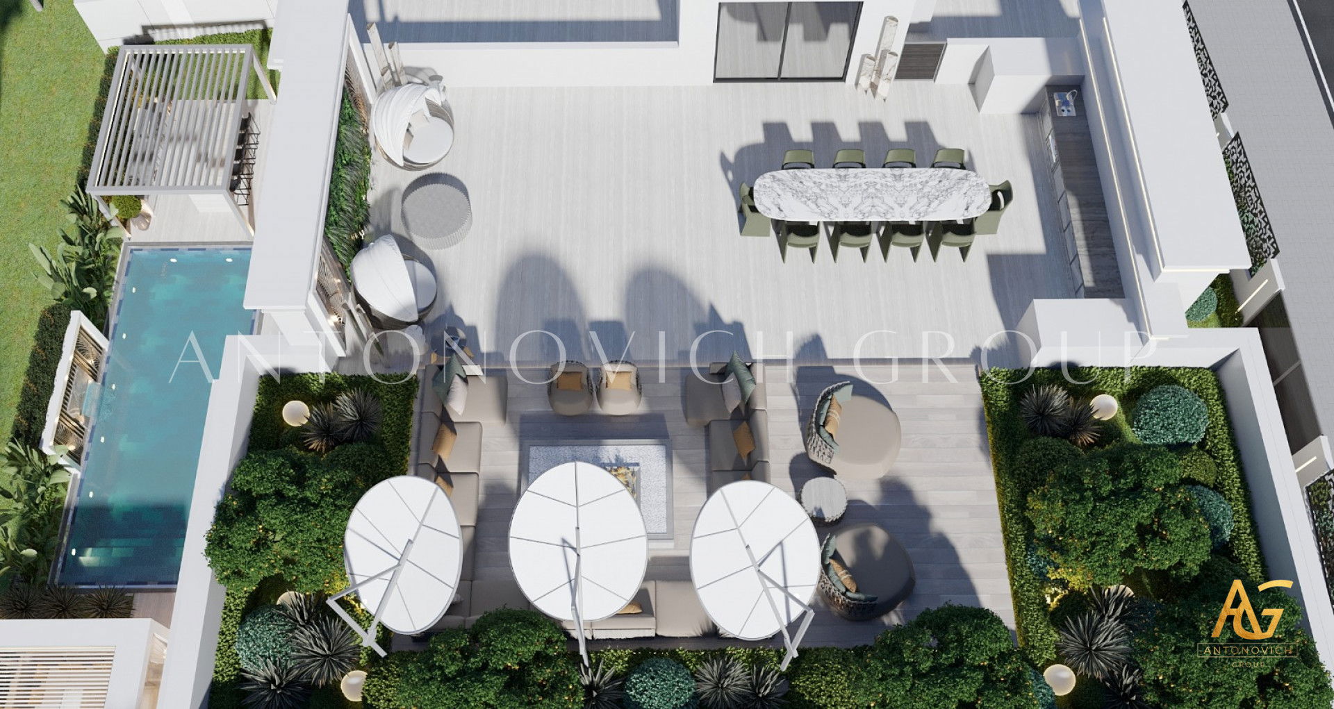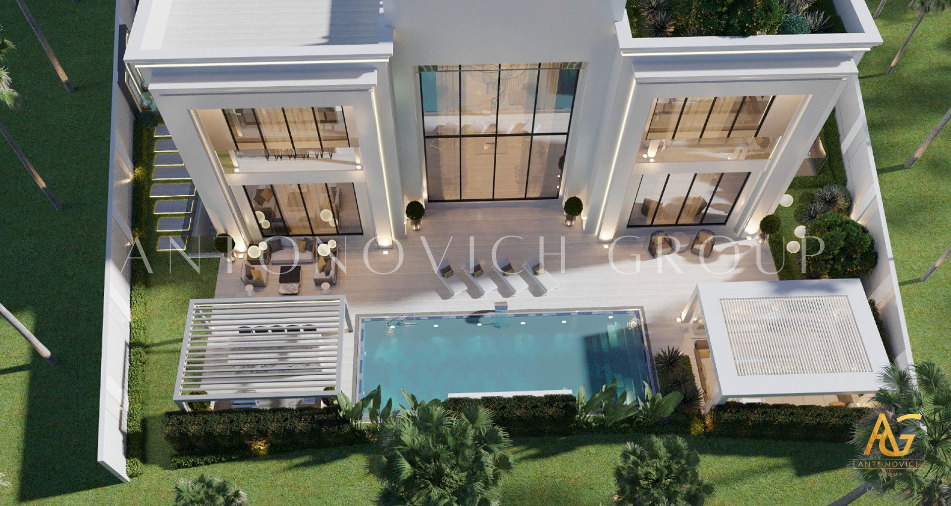 Антонович Групп предлагает полный спектр услуг — от водных решений до озеленения: водные решения для сада виллы, оформление террас и пергол, подбор зелёных насаждений для виллы. Это обеспечивает роскошный дизайн экстерьера виллы и выполнение задач в срок: ландшафтные работы под ключ в Дубае.
