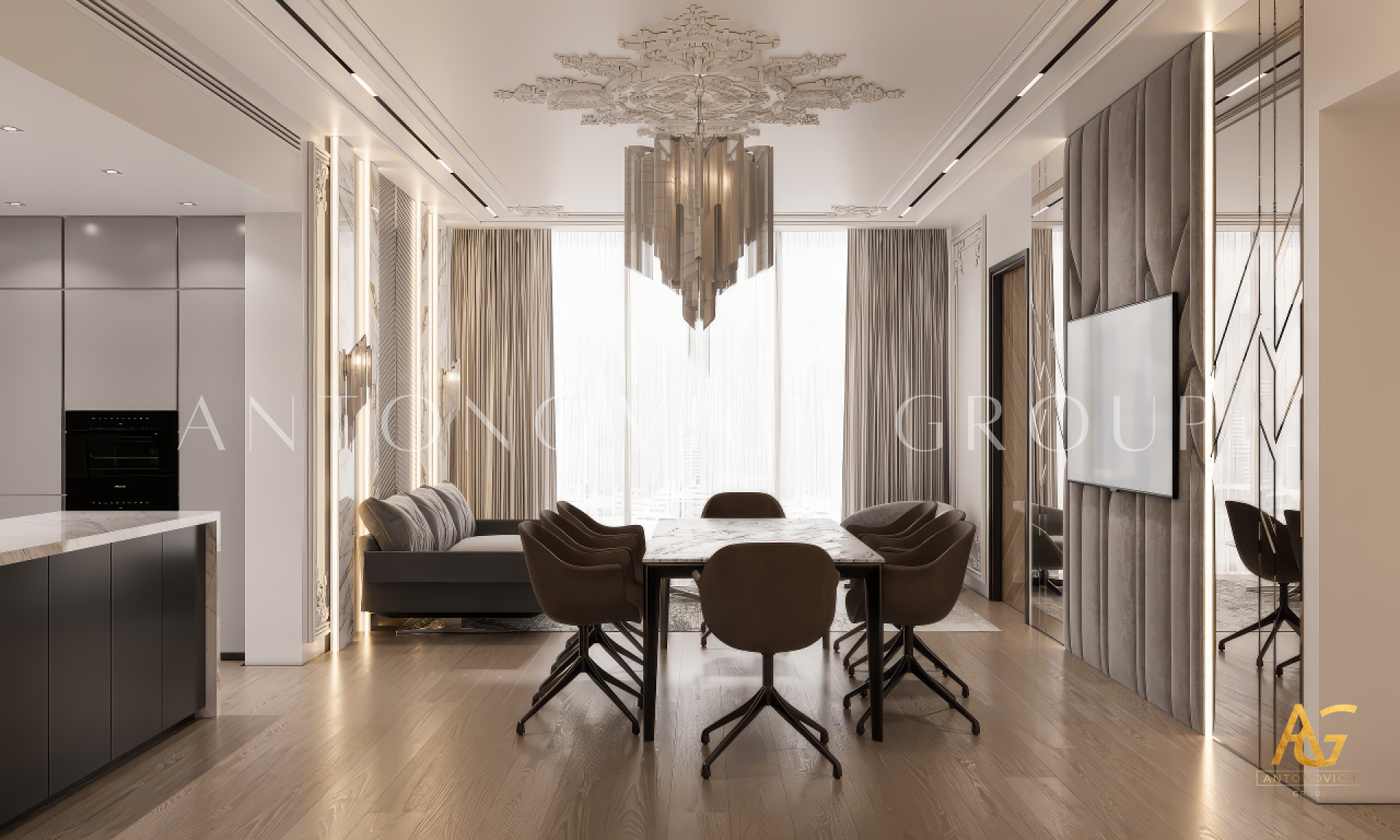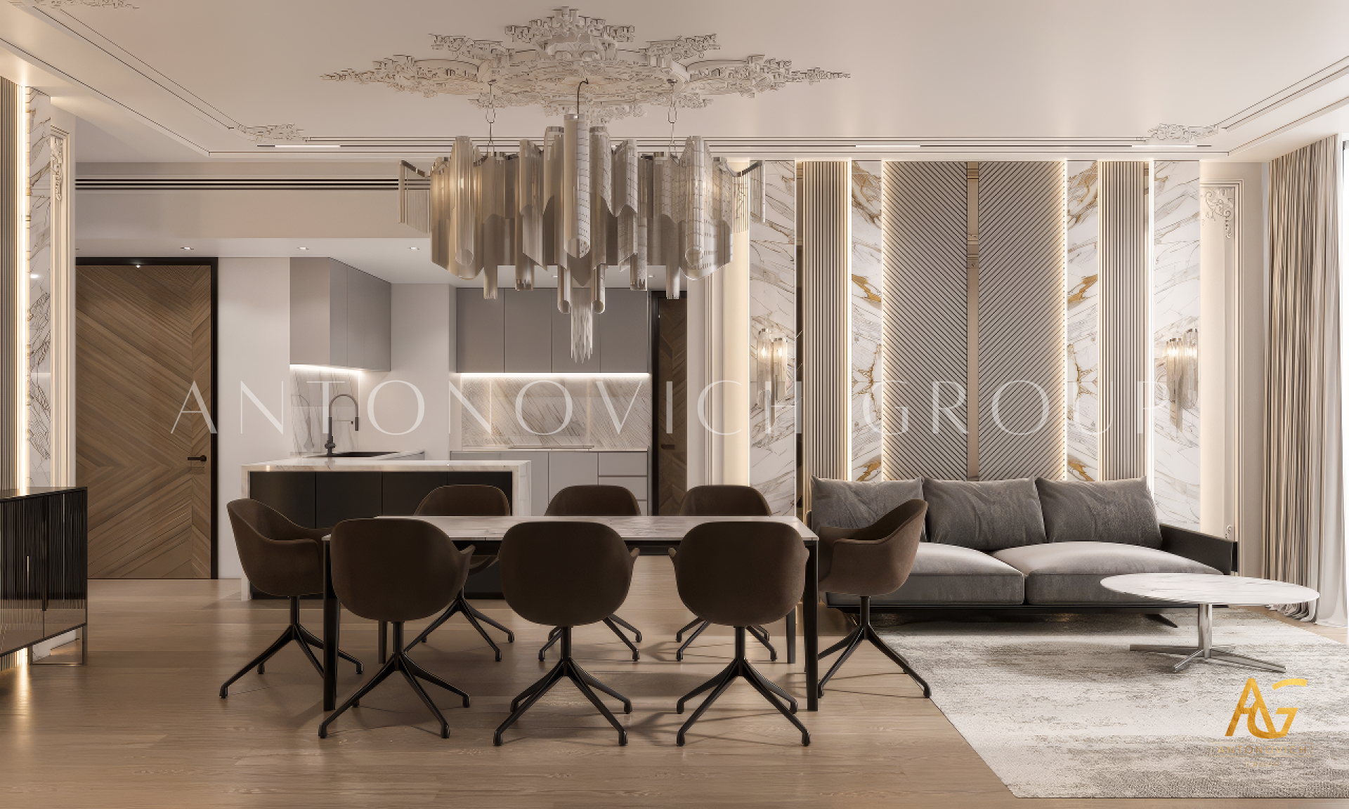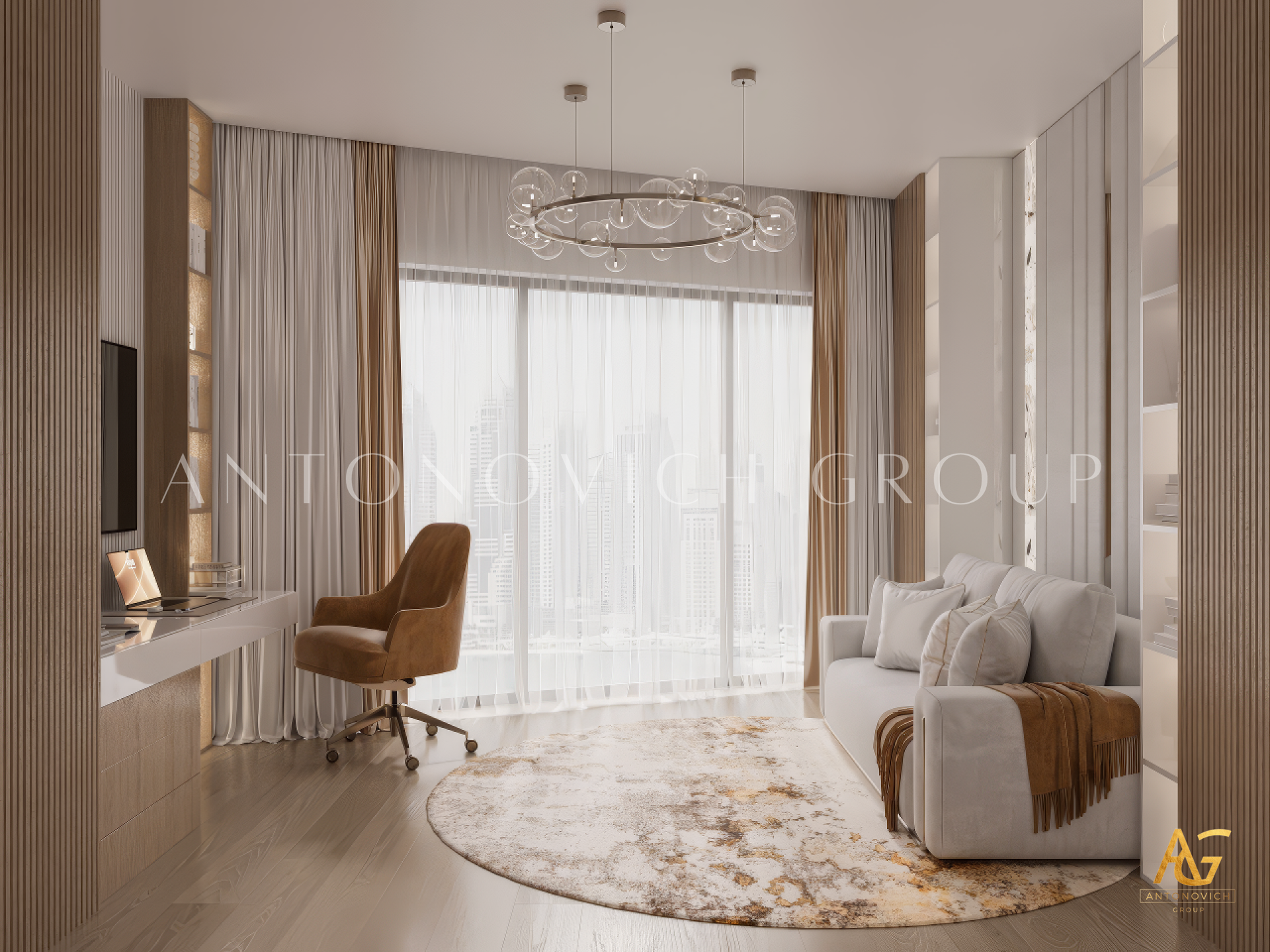 Как одна из наиболее уважаемых компаний по отделке, Антонович Дизайн осуществляла выполнение всех работ по отделке квартиры под ключ в Дубае. Каждая деталь выполнена с мастерством и вниманием к качеству, что обеспечивает превосходный результат и превышение ожиданий клиентов.