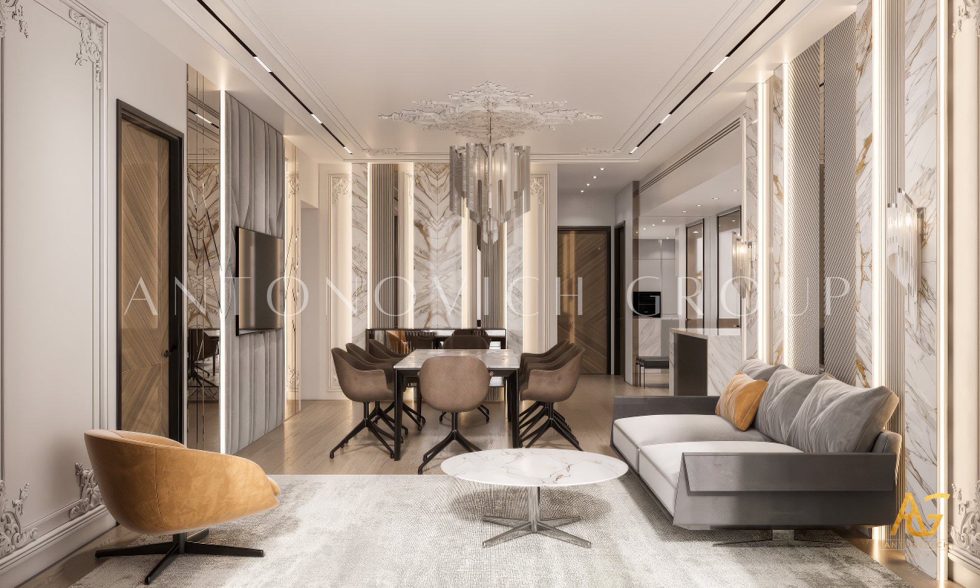- Разработка полной концепции современного интерьера и дизайн квартиры в Дубае