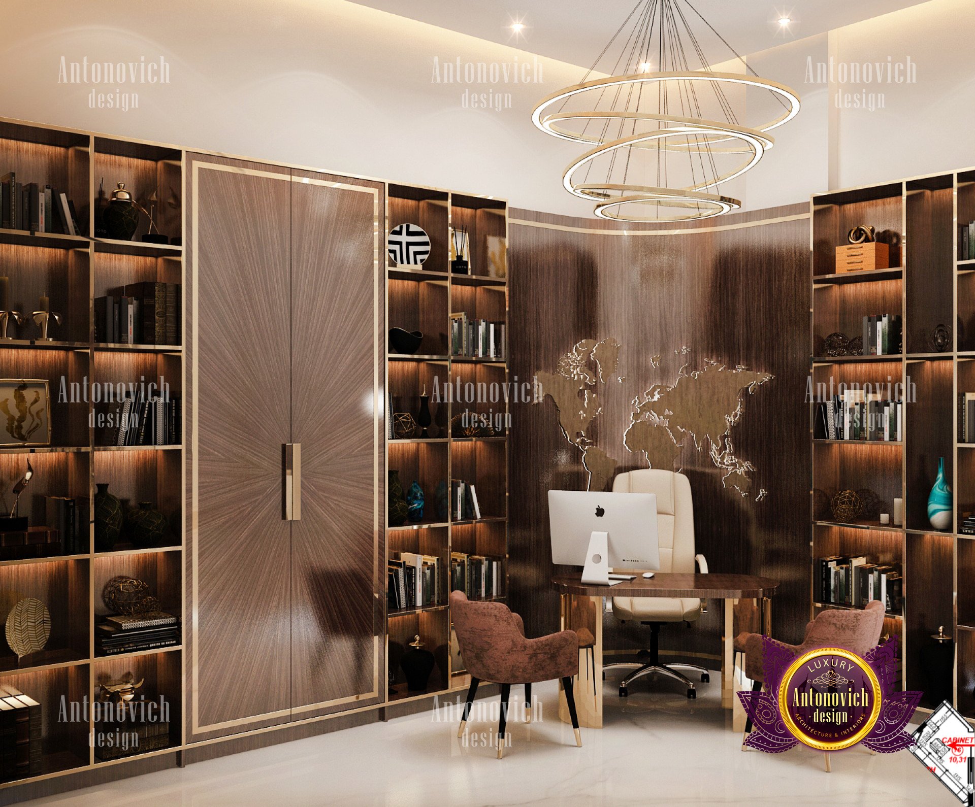 Ищете эффектный и роскошный интерьер домашнего офиса, который не скучен и не мешает работе? Этот новый проект люксового Антонович Дизайн (Antonovich Design) отвечает всем вашим требованиям. Выполненный в коричневой гамме с изысканным освещением, он сделает ваш рабочий процесс дома более продуктивным: в интерьере собраны все элементы для эффективной и уверенной работы.