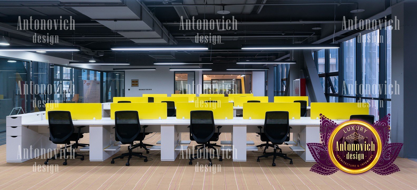 Холодный строгий интерьер производит тоскливое впечатление не только на сотрудников, но и на клиентов. Гораздо эффективнее работает уютное, стильно оформленное пространство. Сегодня дизайн офиса от Антонович Дизайн (Antonovich Design) — это сочетание стильной практичной мебели, продуманного декора и отделки и оригинальных элементов, которые делают компанию узнаваемой в любой ситуации. Дизайн современного офиса, выполненный нашими профессионалами, предполагает использование современных способов организации пространства, лучших отделочных материалов и взвешенный подход к декору. Форма open space по‑прежнему востребована в офисных интерьерах, что предполагает размещение нескольких рабочих зон в одном большом помещении.