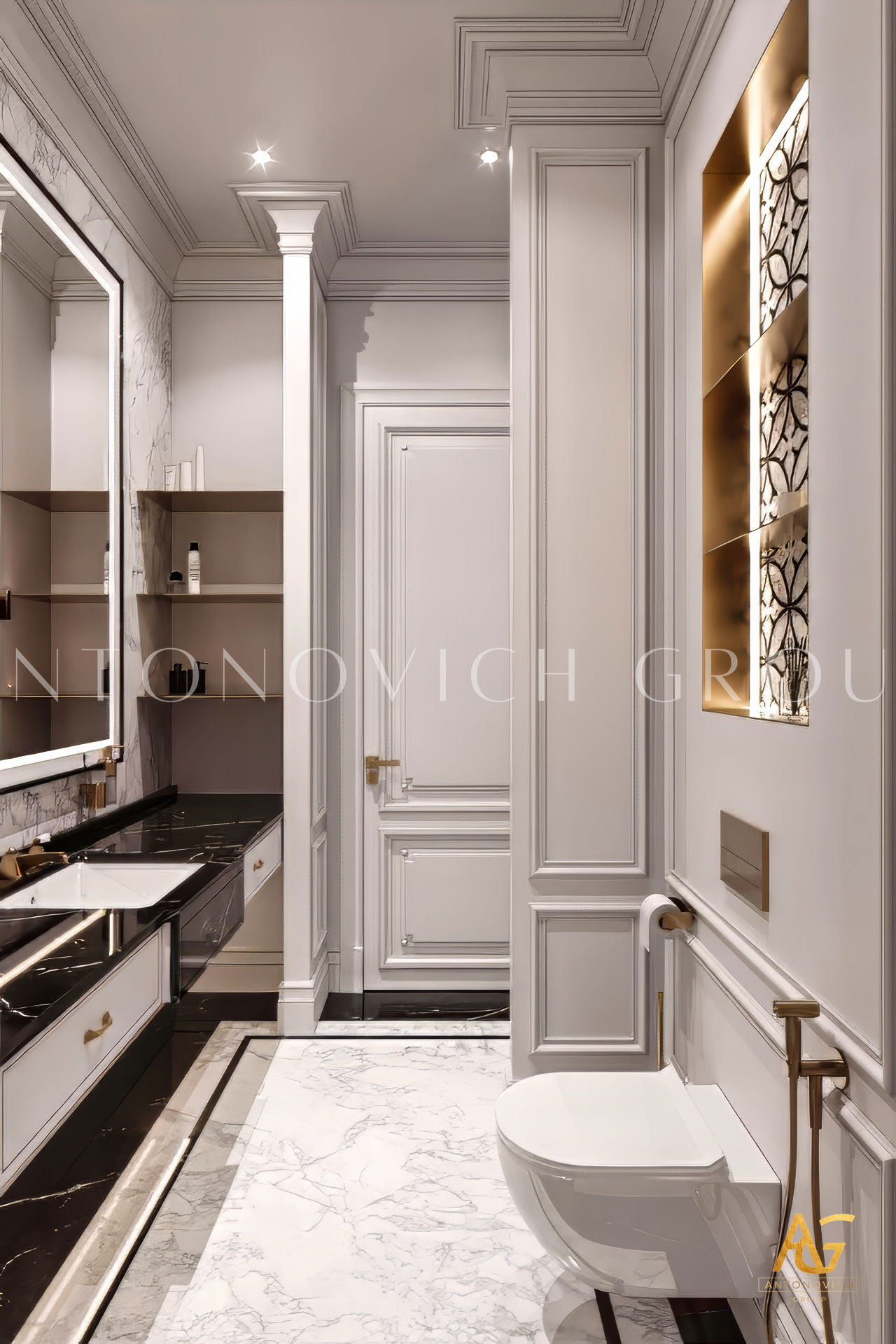 Современно‑минималистичный дизайн ванной комнаты от Антонович Дизайн демонстрирует силу простоты и изящества. Принцип «меньше значит больше» позволяет создавать интерьеры, которые не подвержены сиюминутным тенденциям и остаются актуальными долгое время. Баланс нейтральной палитры, чистых линий, открытого пространства и продуманной функциональности формирует не только визуально привлекательное, но и удобное пространство.