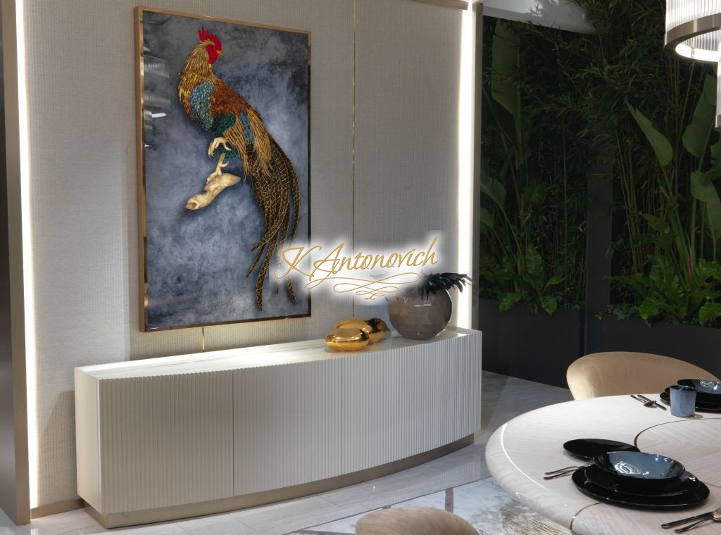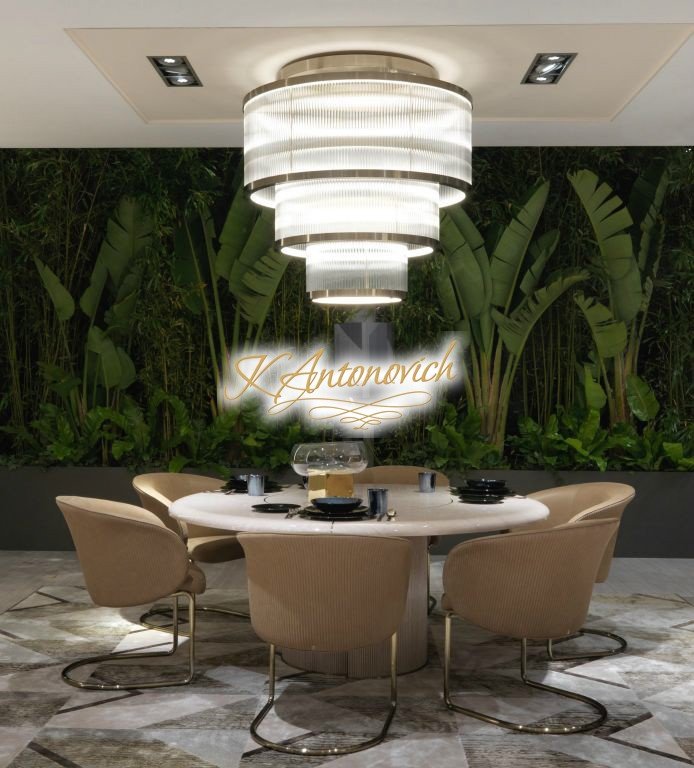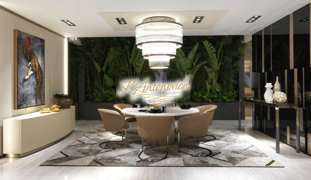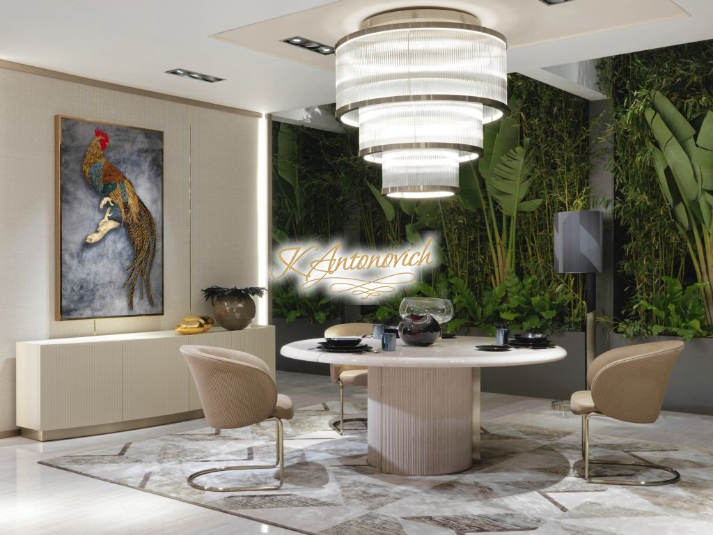 Антонович Дизайн (Antonovich Design) представляет проект столовой Opera — образец элегантности и продуманной функциональности. В этом проекте дизайн столовой сочетается с классическими мотивами и современными решениями, создавая интерьер столовой класса люкс, который отвечает высоким стандартам эстетики и комфорта.